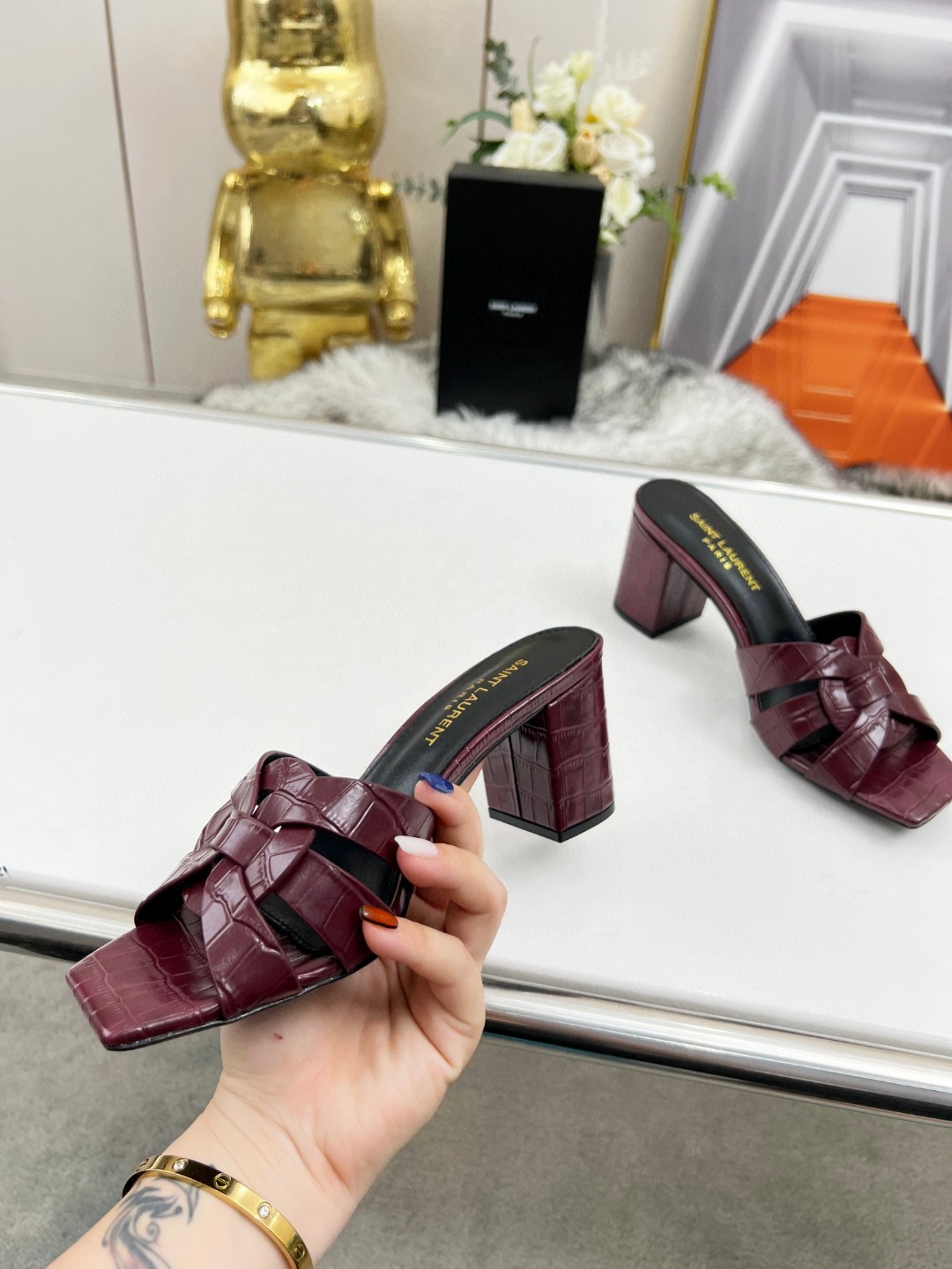 這款鞋子是AAAAA 1:1 質量(非常棒). 使用了和原版一模一樣的材料. 商標部分也保持了和聖羅蘭/Saint Laurent一樣. 圖片拍攝是實物鞋子拍攝, 您所收到的實物保證和我們圖片一模一樣.