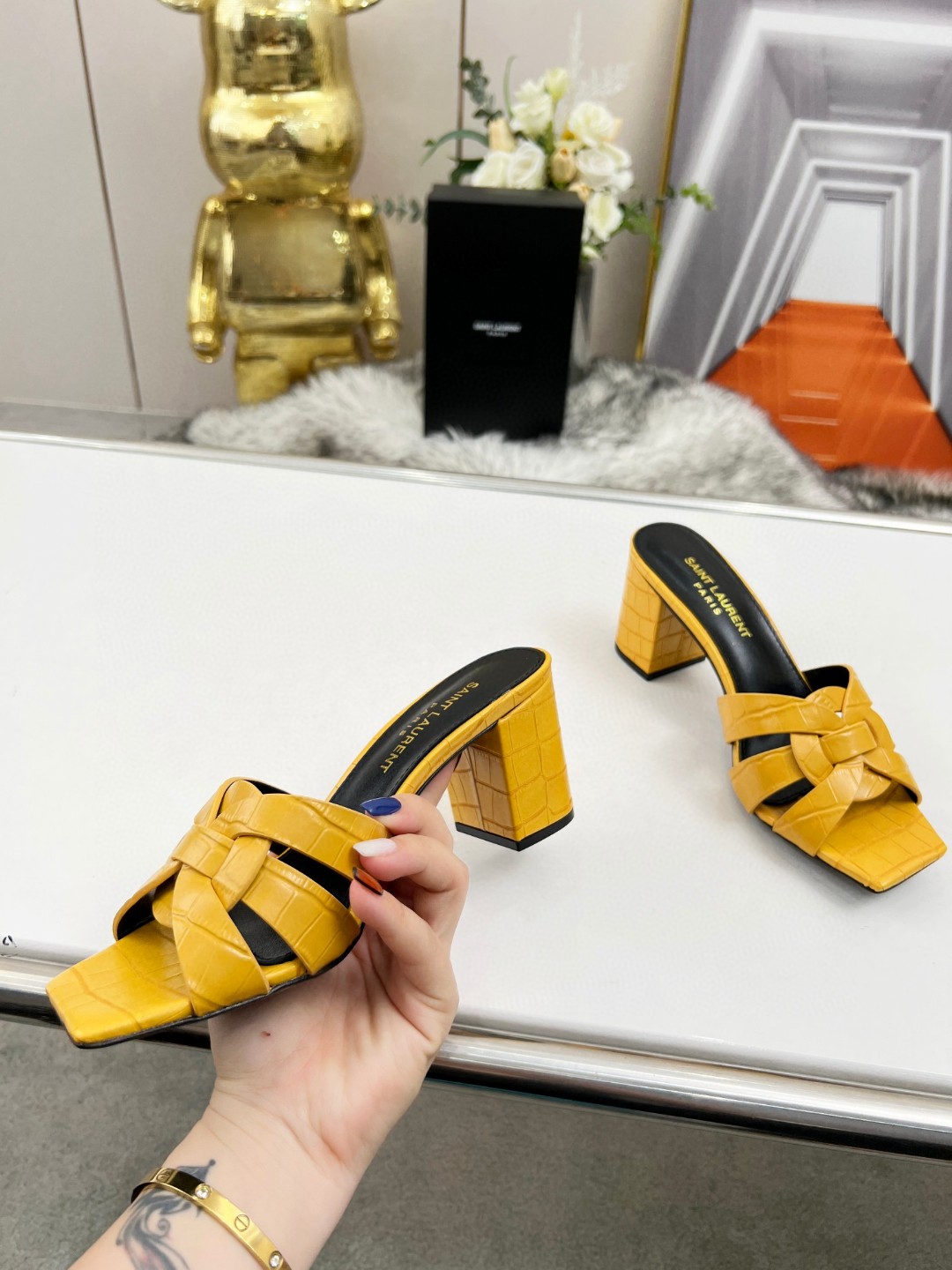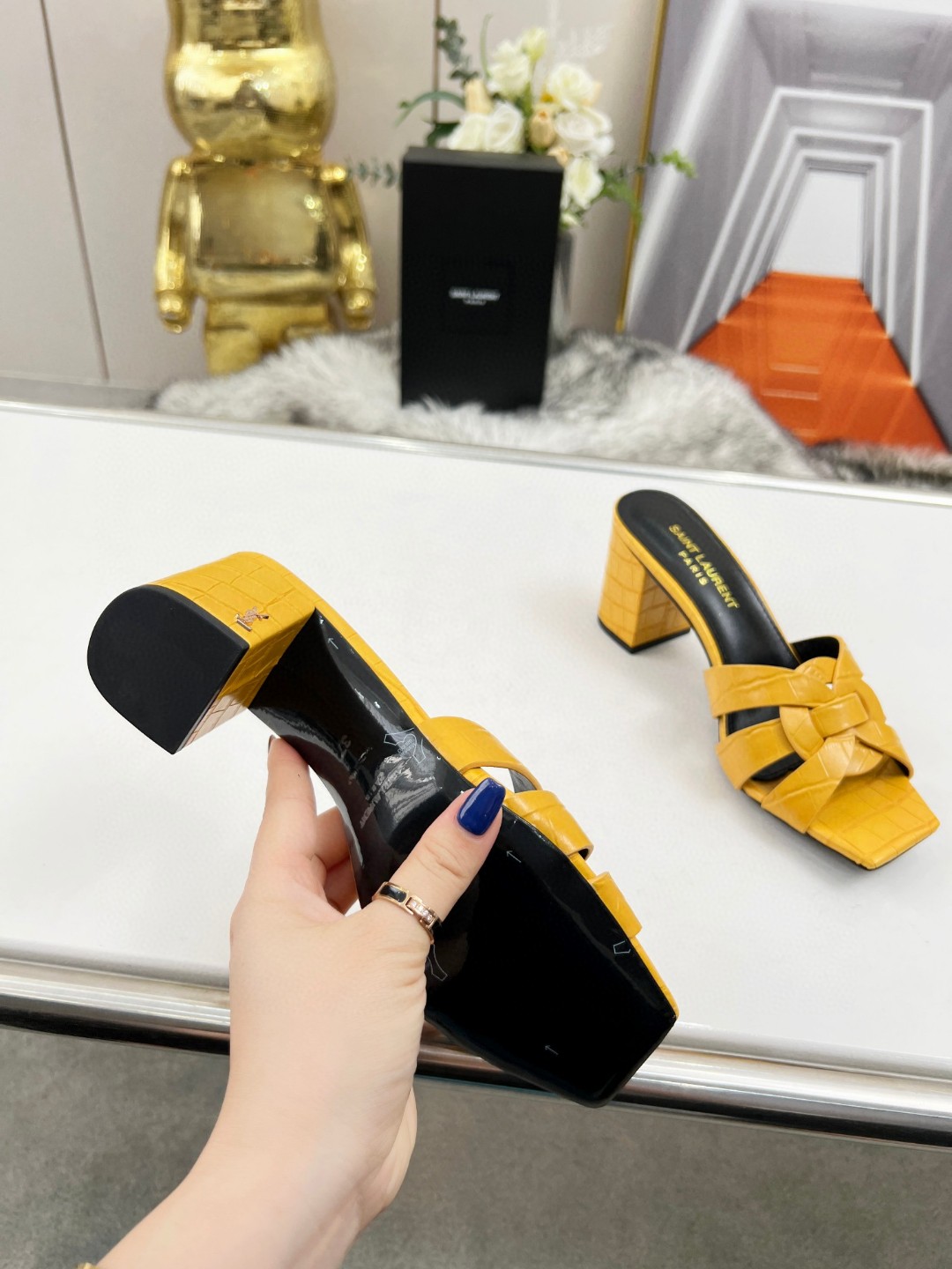 這款鞋子是AAAAA 1:1 質量(非常棒). 使用了和原版一模一樣的材料. 商標部分也保持了和聖羅蘭/Saint Laurent一樣. 圖片拍攝是實物鞋子拍攝, 您所收到的實物保證和我們圖片一模一樣.