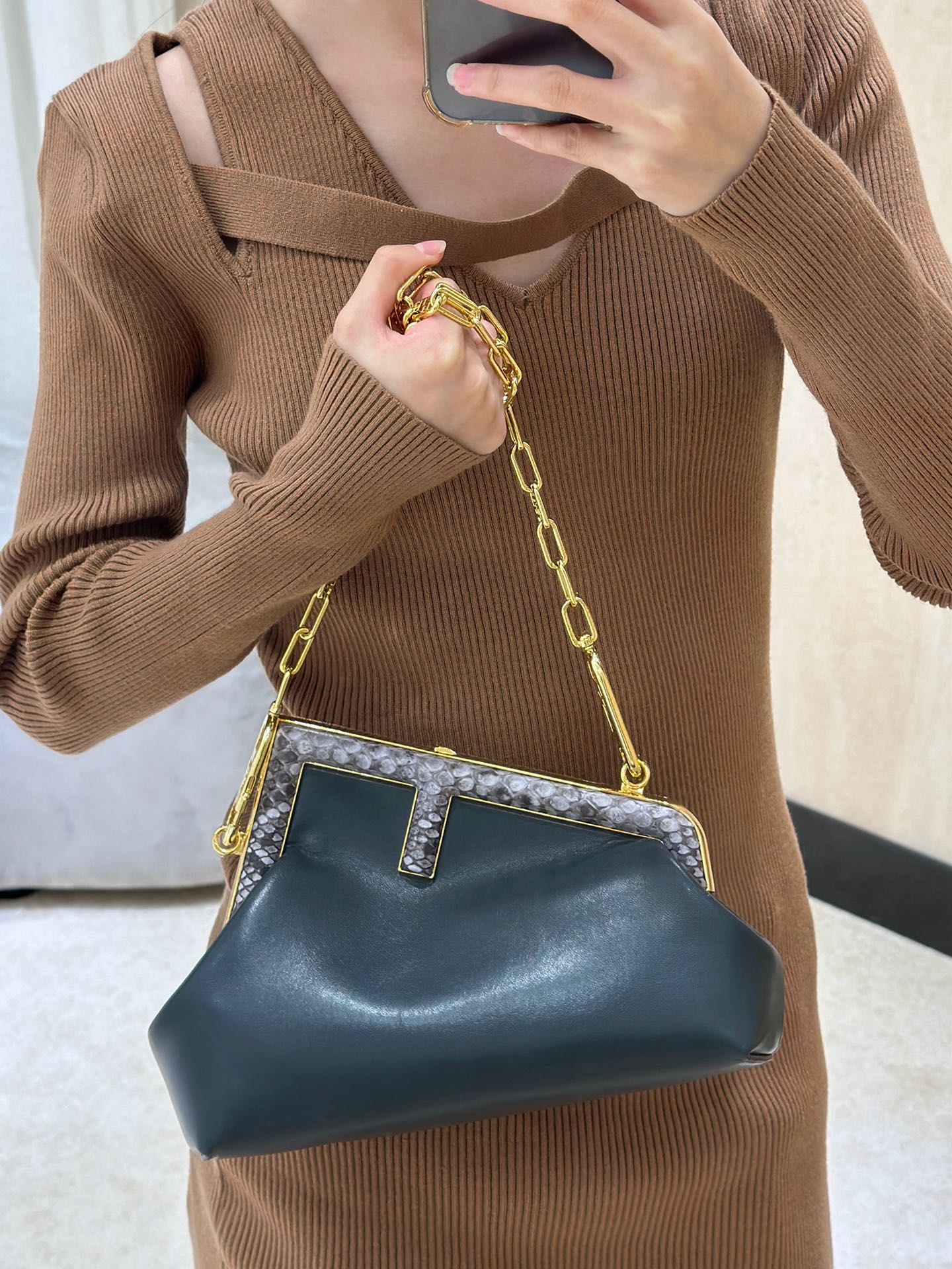 這款包包是AAAAA 1:1 質量(非常棒). 使用了和原版一模一樣的材料. 商標部分也保持了和芬迪/Fendi一樣. 圖片拍攝是實物包包拍攝, 您所收到的實物保證和我們圖片一模一樣.
