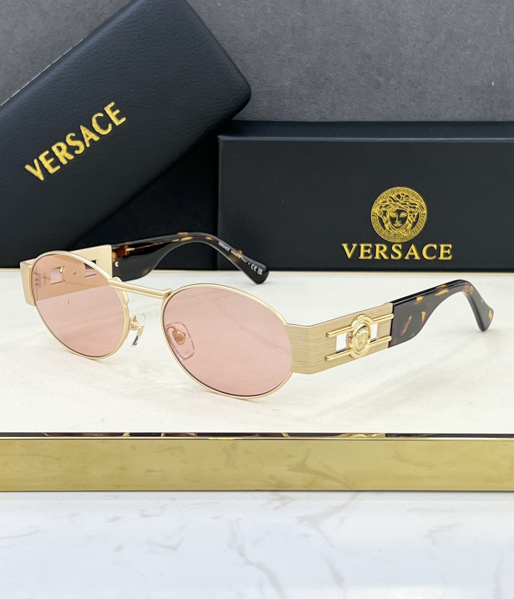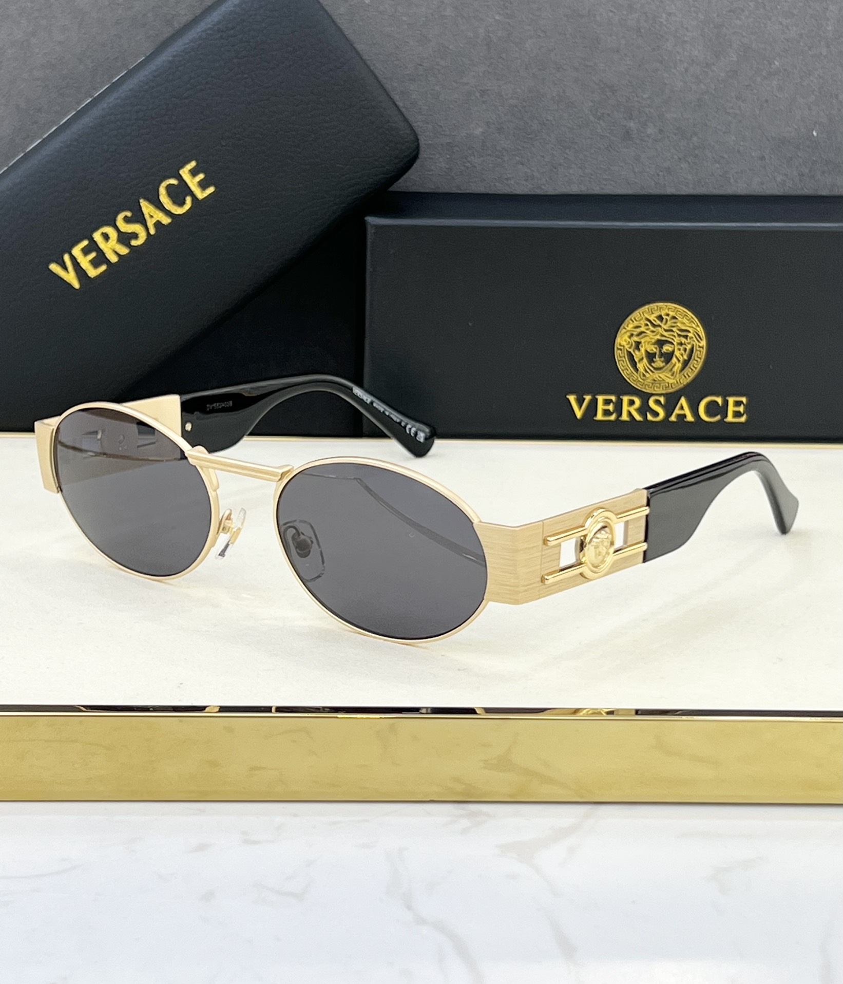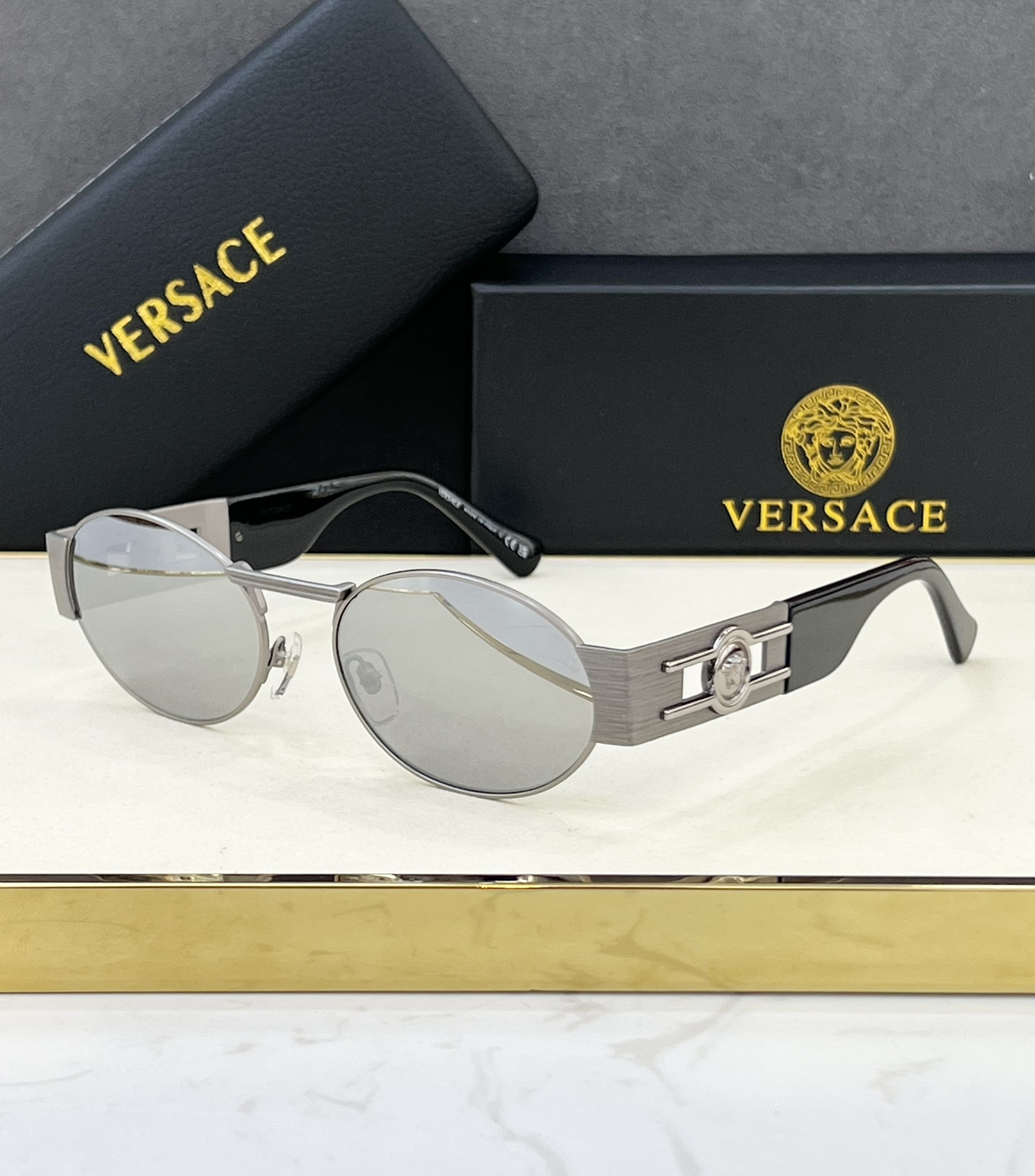 這款太陽眼鏡是AAAAA 1:1 質量(非常棒). 使用了和原版一模一樣的材料. 商標部分也保持了和范思哲/Versace一樣. 圖片拍攝是實物太陽眼鏡拍攝, 您所收到的實物保證和我們圖片一模一樣.
