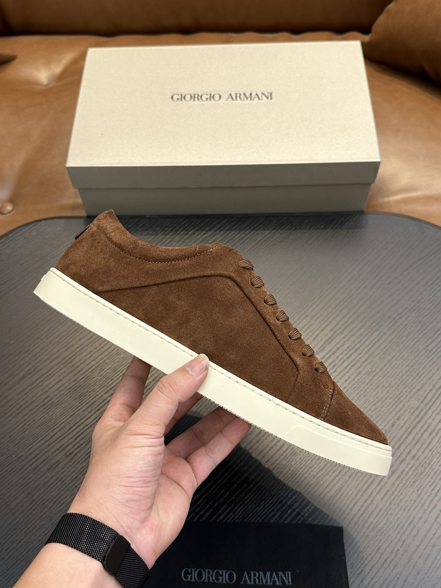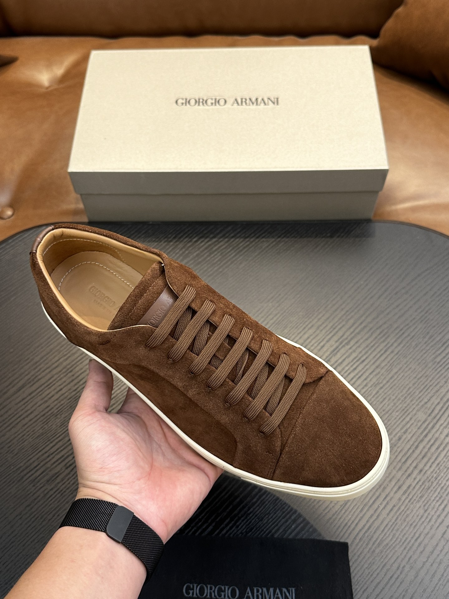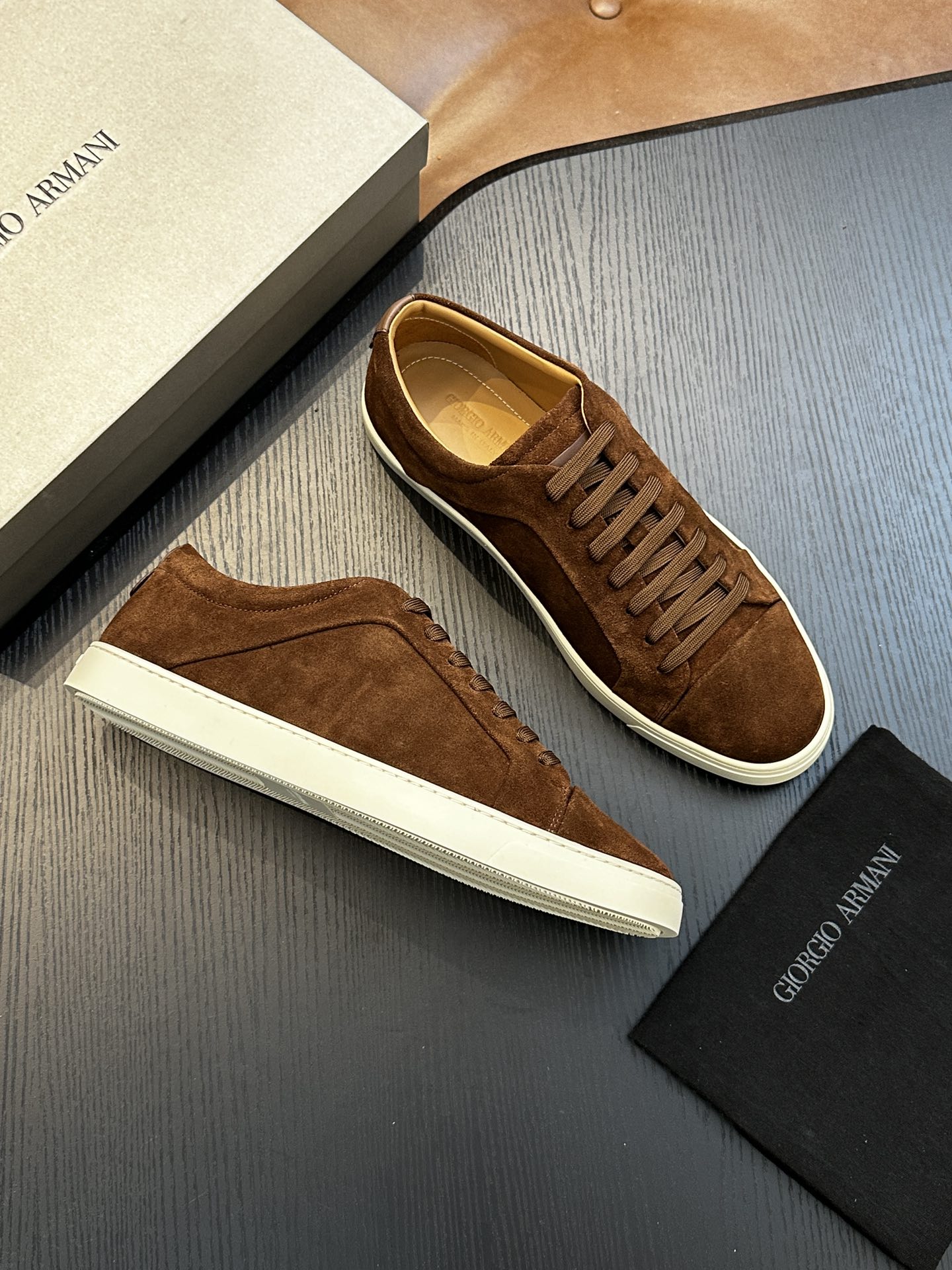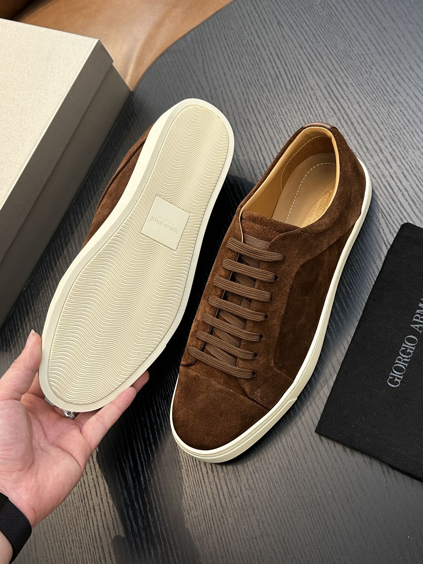 這款鞋子是AAAAA 1:1 質量(非常棒). 使用了和原版一模一樣的材料. 商標部分也保持了和阿瑪尼/Armani一樣. 圖片拍攝是實物鞋子拍攝, 您所收到的實物保證和我們圖片一模一樣.