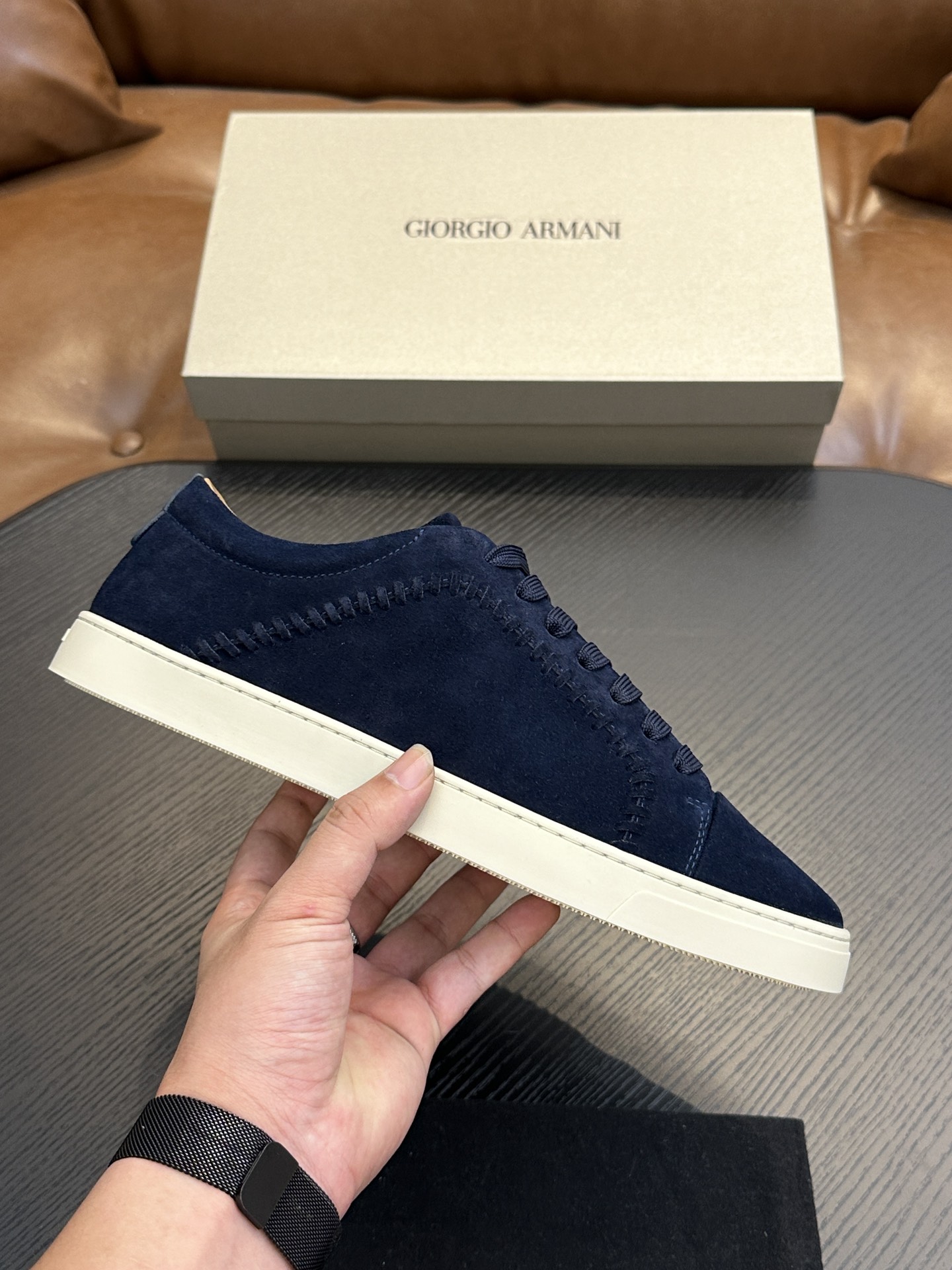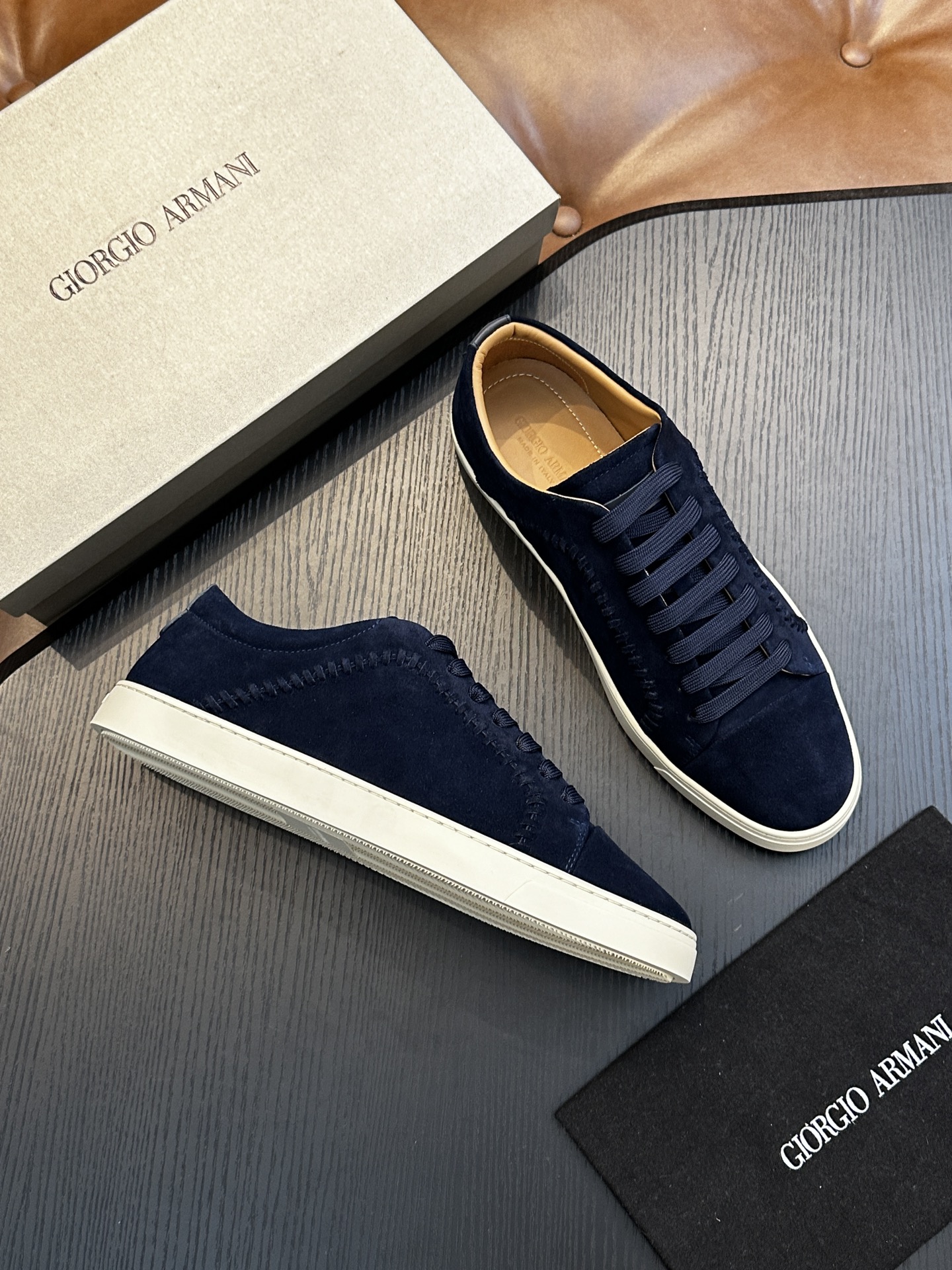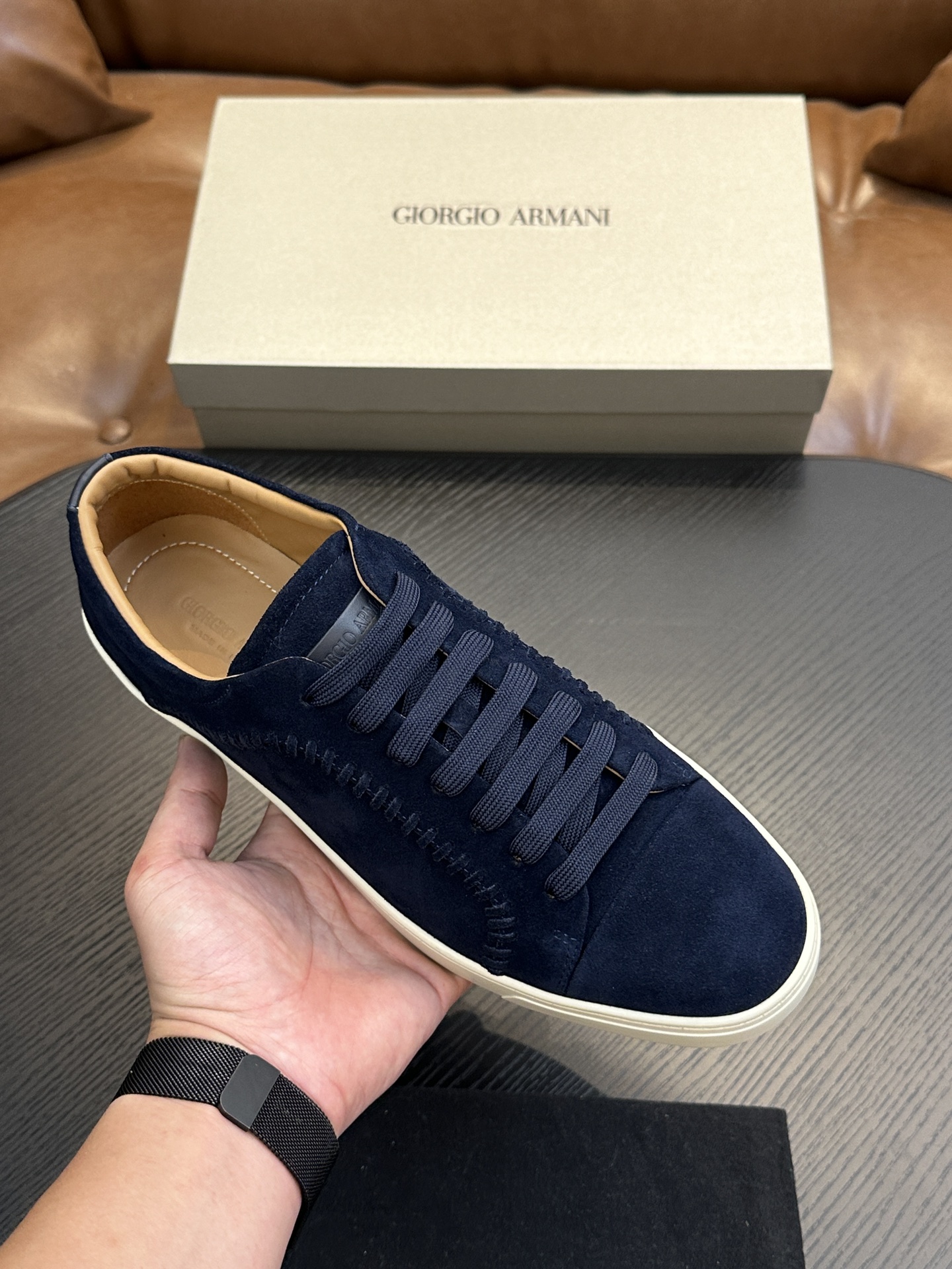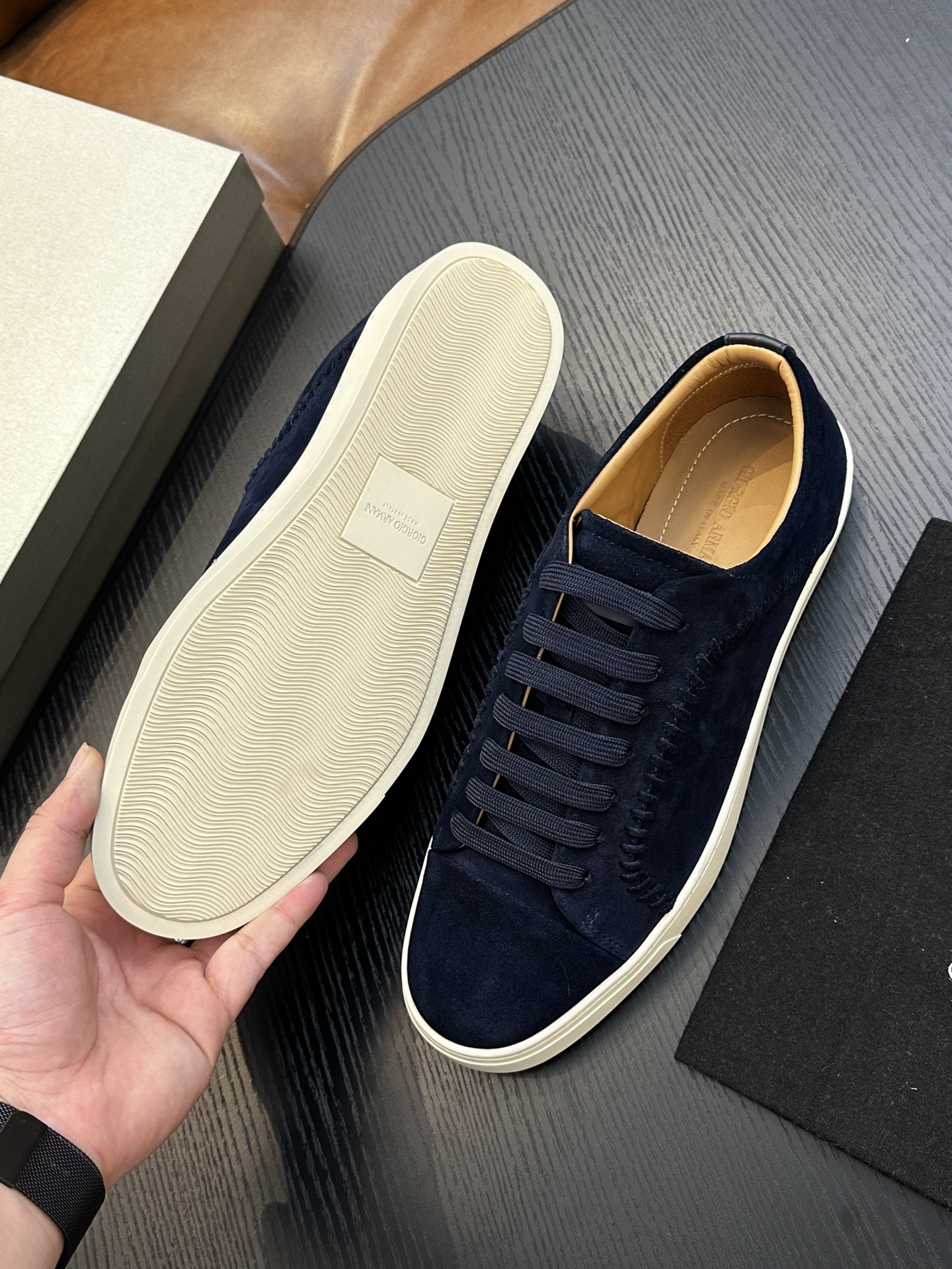 這款鞋子是AAAAA 1:1 質量(非常棒). 使用了和原版一模一樣的材料. 商標部分也保持了和阿瑪尼/Armani一樣. 圖片拍攝是實物鞋子拍攝, 您所收到的實物保證和我們圖片一模一樣.