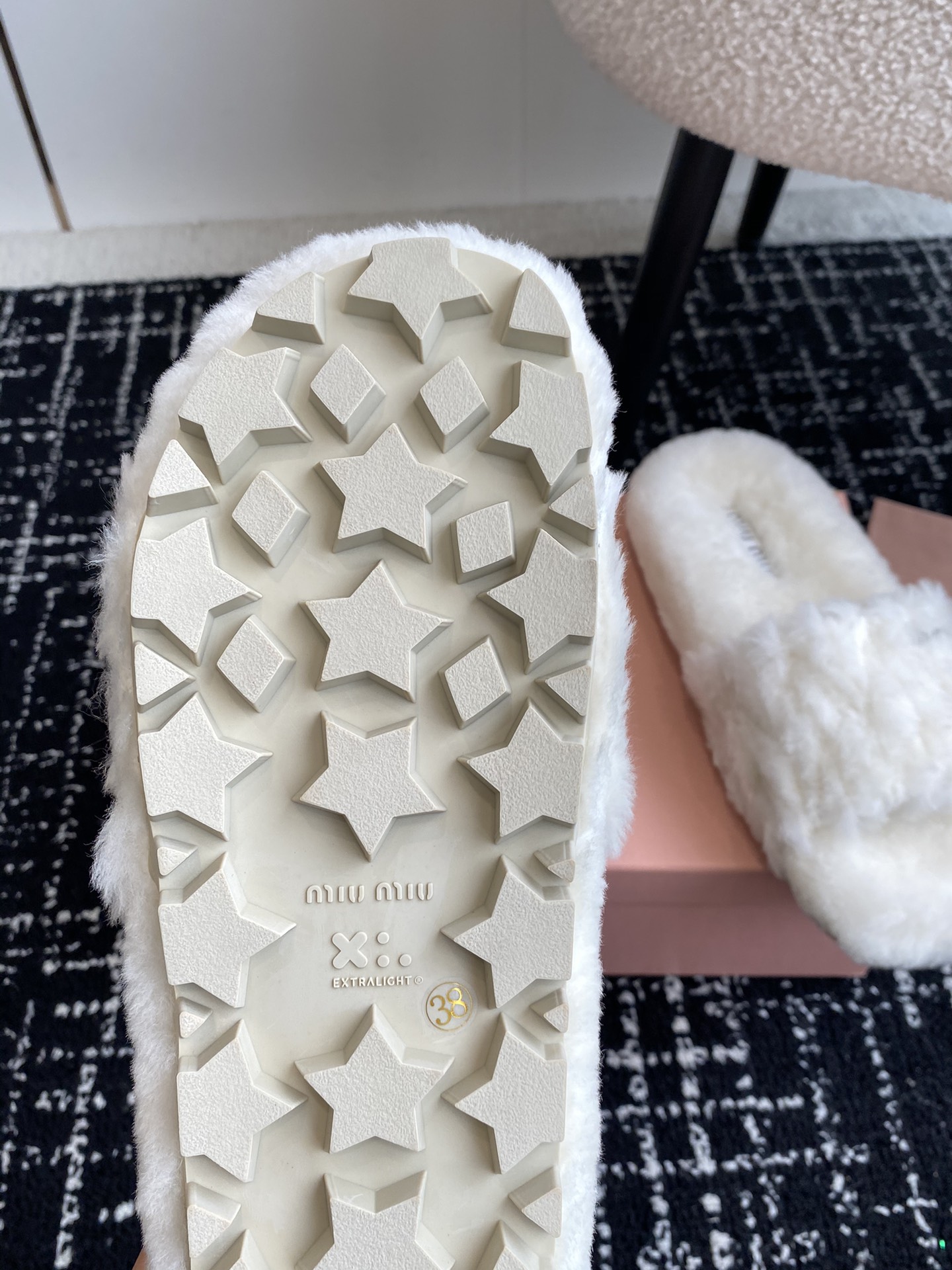這款鞋子是AAAAA 1:1 質量(非常棒). 使用了和原版一模一樣的材料. 商標部分也保持了和繆繆/Miu Miu一樣. 圖片拍攝是實物鞋子拍攝, 您所收到的實物保證和我們圖片一模一樣.