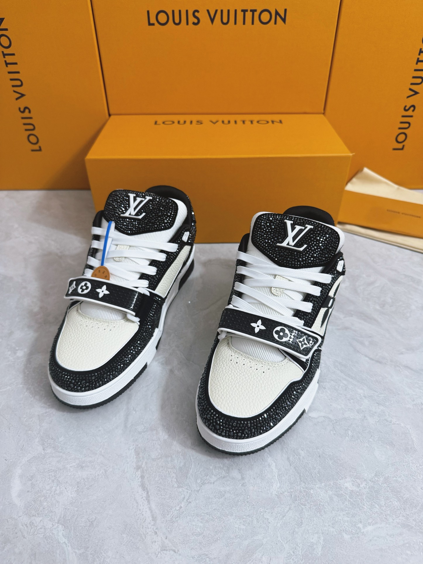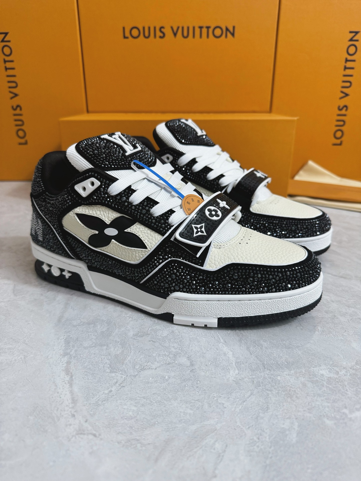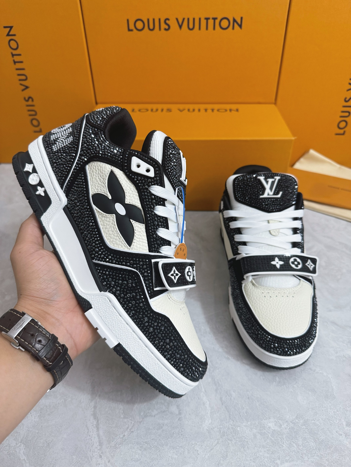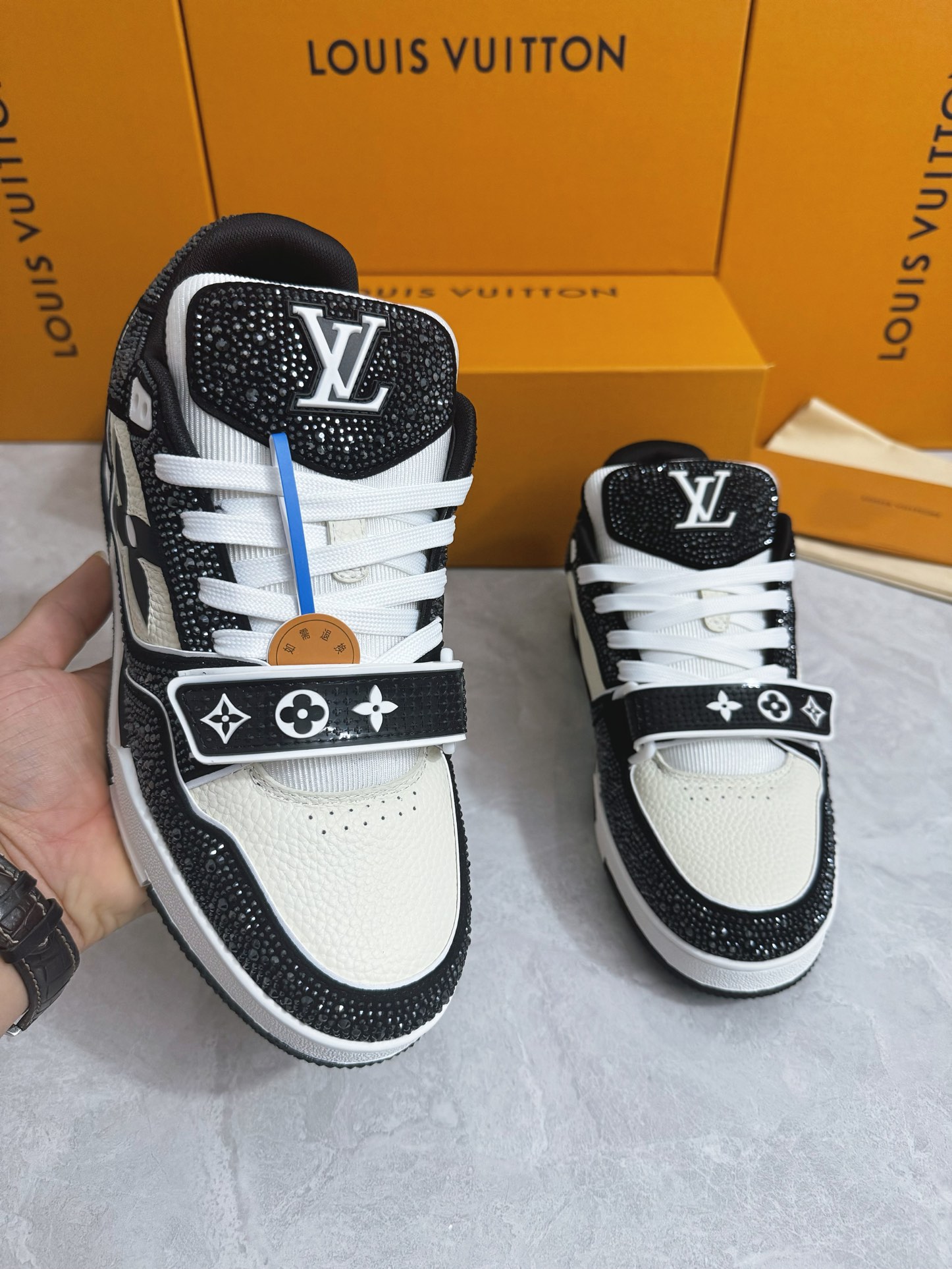 這款鞋子是AAAAA 1:1 質量(非常棒). 使用了和原版一模一樣的材料. 商標部分也保持了和路易威登/Louis Vuitton一樣. 圖片拍攝是實物鞋子拍攝, 您所收到的實物保證和我們圖片一模一樣.