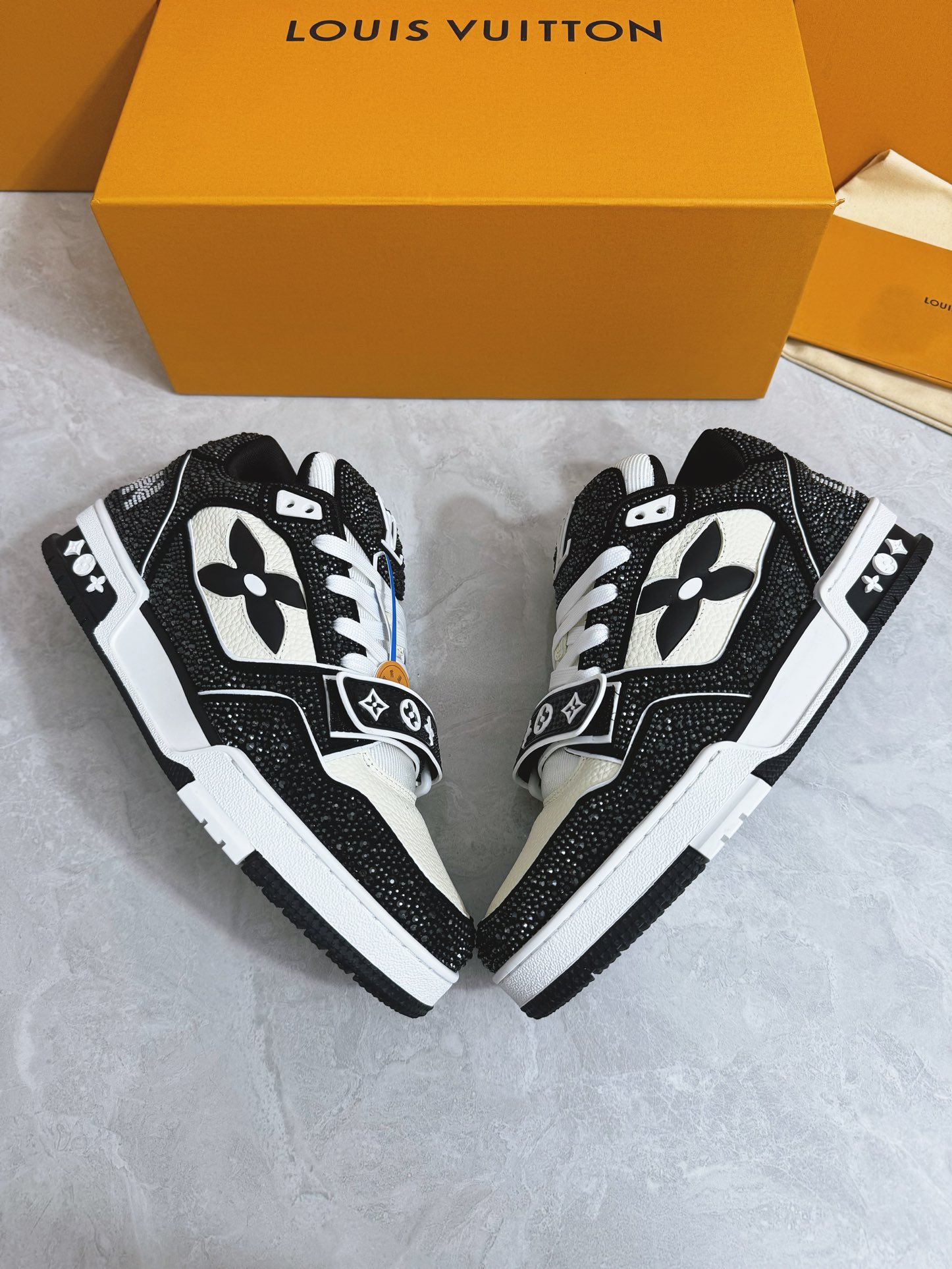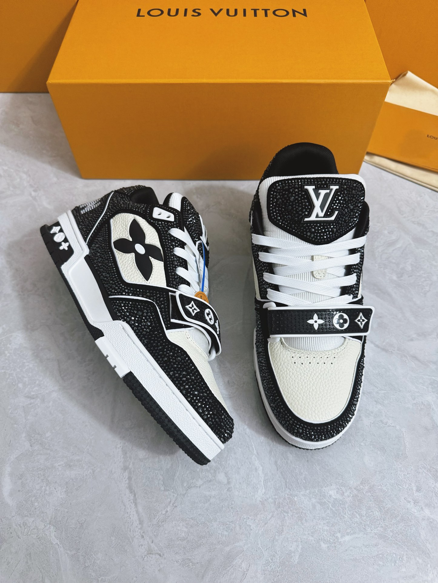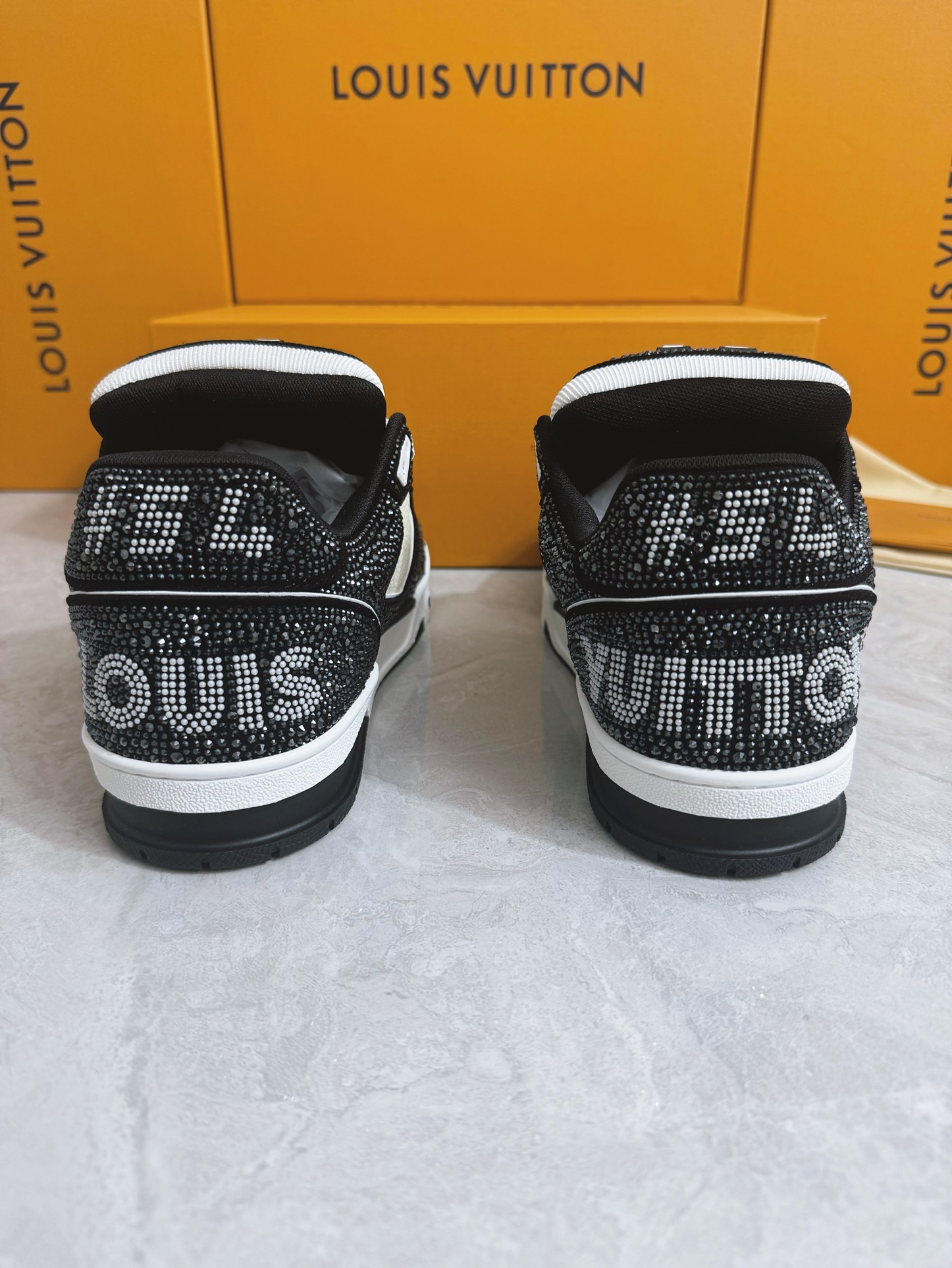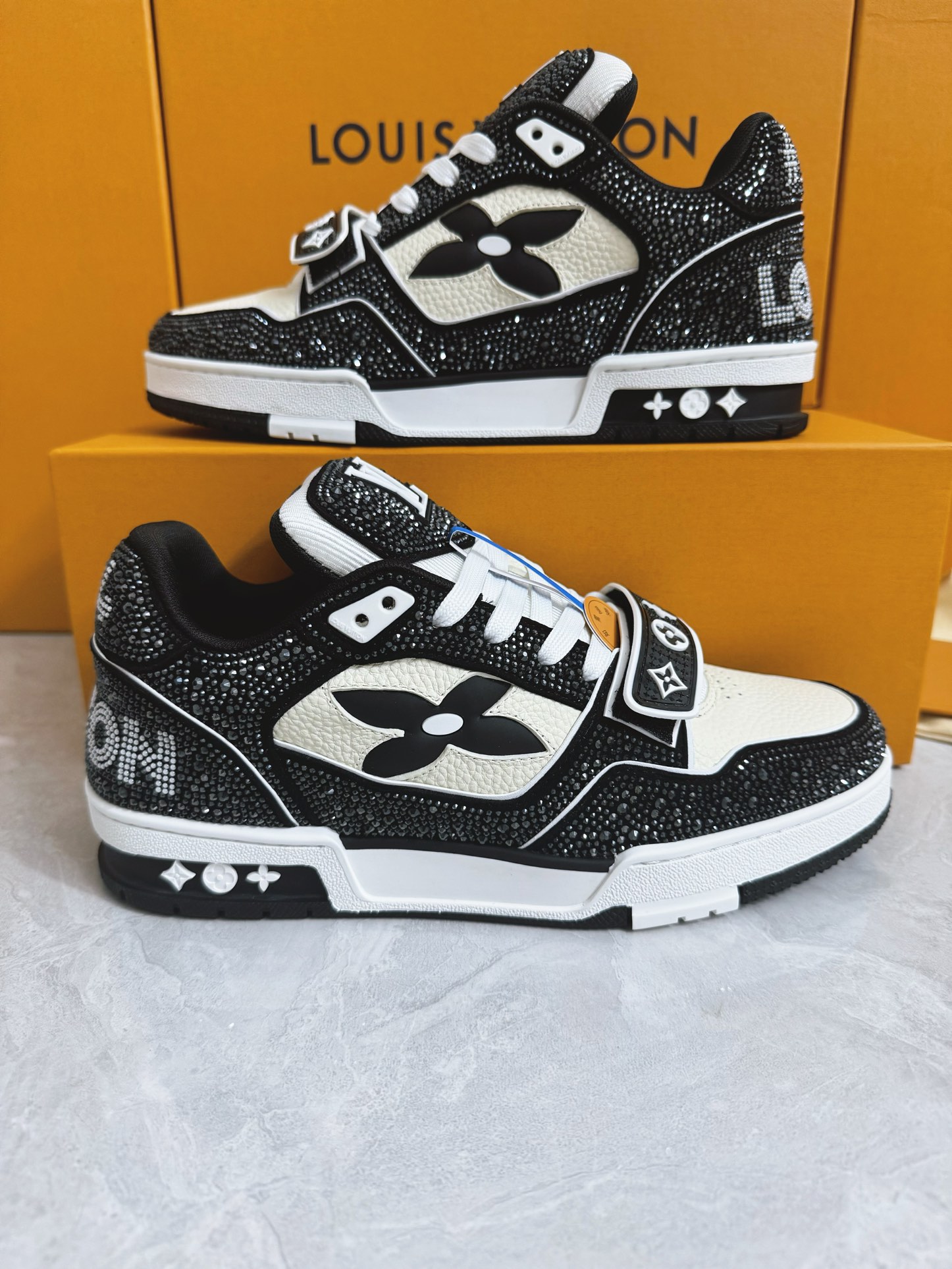 這款鞋子是AAAAA 1:1 質量(非常棒). 使用了和原版一模一樣的材料. 商標部分也保持了和路易威登/Louis Vuitton一樣. 圖片拍攝是實物鞋子拍攝, 您所收到的實物保證和我們圖片一模一樣.
