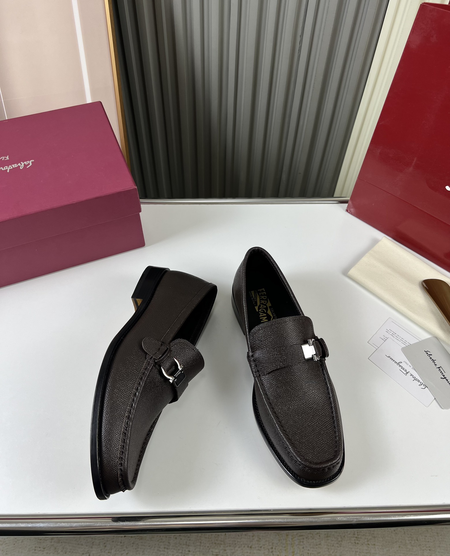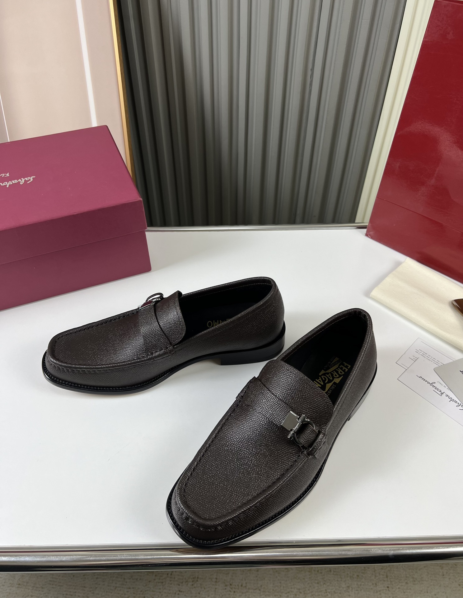 這款鞋子是AAAAA 1:1 質量(非常棒). 使用了和原版一模一樣的材料. 商標部分也保持了和菲拉格慕/Salvatore Ferragamo一樣. 圖片拍攝是實物鞋子拍攝, 您所收到的實物保證和我們圖片一模一樣.
