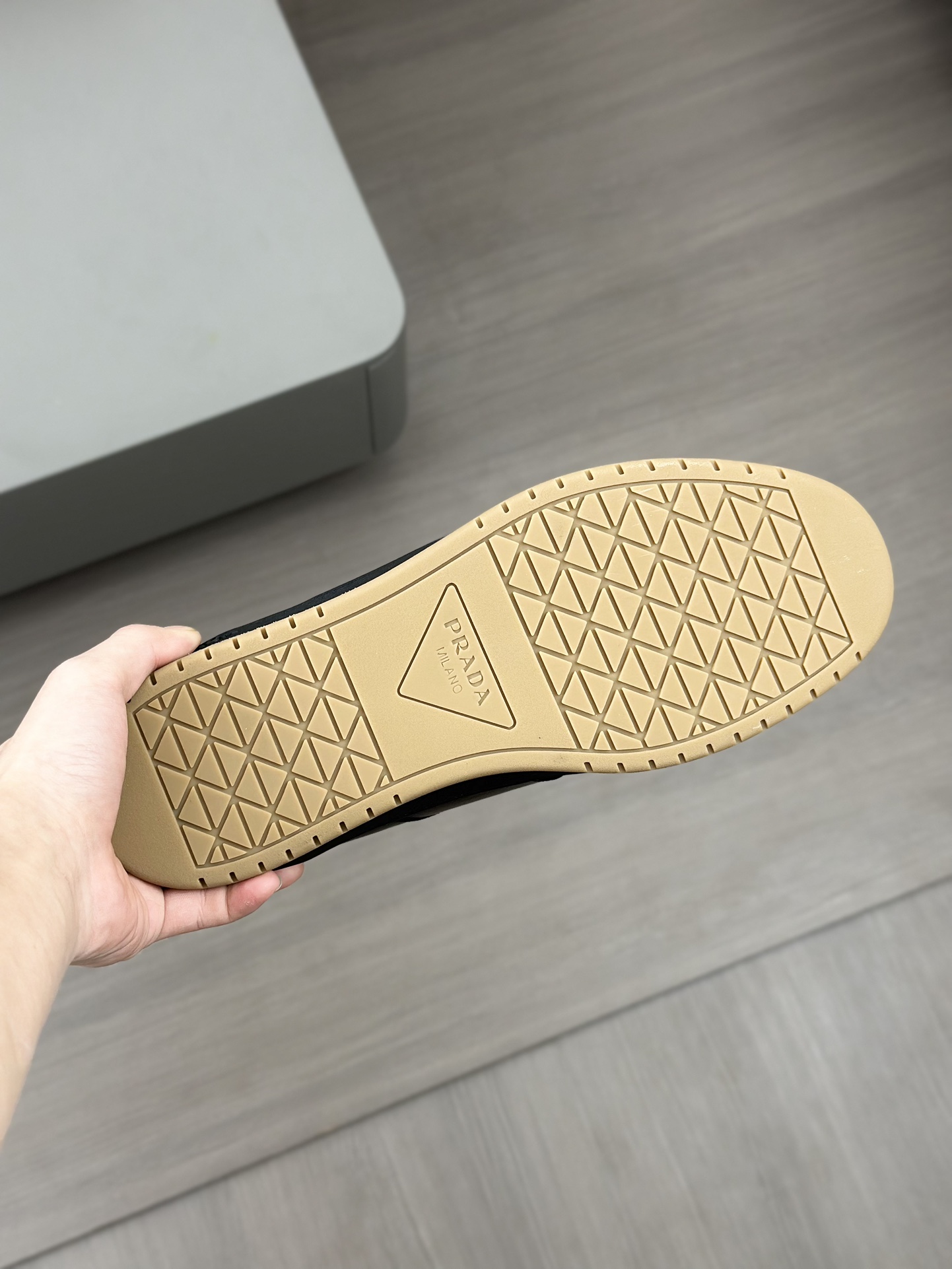 這款鞋子是AAAAA 1:1 質量(非常棒). 使用了和原版一模一樣的材料. 商標部分也保持了和普拉達/Prada一樣. 圖片拍攝是實物鞋子拍攝, 您所收到的實物保證和我們圖片一模一樣.
