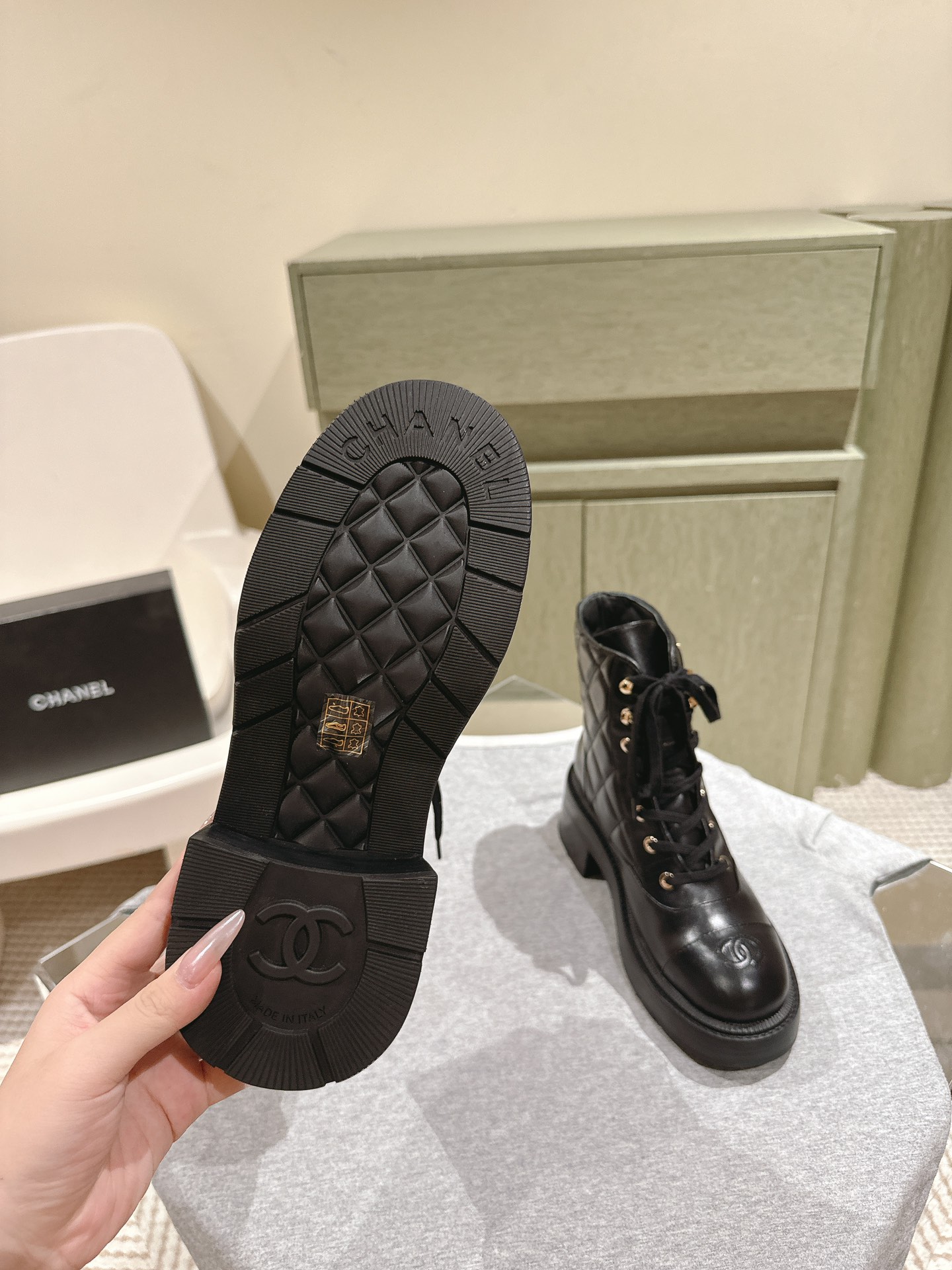 這款鞋子是AAAAA 1:1 質量(非常棒). 使用了和原版一模一樣的材料. 商標部分也保持了和香奈兒/Chanel一樣. 圖片拍攝是實物鞋子拍攝, 您所收到的實物保證和我們圖片一模一樣.