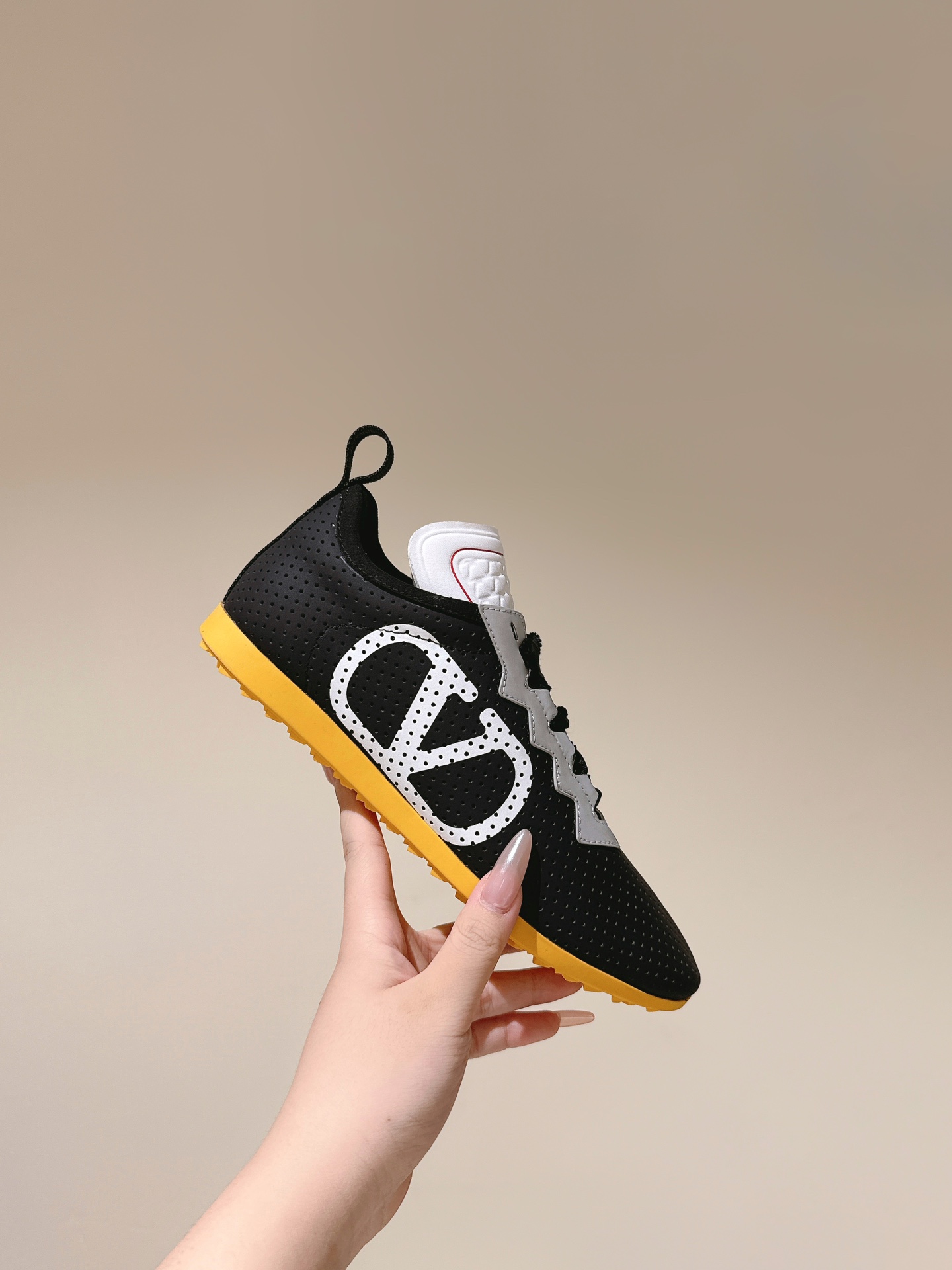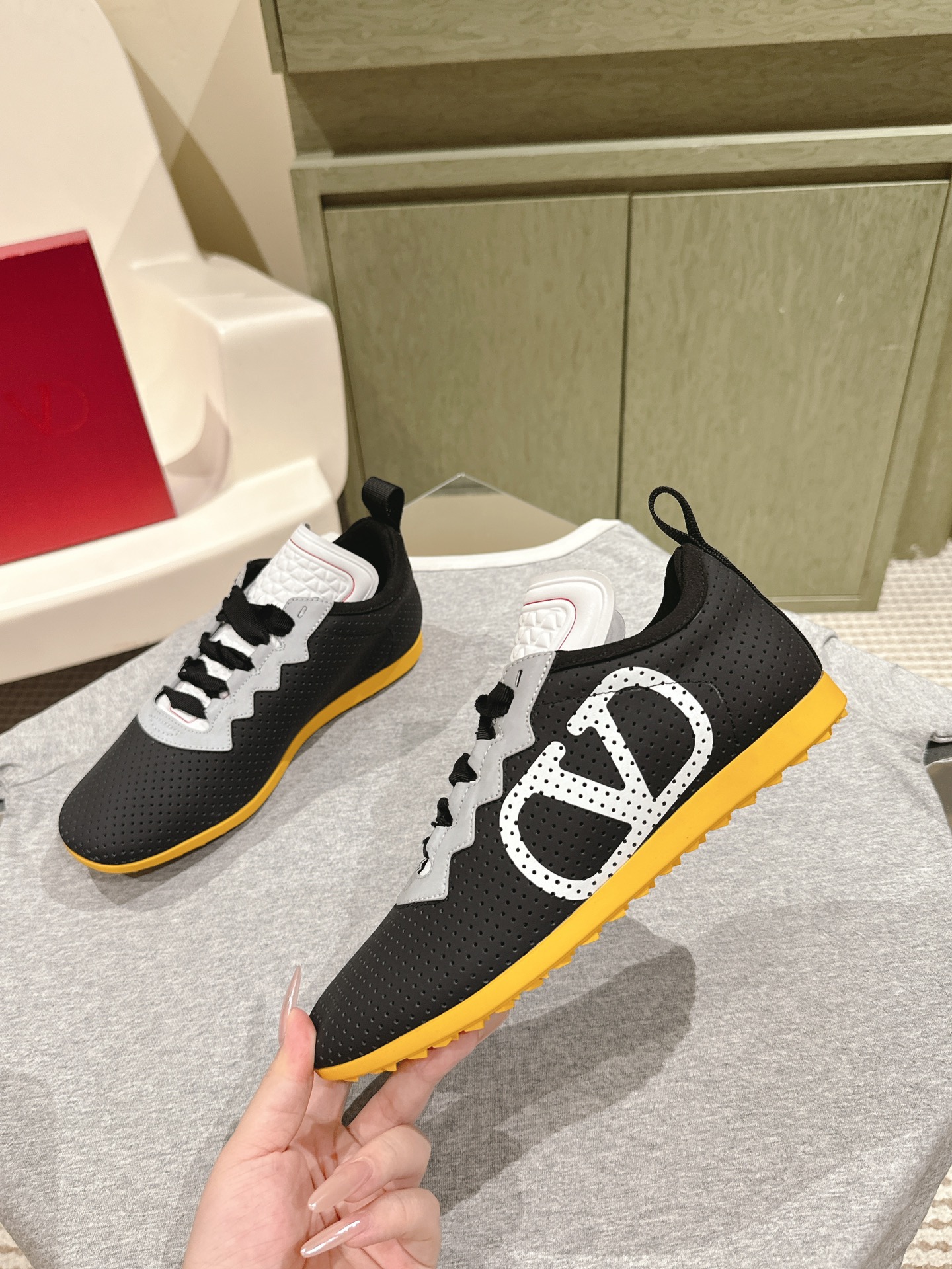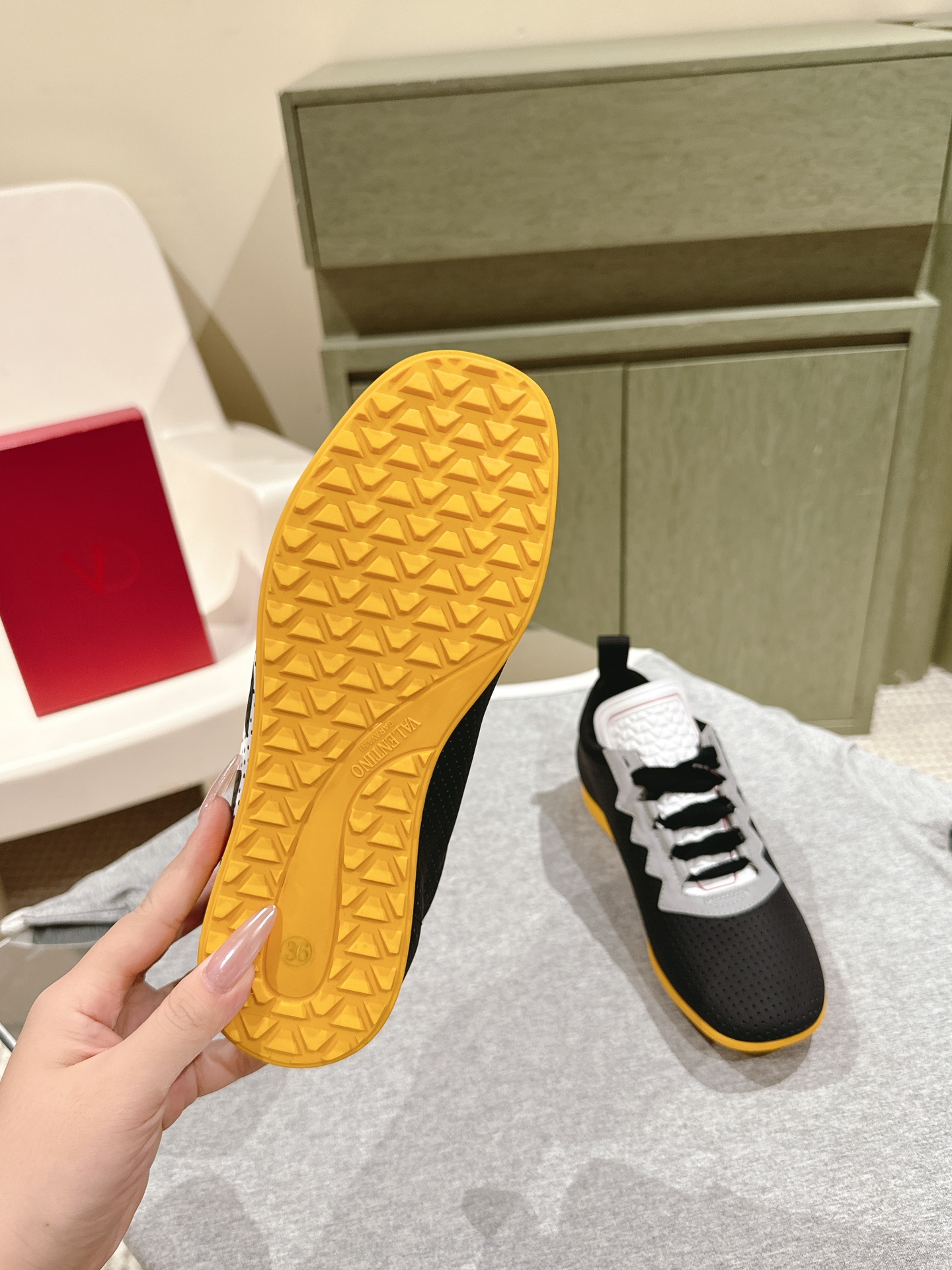 這款鞋子是AAAAA 1:1 質量(非常棒). 使用了和原版一模一樣的材料. 商標部分也保持了和瓦倫蒂諾/Valentino一樣. 圖片拍攝是實物鞋子拍攝, 您所收到的實物保證和我們圖片一模一樣.