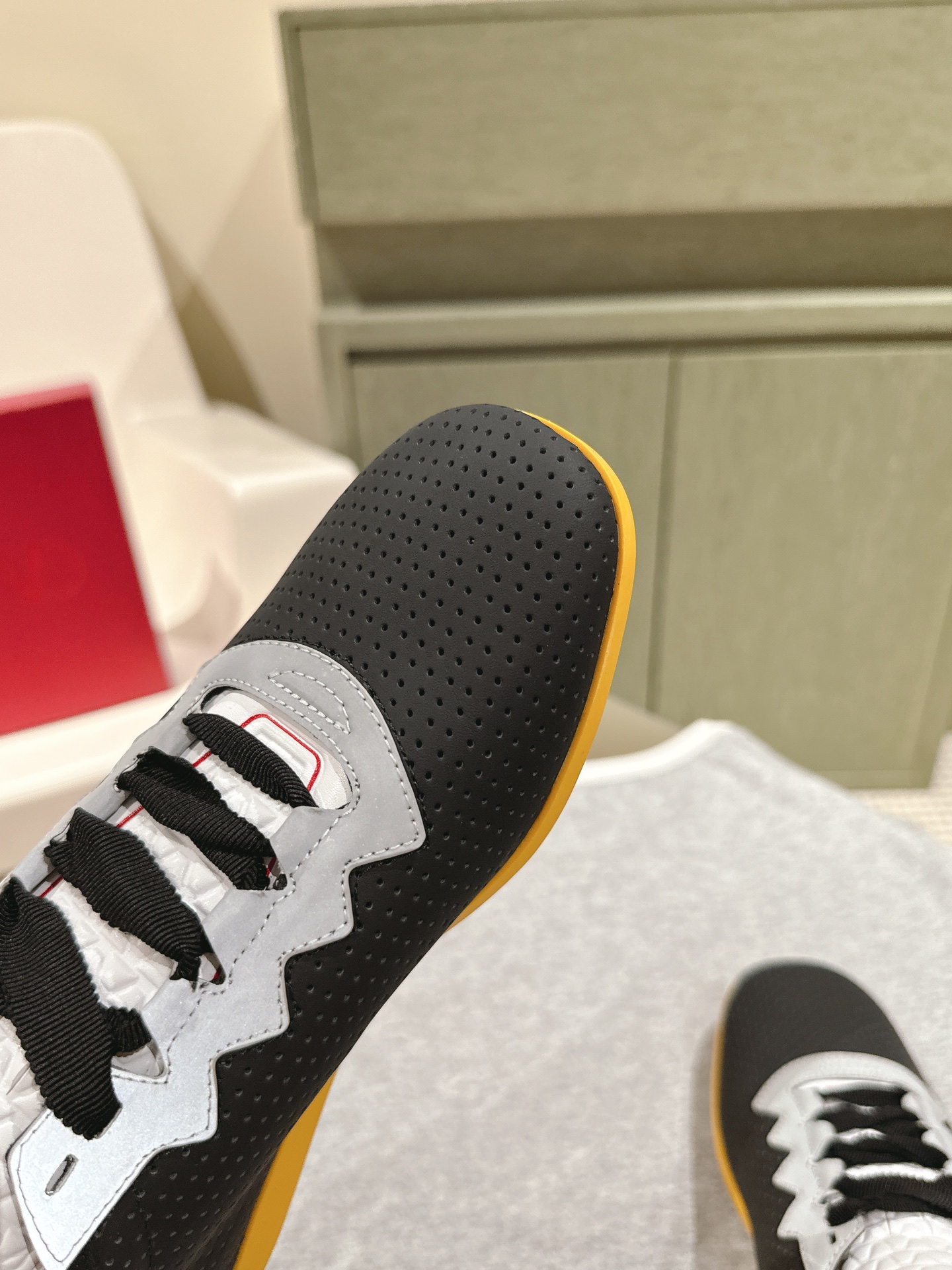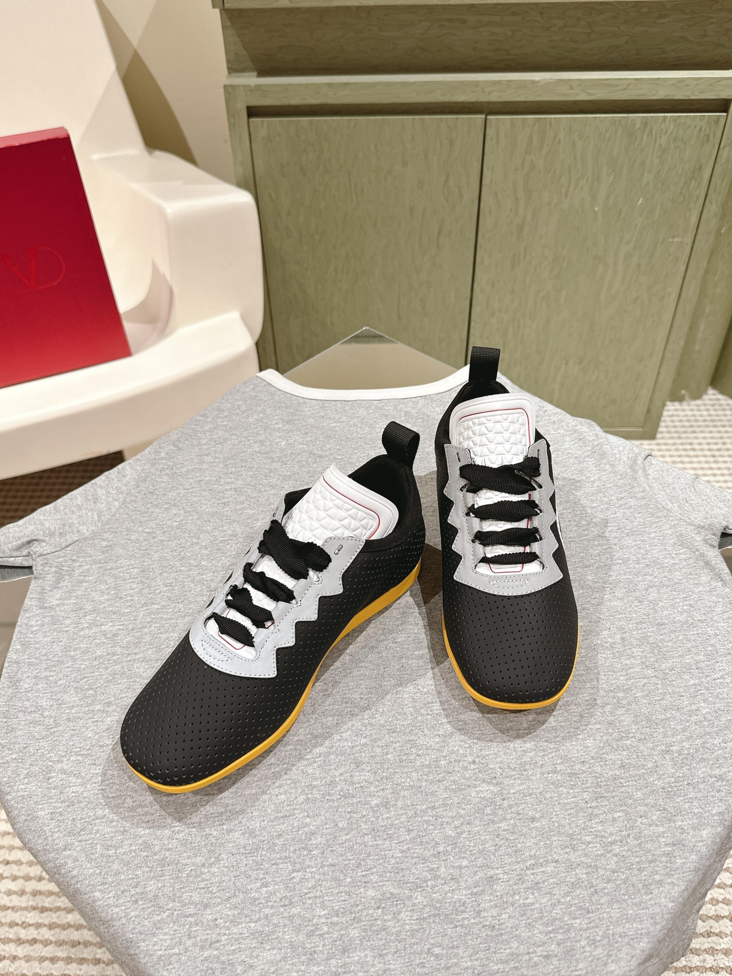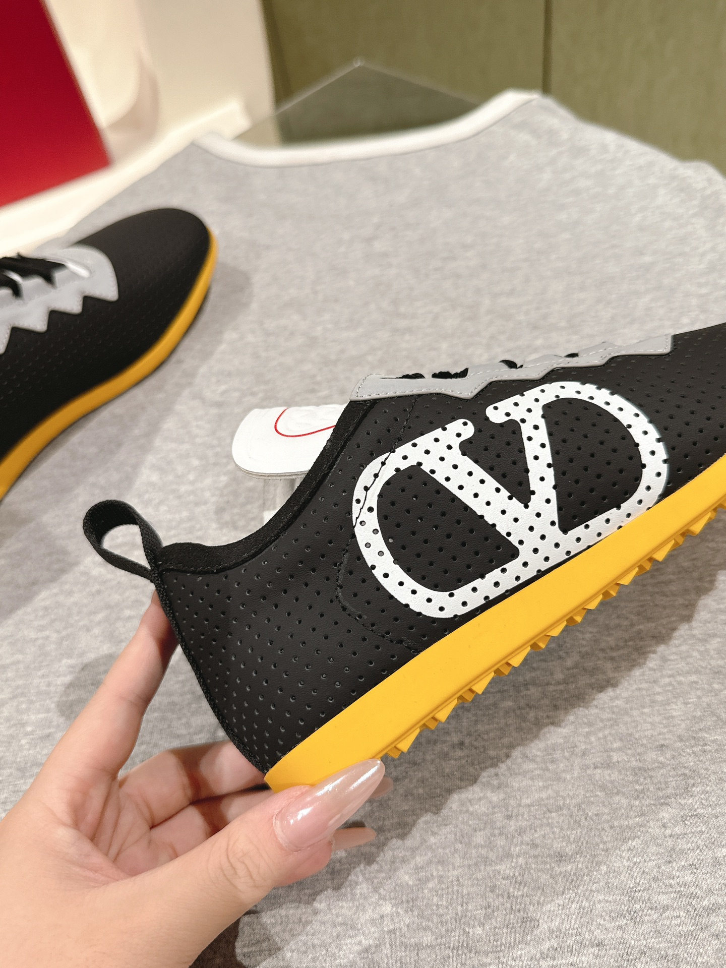 這款鞋子是AAAAA 1:1 質量(非常棒). 使用了和原版一模一樣的材料. 商標部分也保持了和瓦倫蒂諾/Valentino一樣. 圖片拍攝是實物鞋子拍攝, 您所收到的實物保證和我們圖片一模一樣.