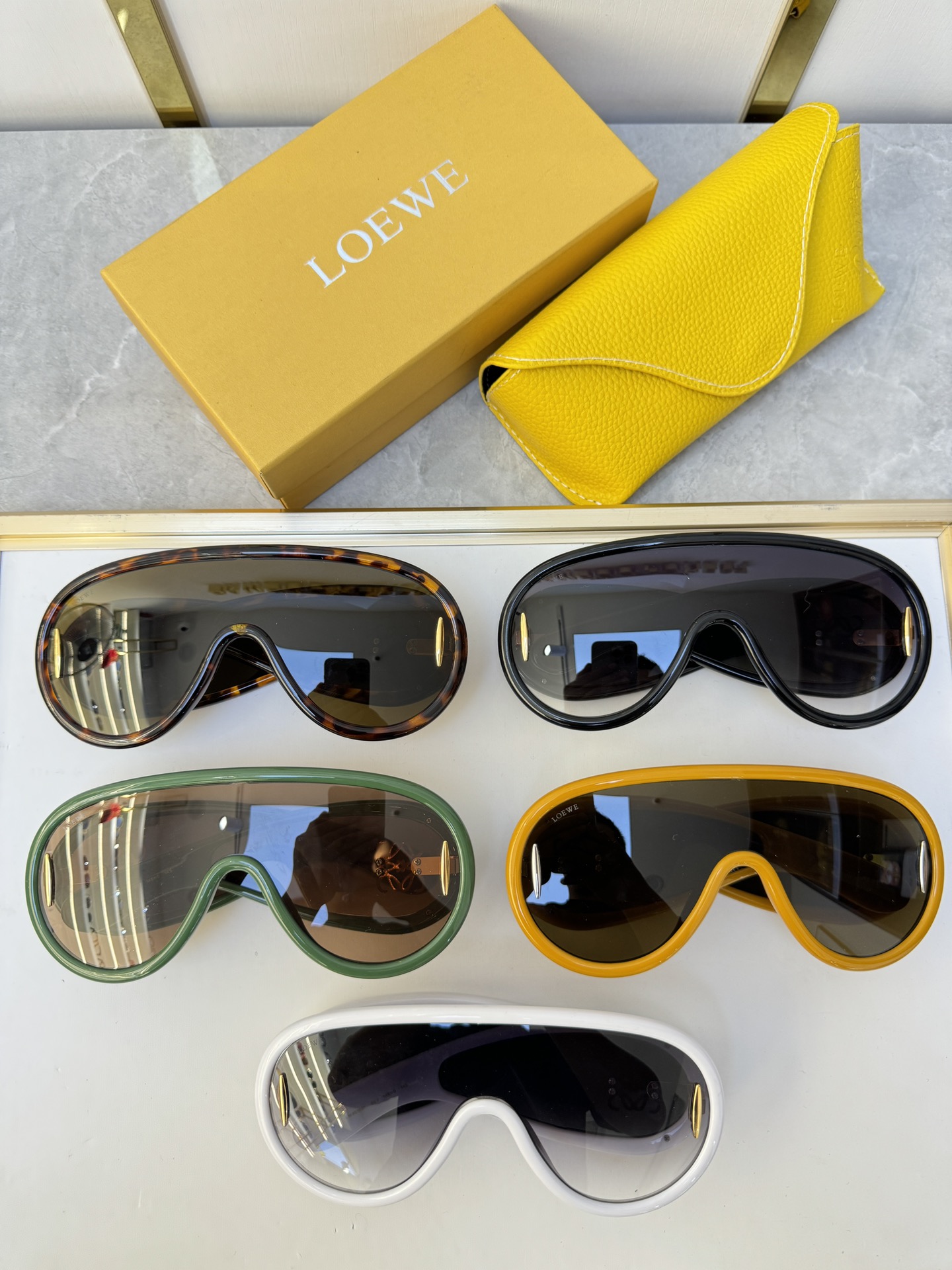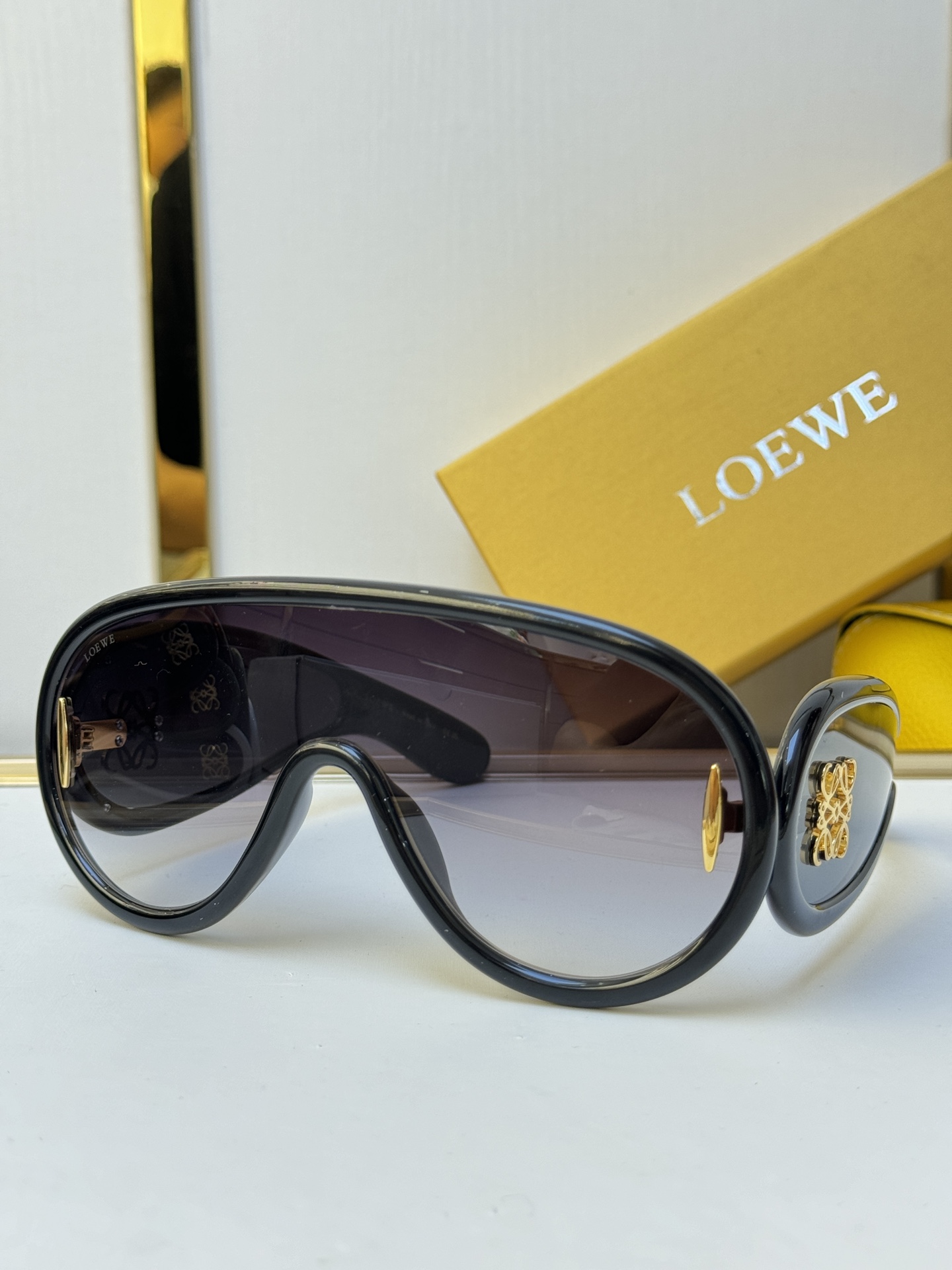 這款太陽眼鏡是AAAAA 1:1 質量(非常棒). 使用了和原版一模一樣的材料. 商標部分也保持了和Loewe一樣. 圖片拍攝是實物太陽眼鏡拍攝, 您所收到的實物保證和我們圖片一模一樣.