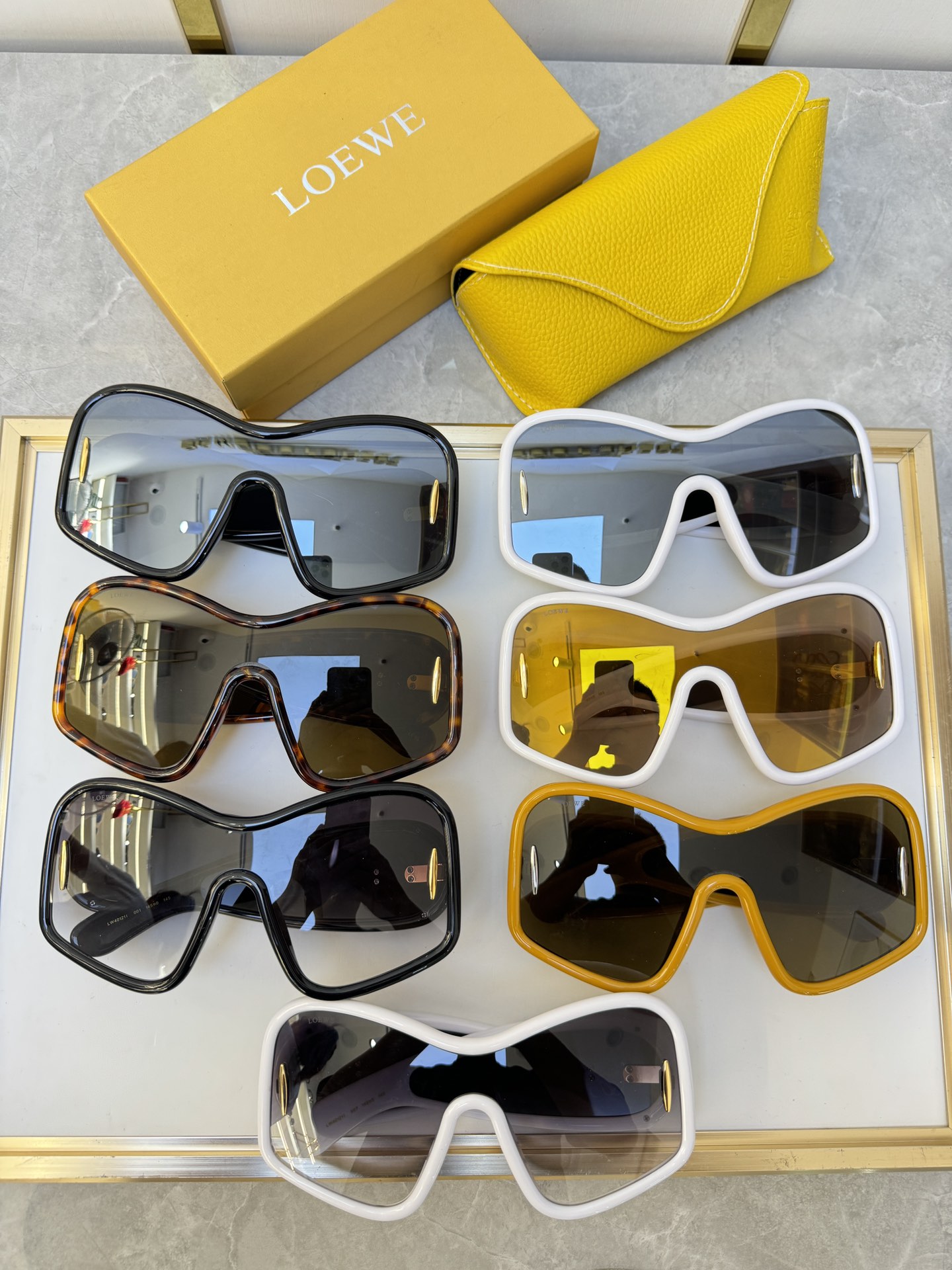這款太陽眼鏡是AAAAA 1:1 質量(非常棒). 使用了和原版一模一樣的材料. 商標部分也保持了和Loewe一樣. 圖片拍攝是實物太陽眼鏡拍攝, 您所收到的實物保證和我們圖片一模一樣.