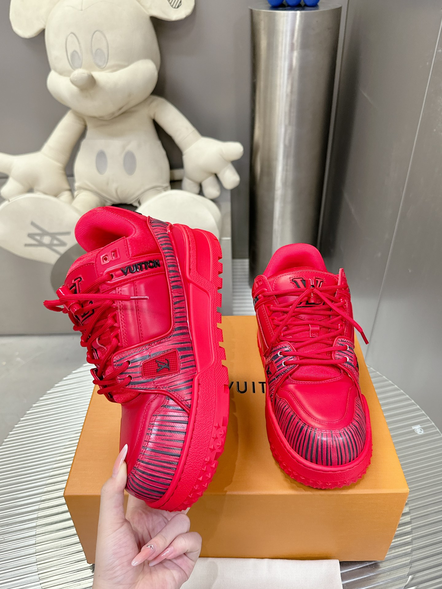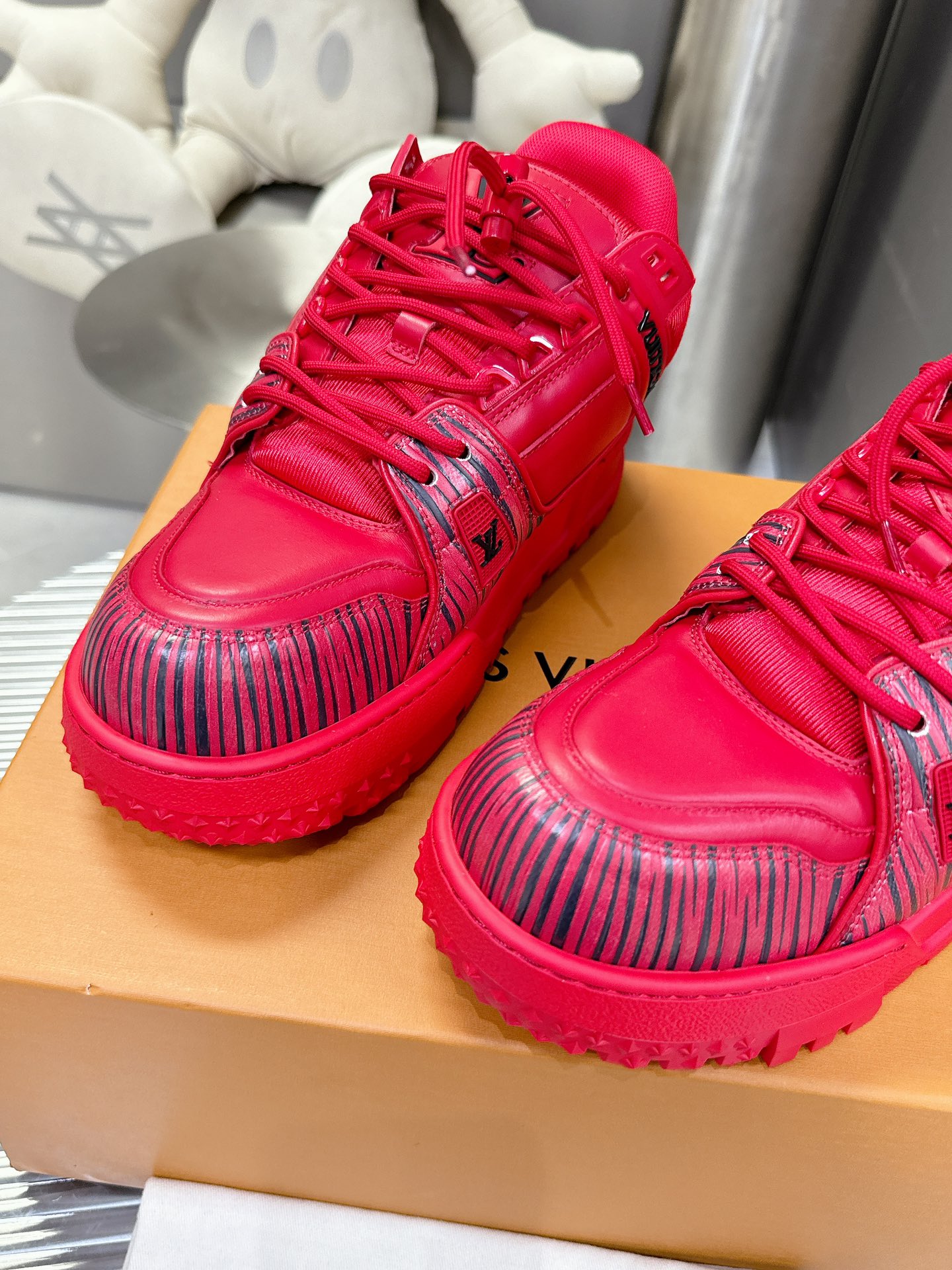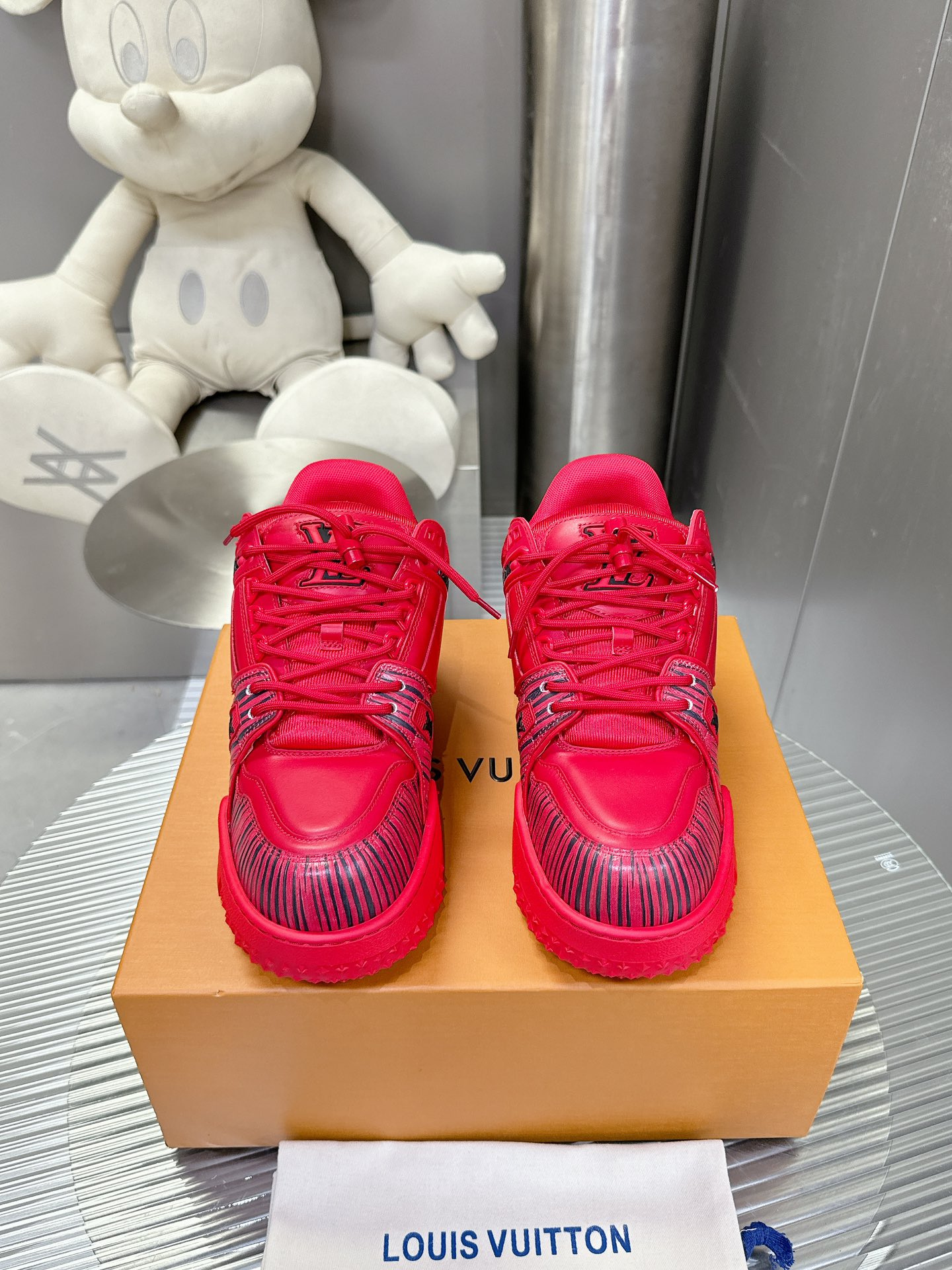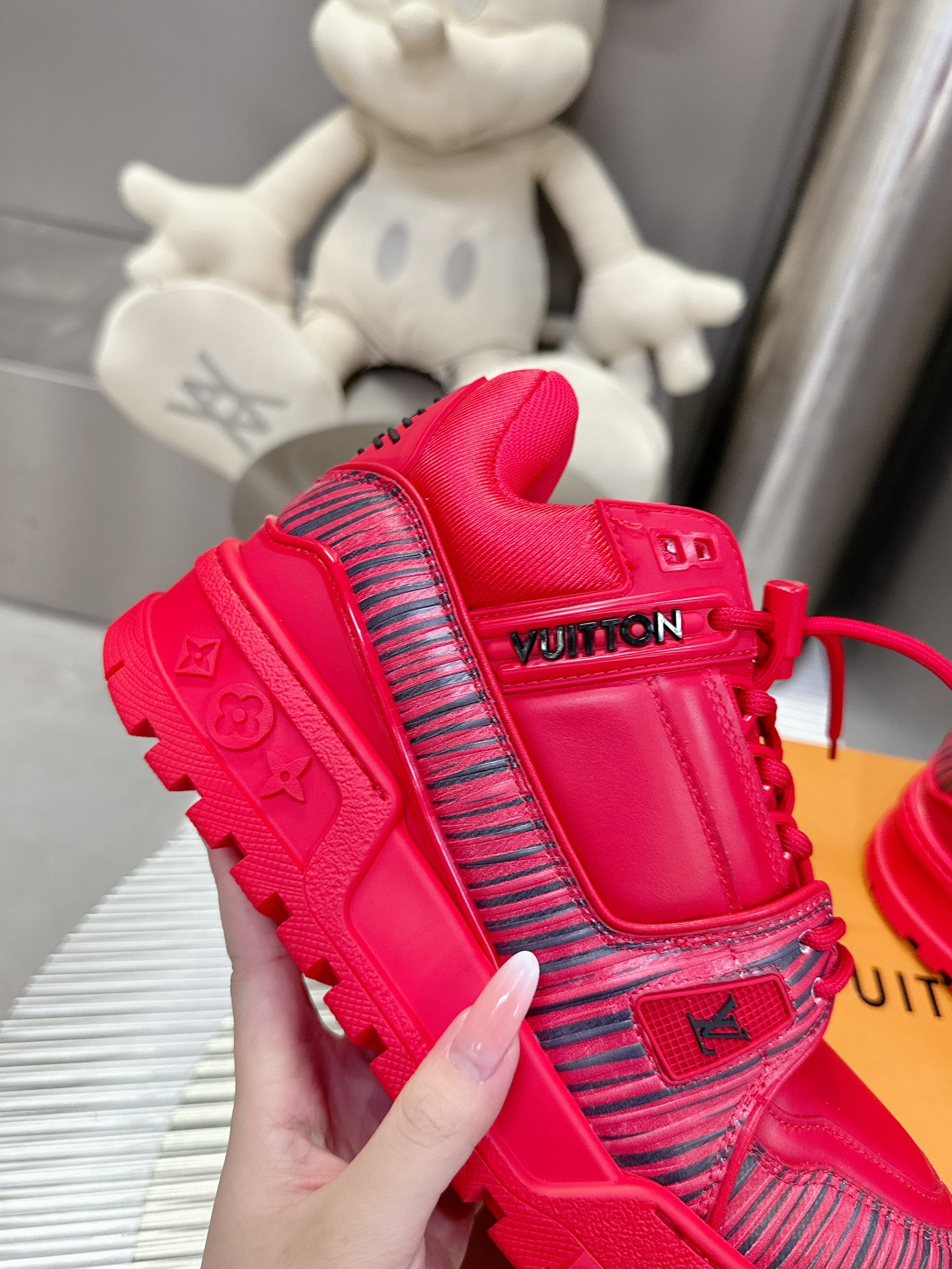 這款鞋子是AAAAA 1:1 質量(非常棒). 使用了和原版一模一樣的材料. 商標部分也保持了和路易威登/Louis Vuitton一樣. 圖片拍攝是實物鞋子拍攝, 您所收到的實物保證和我們圖片一模一樣.