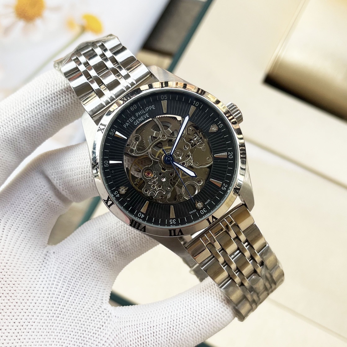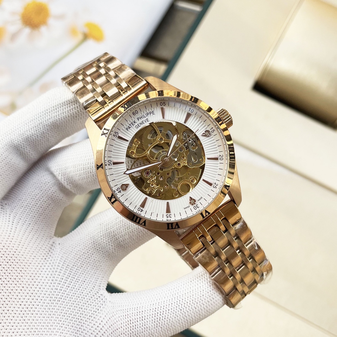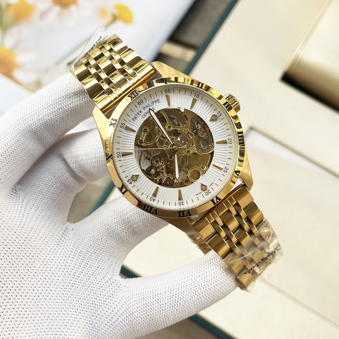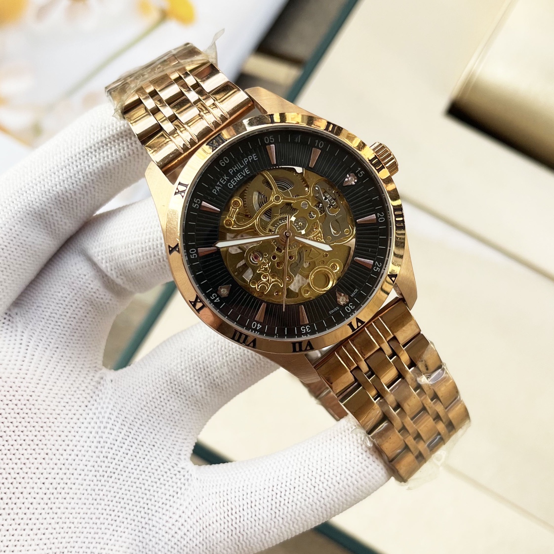 這款手錶是AAAAA 1:1 質量(非常棒). 使用了和原版一模一樣的材料. 商標部分也保持了和百達翡麗/Patek Philippe一樣. 圖片拍攝是實物手錶拍攝, 您所收到的實物保證和我們圖片一模一樣.