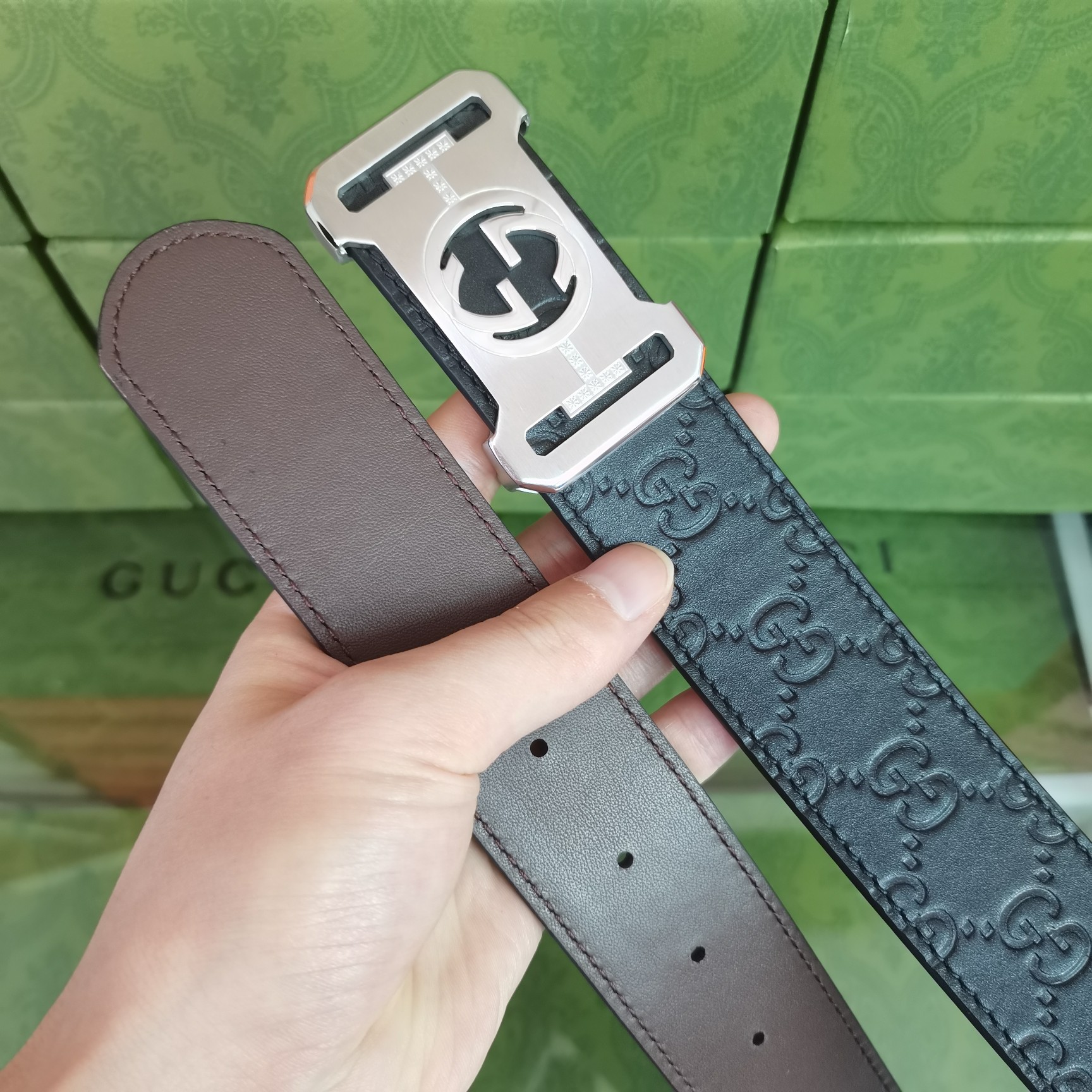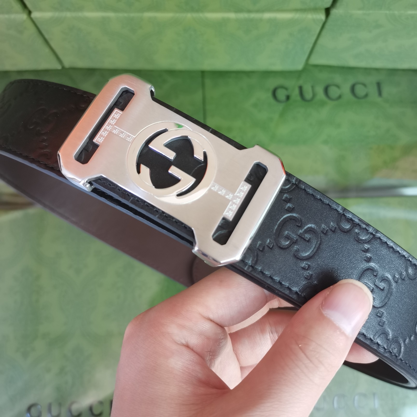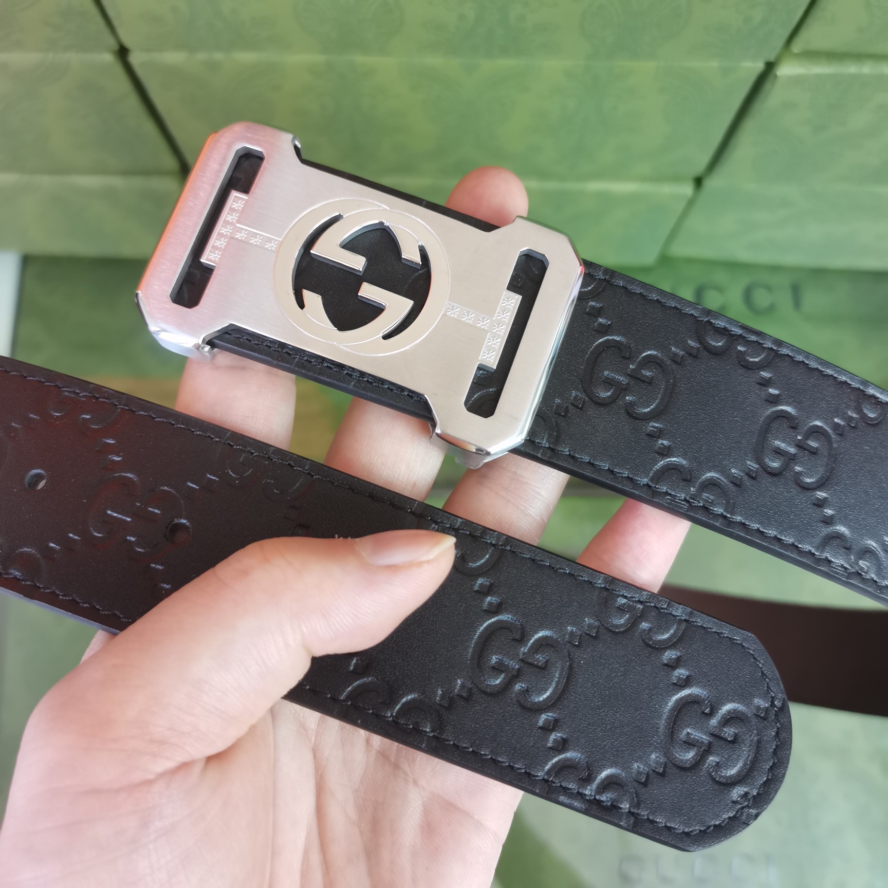 這款皮帶是AAAAA 1:1 質量(非常棒). 使用了和原版一模一樣的材料. 商標部分也保持了和古奇/Gucci一樣. 圖片拍攝是實物皮帶拍攝, 您所收到的實物保證和我們圖片一模一樣.