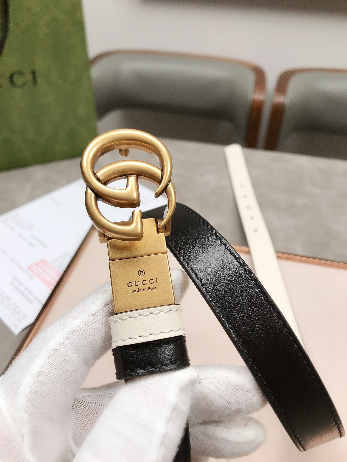 這款皮帶是AAAAA 1:1 質量(非常棒). 使用了和原版一模一樣的材料. 商標部分也保持了和一樣. 圖片拍攝是實物皮帶拍攝, 您所收到的實物保證和我們圖片一模一樣.