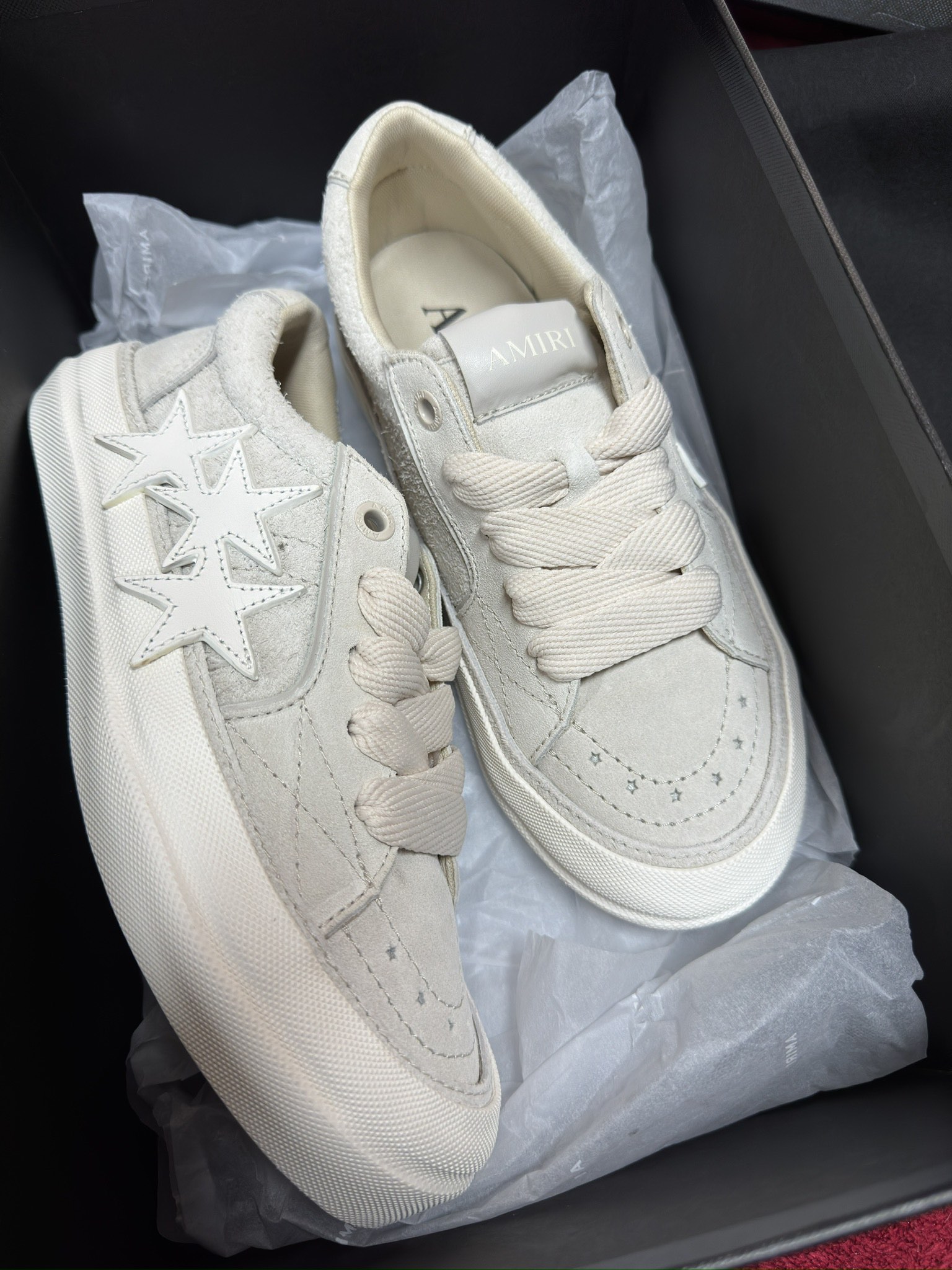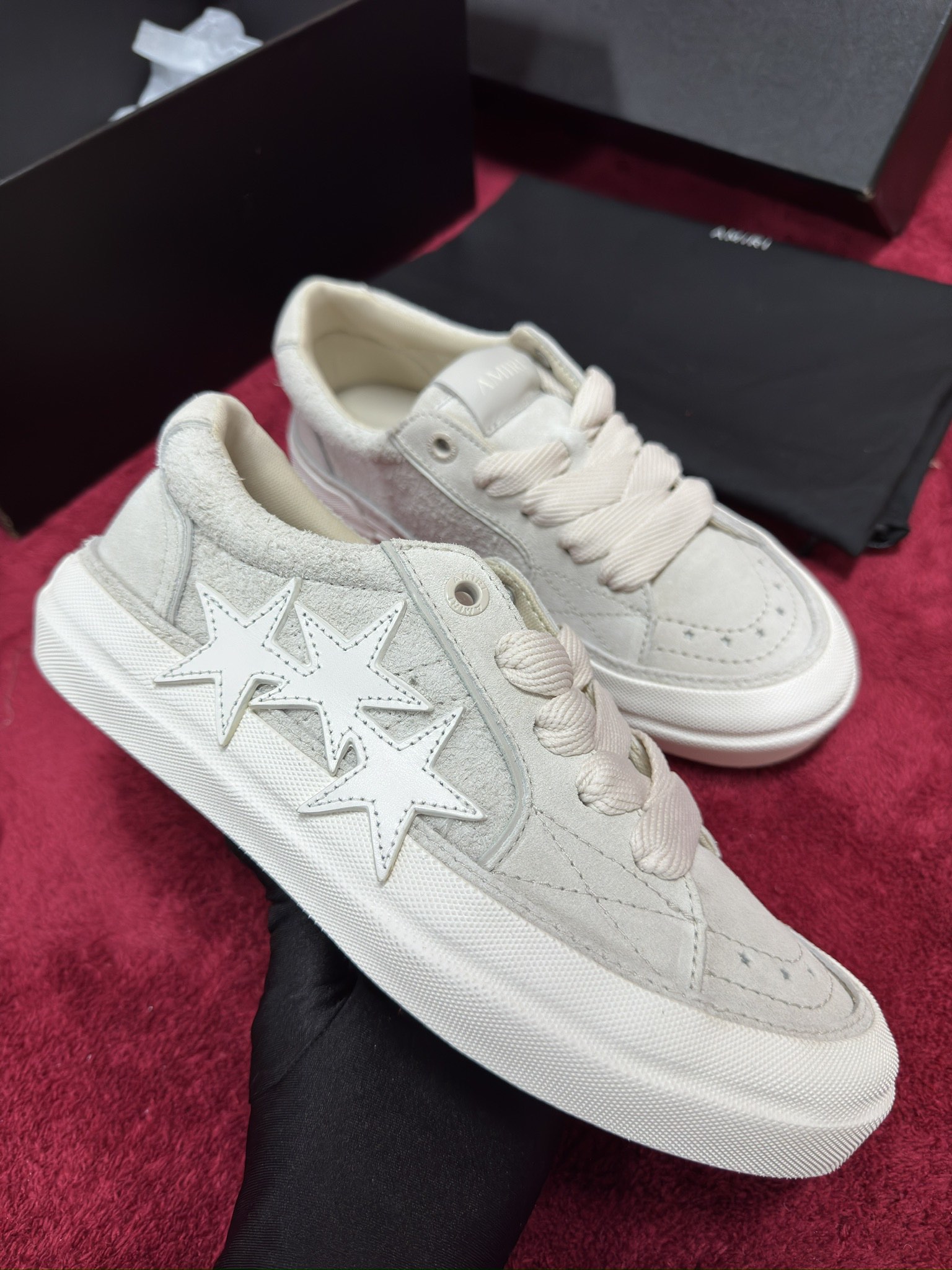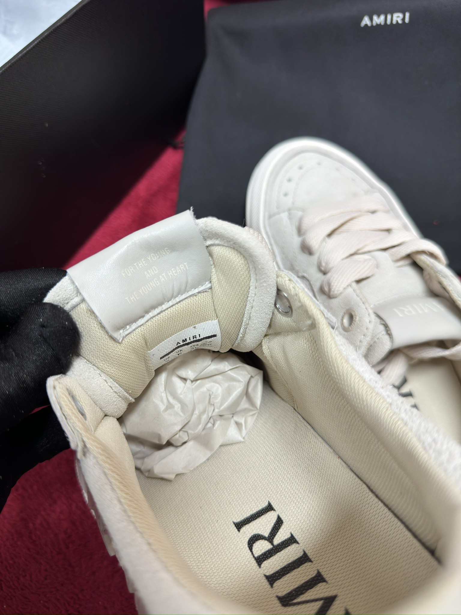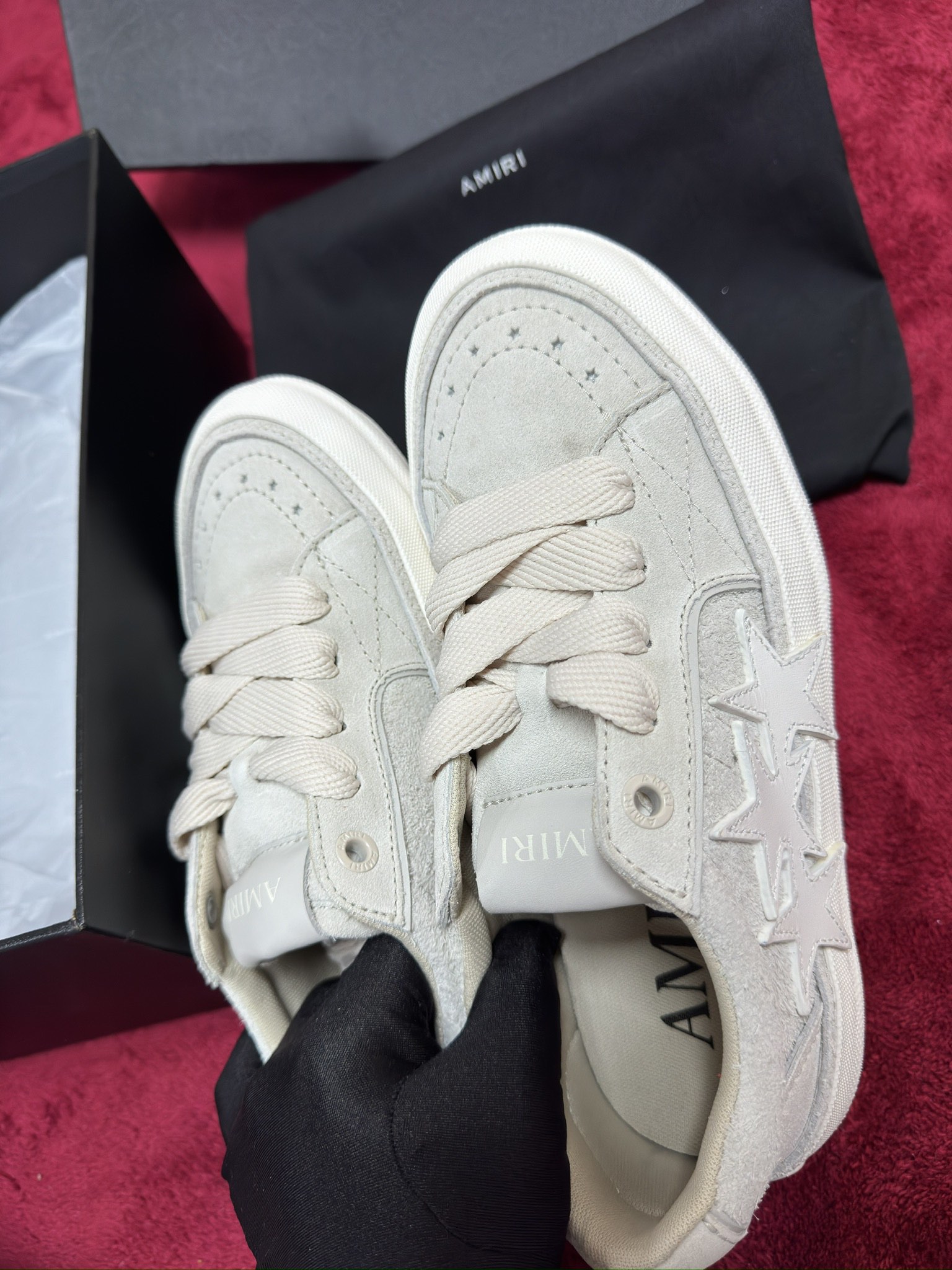 這款鞋子是AAAAA 1:1 質量(非常棒). 使用了和原版一模一樣的材料. 商標部分也保持了和AMIRI一樣. 圖片拍攝是實物鞋子拍攝, 您所收到的實物保證和我們圖片一模一樣.