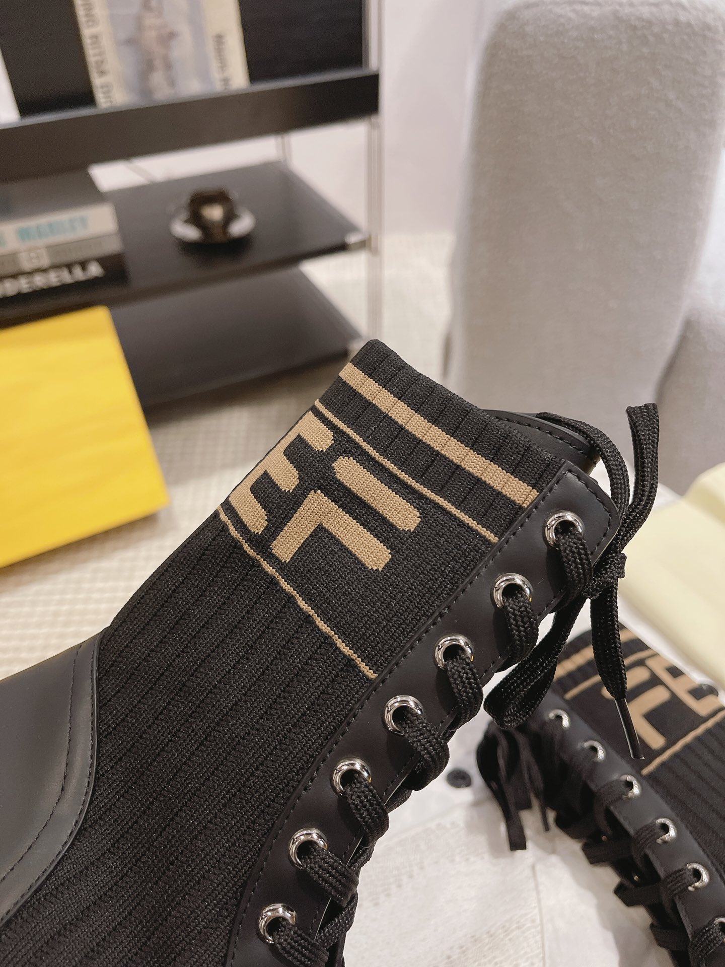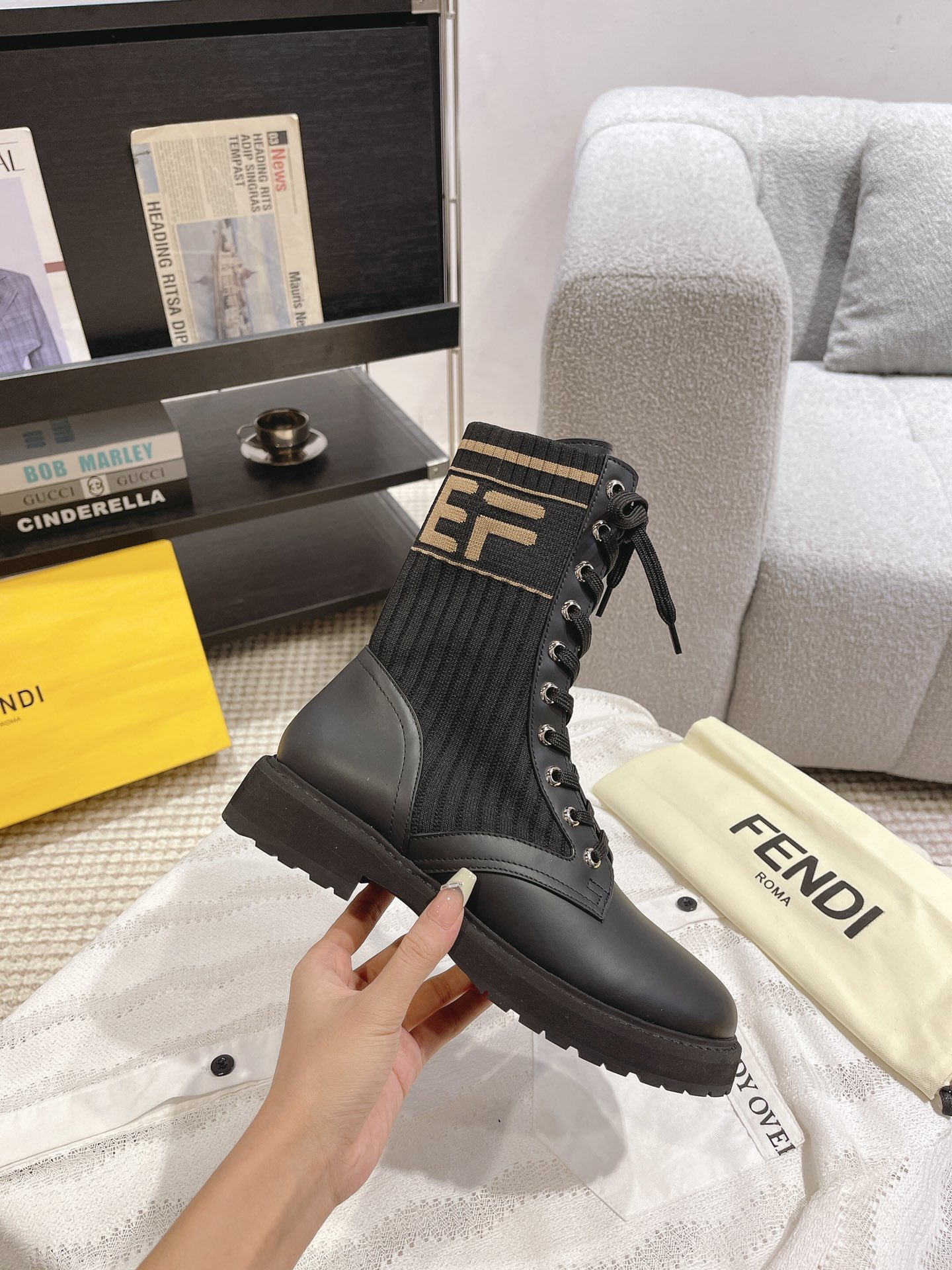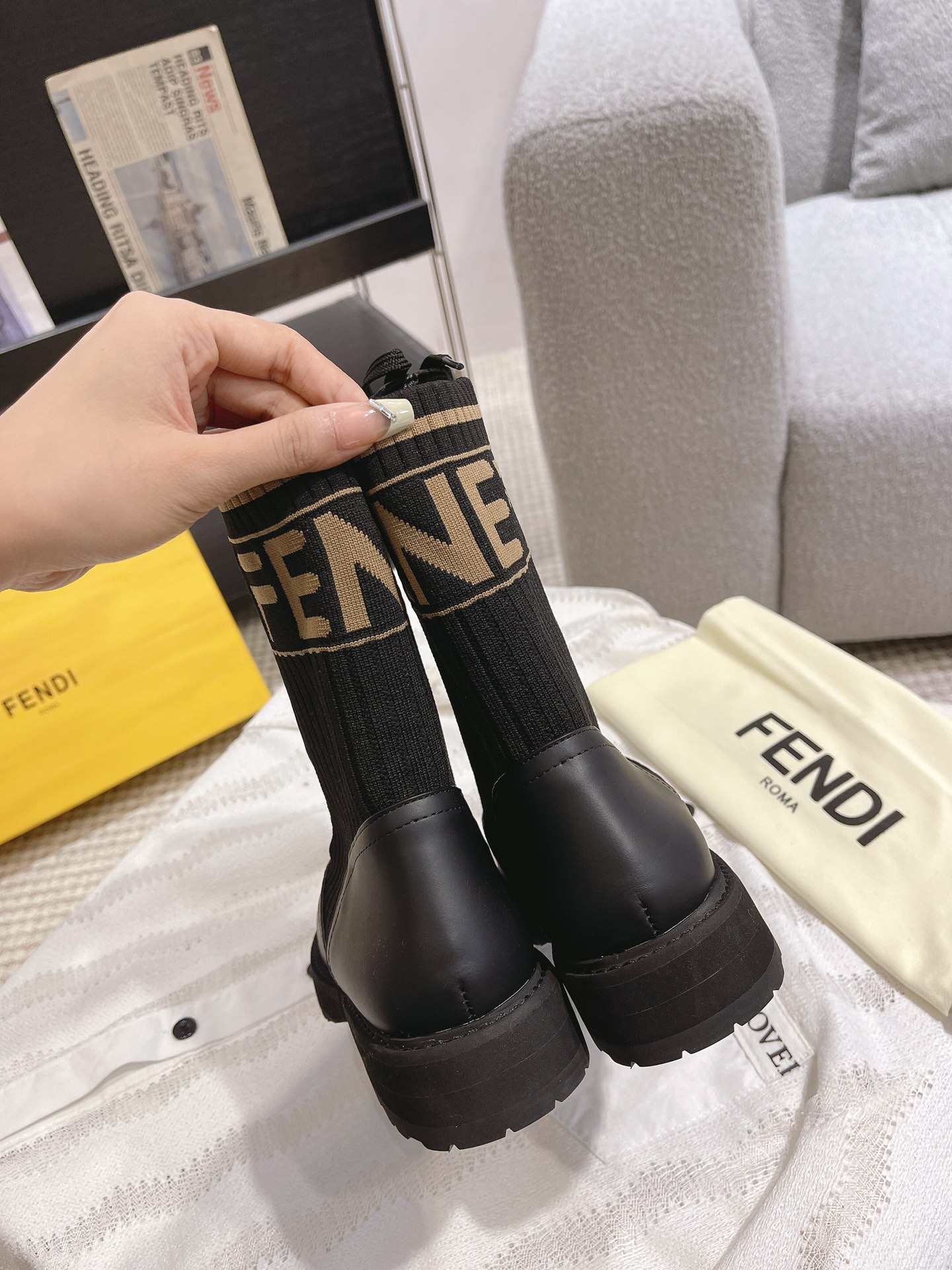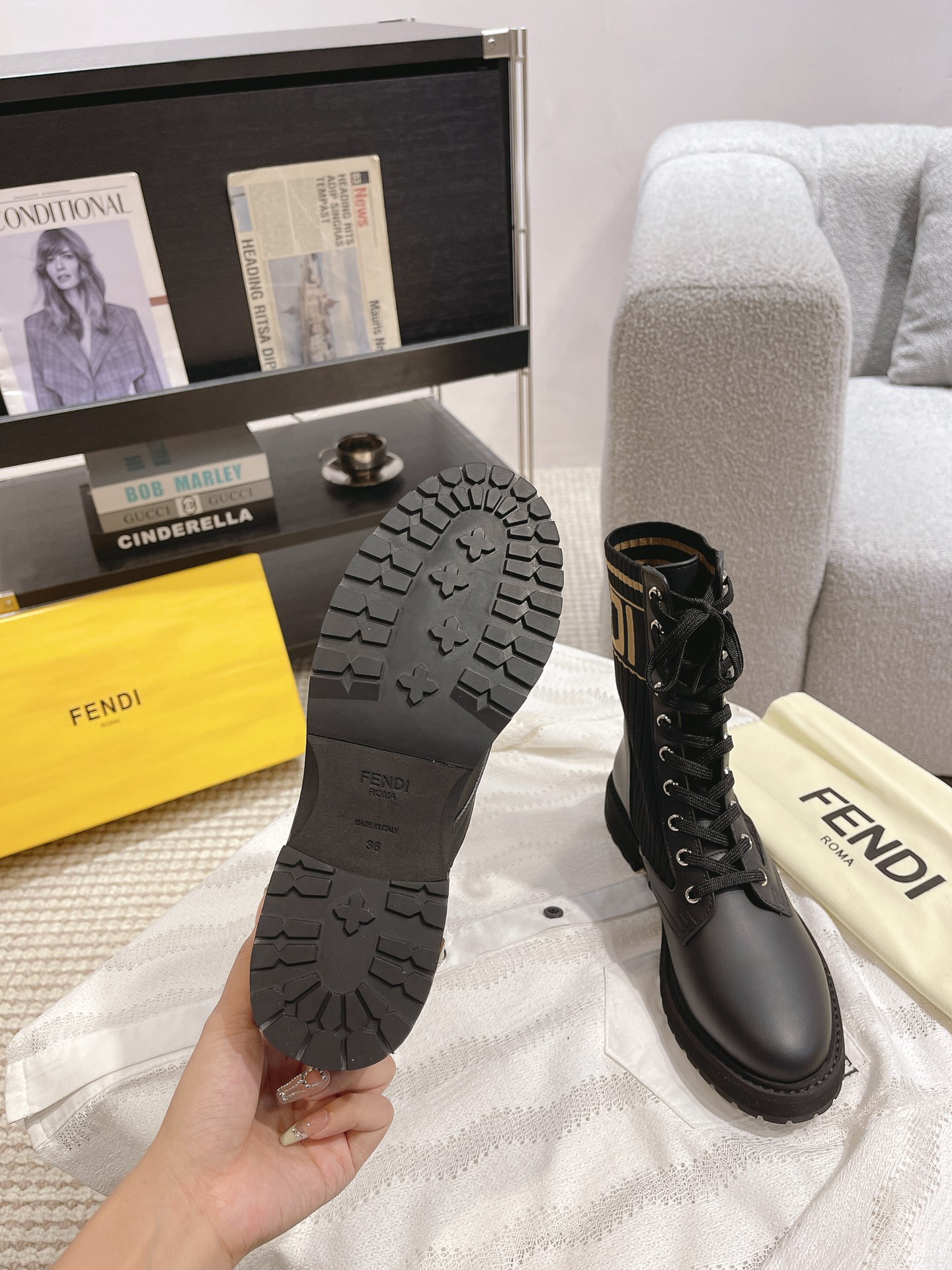 這款鞋子是AAAAA 1:1 質量(非常棒). 使用了和原版一模一樣的材料. 商標部分也保持了和芬迪/Fendi一樣. 圖片拍攝是實物鞋子拍攝, 您所收到的實物保證和我們圖片一模一樣.
