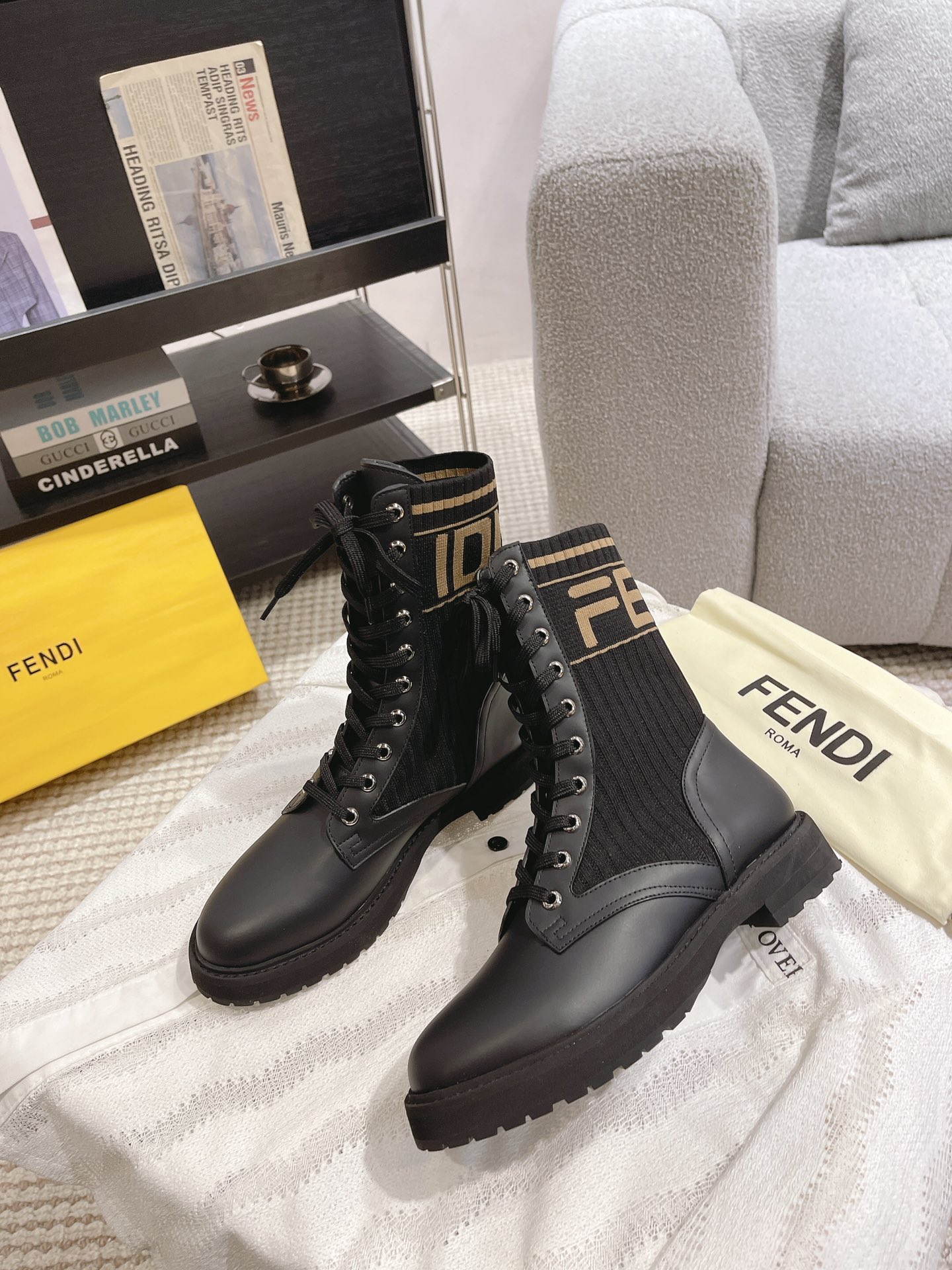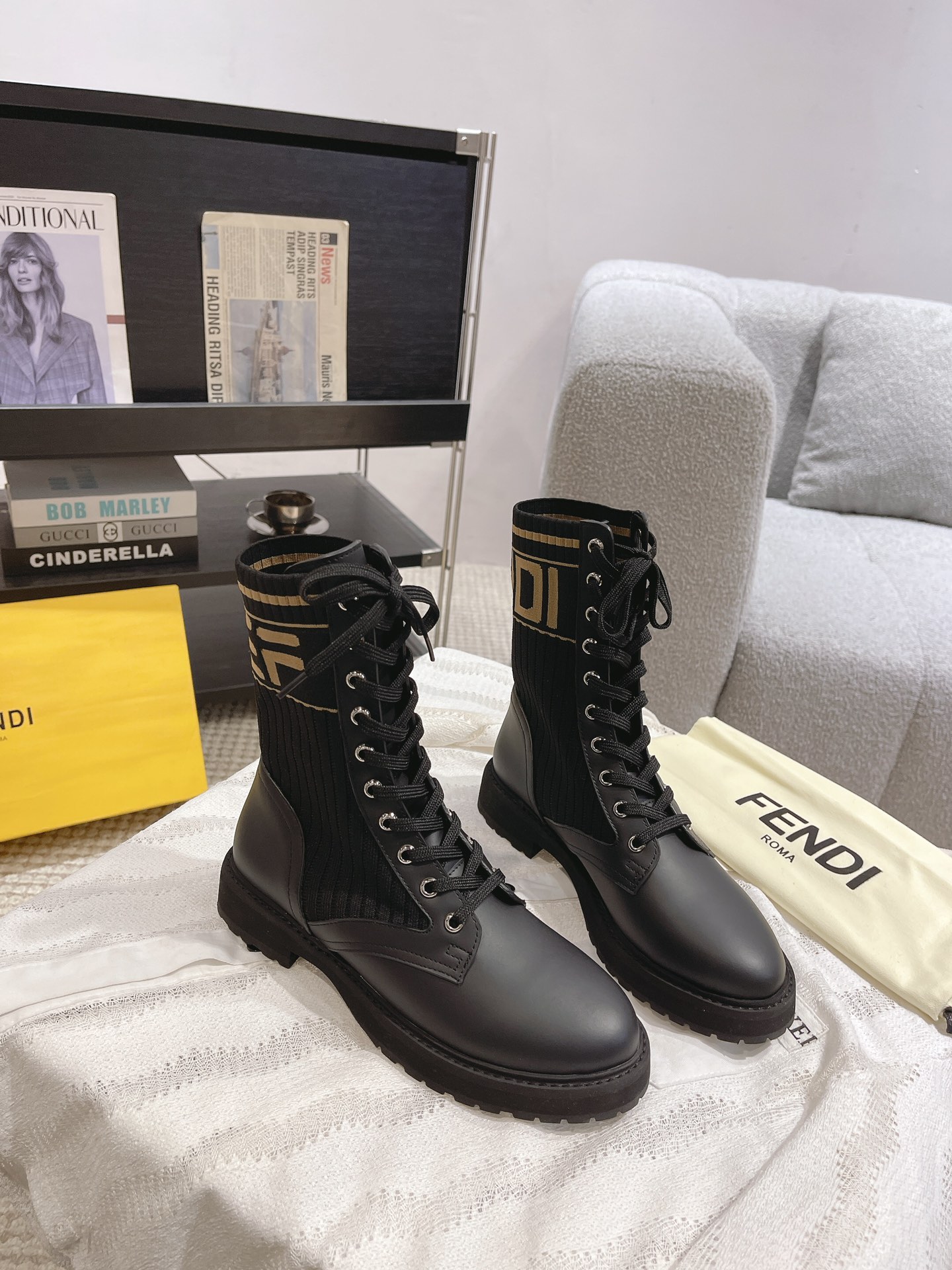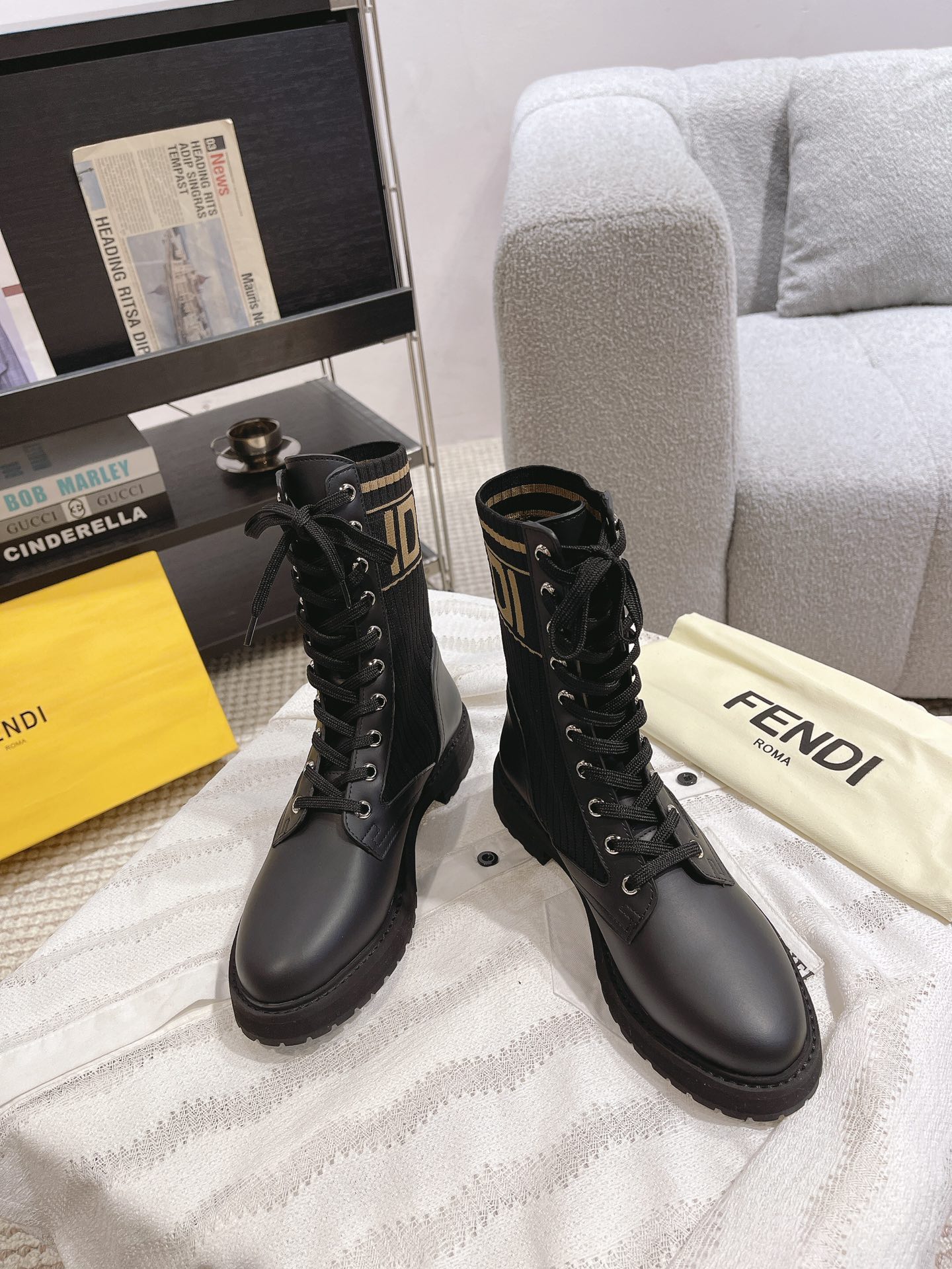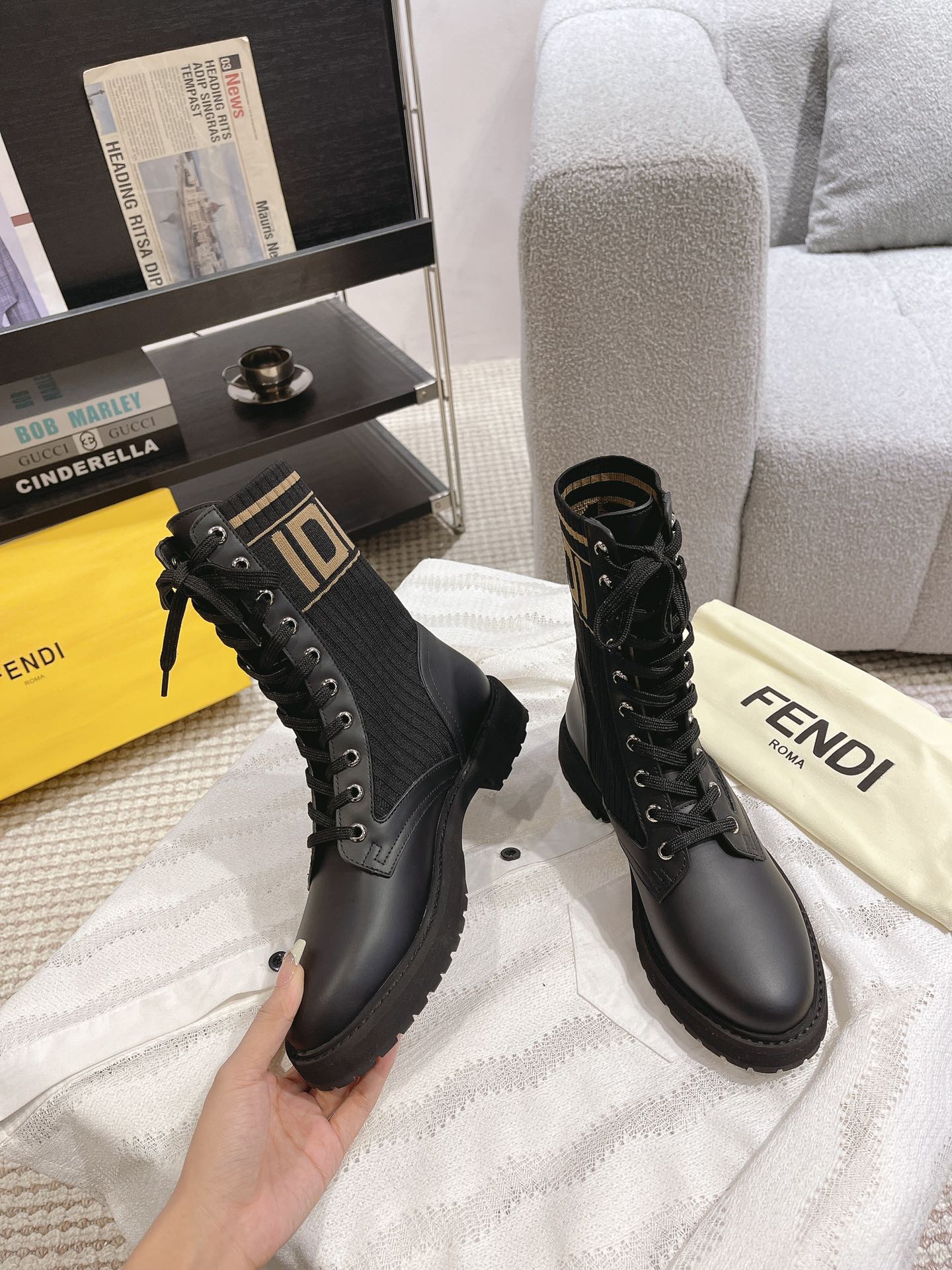 這款鞋子是AAAAA 1:1 質量(非常棒). 使用了和原版一模一樣的材料. 商標部分也保持了和芬迪/Fendi一樣. 圖片拍攝是實物鞋子拍攝, 您所收到的實物保證和我們圖片一模一樣.
