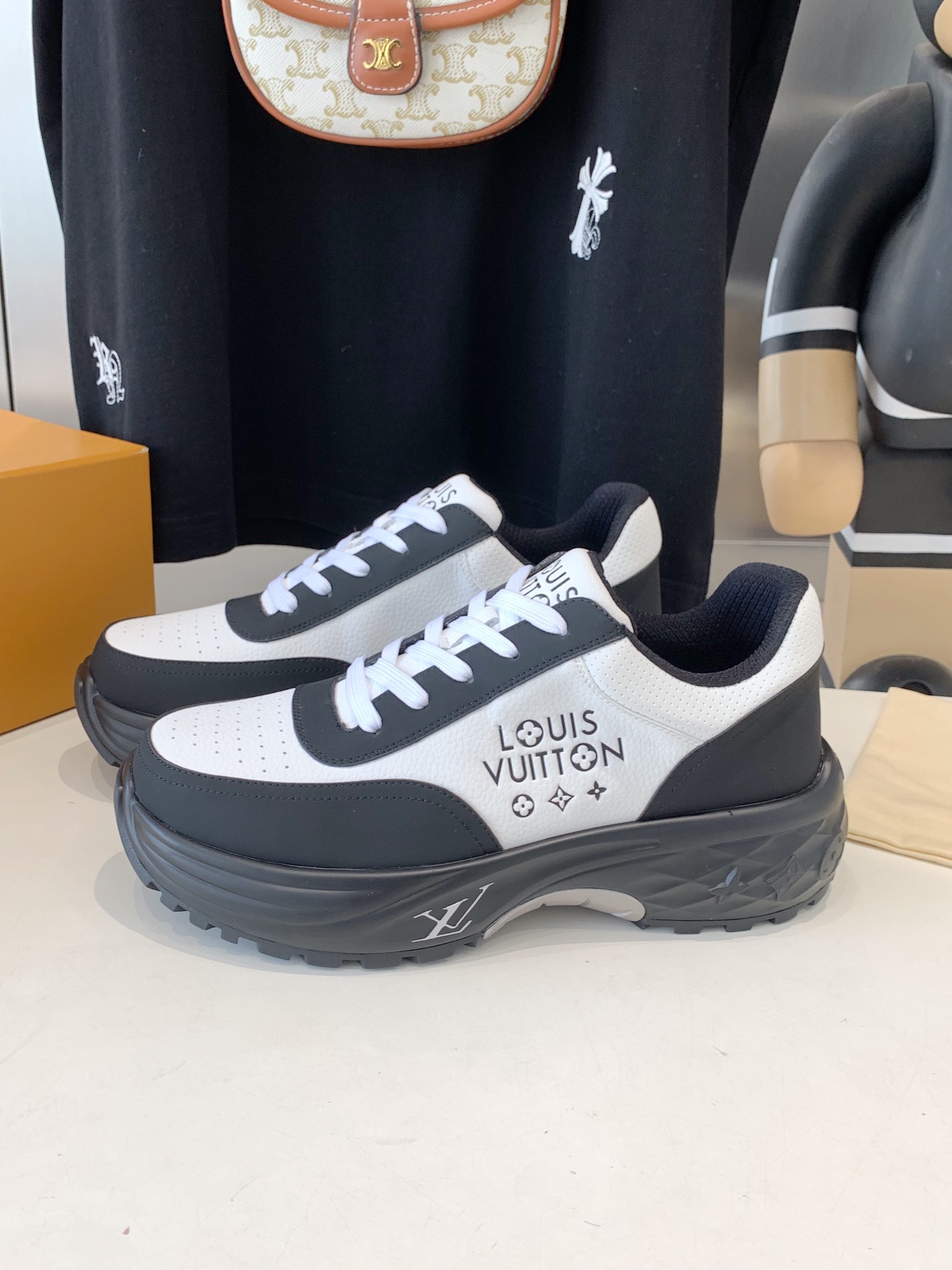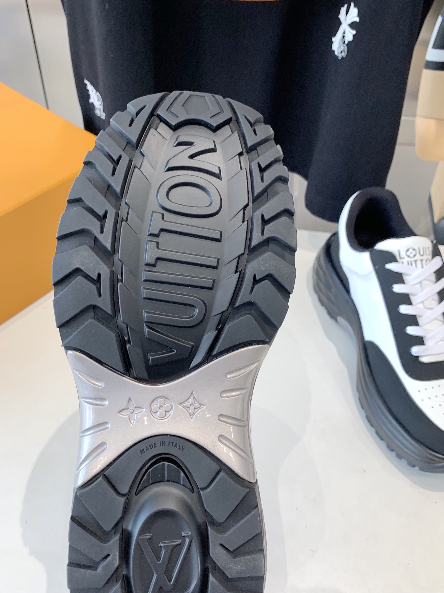 這款鞋子是AAAAA 1:1 質量(非常棒). 使用了和原版一模一樣的材料. 商標部分也保持了和路易威登/Louis Vuitton一樣. 圖片拍攝是實物鞋子拍攝, 您所收到的實物保證和我們圖片一模一樣.