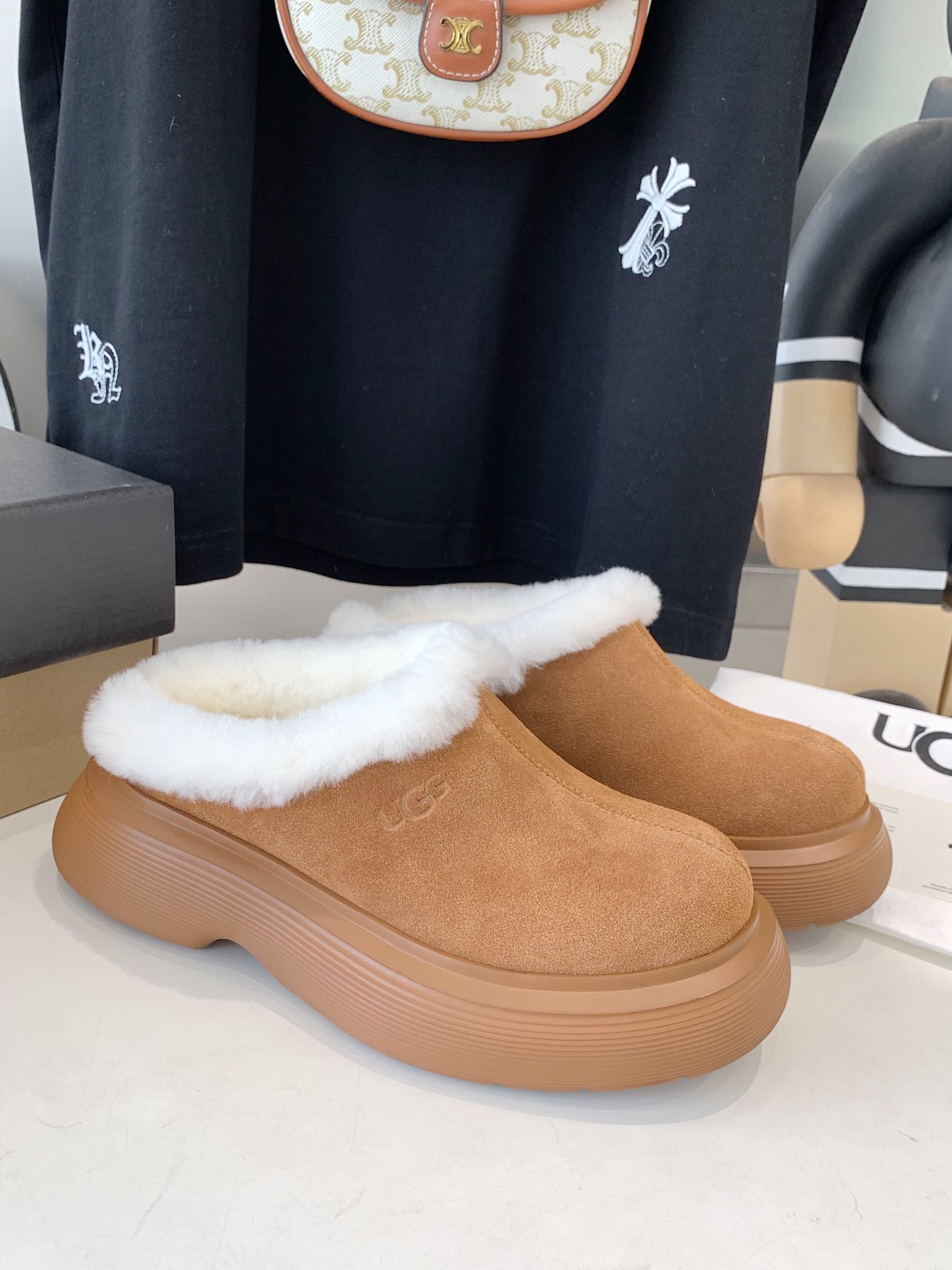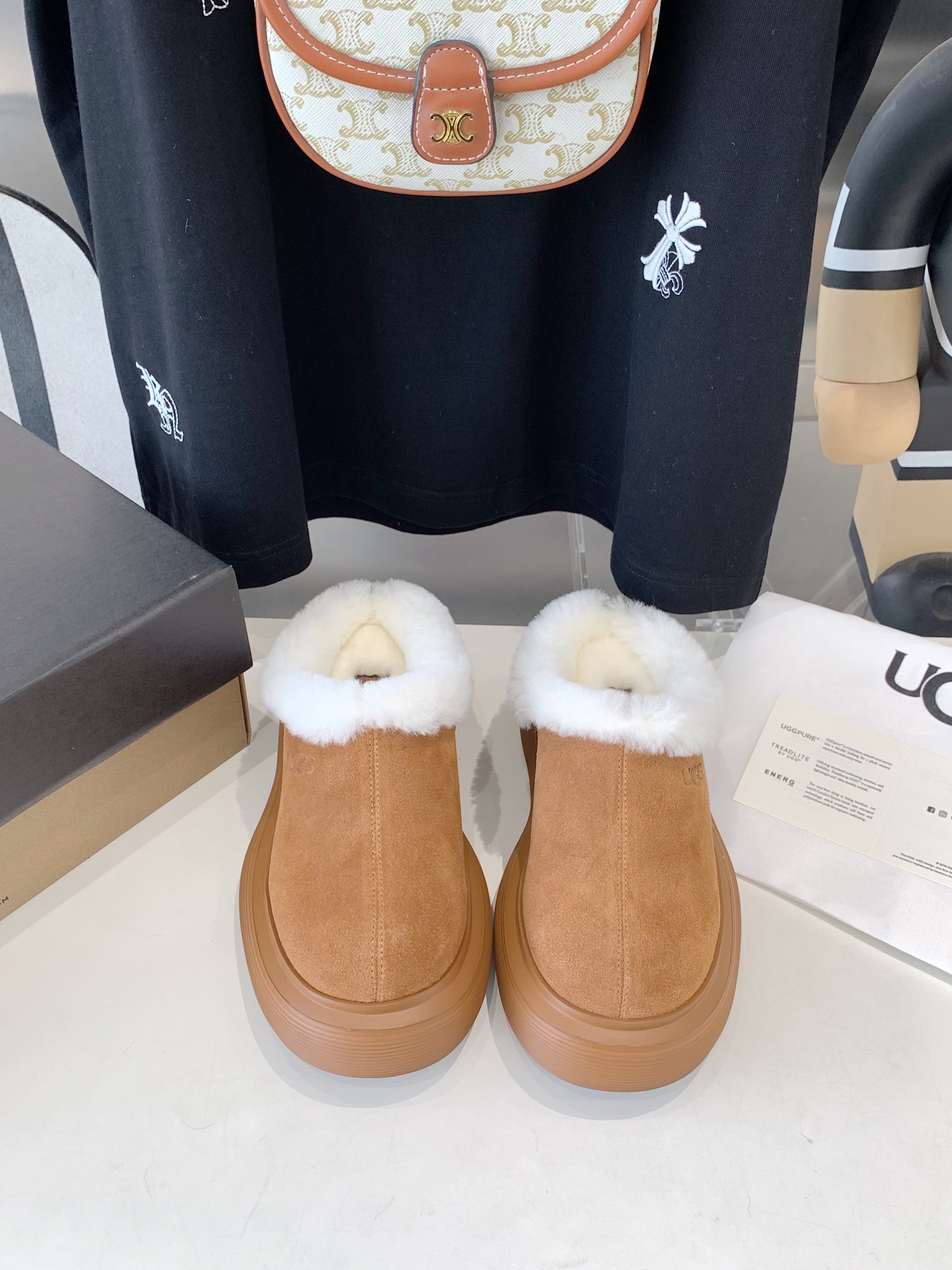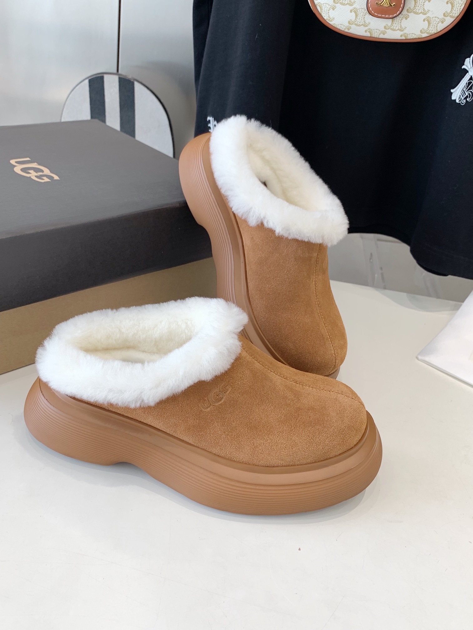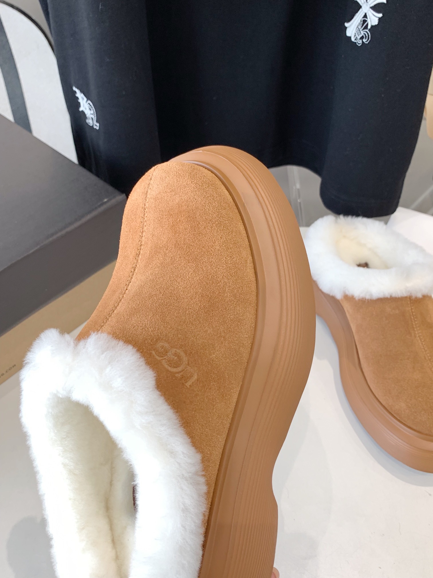 這款鞋子是AAAAA 1:1 質量(非常棒). 使用了和原版一模一樣的材料. 商標部分也保持了和UGG一樣. 圖片拍攝是實物鞋子拍攝, 您所收到的實物保證和我們圖片一模一樣.