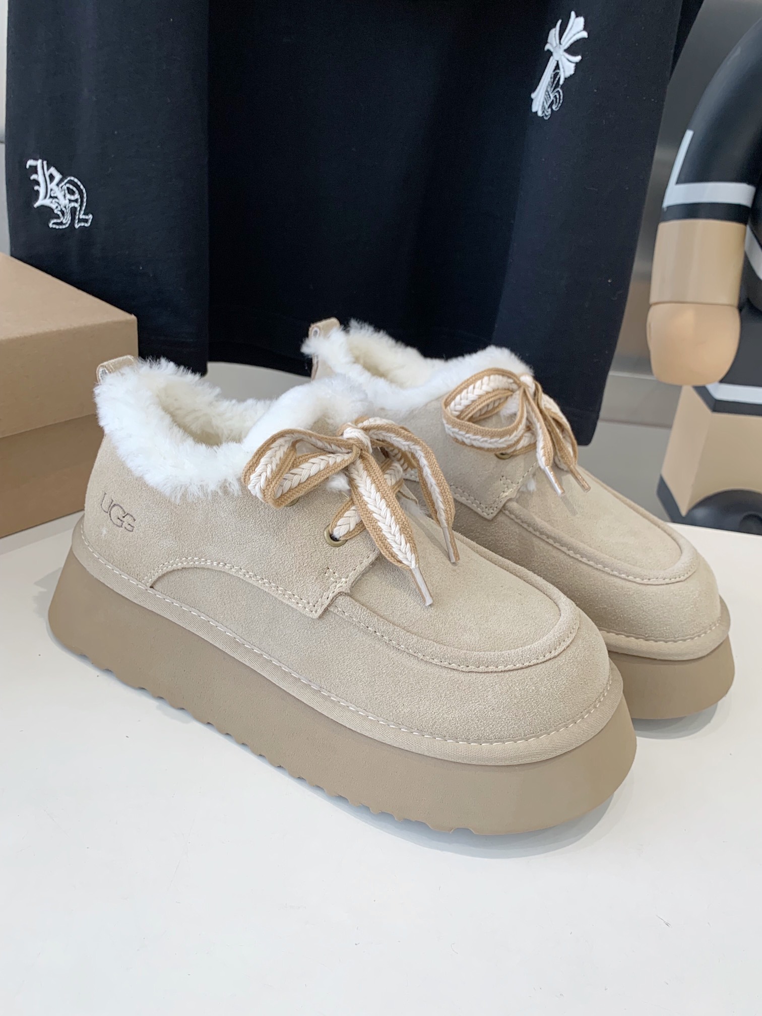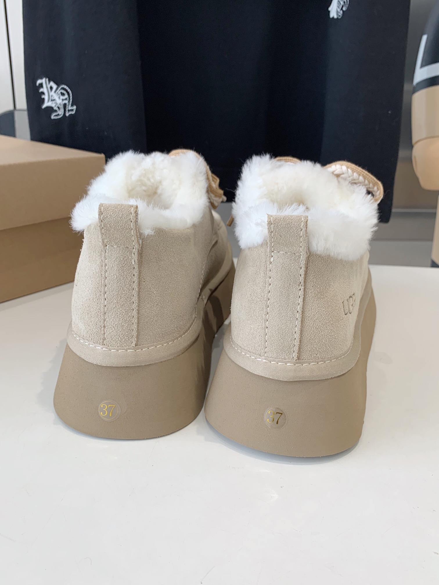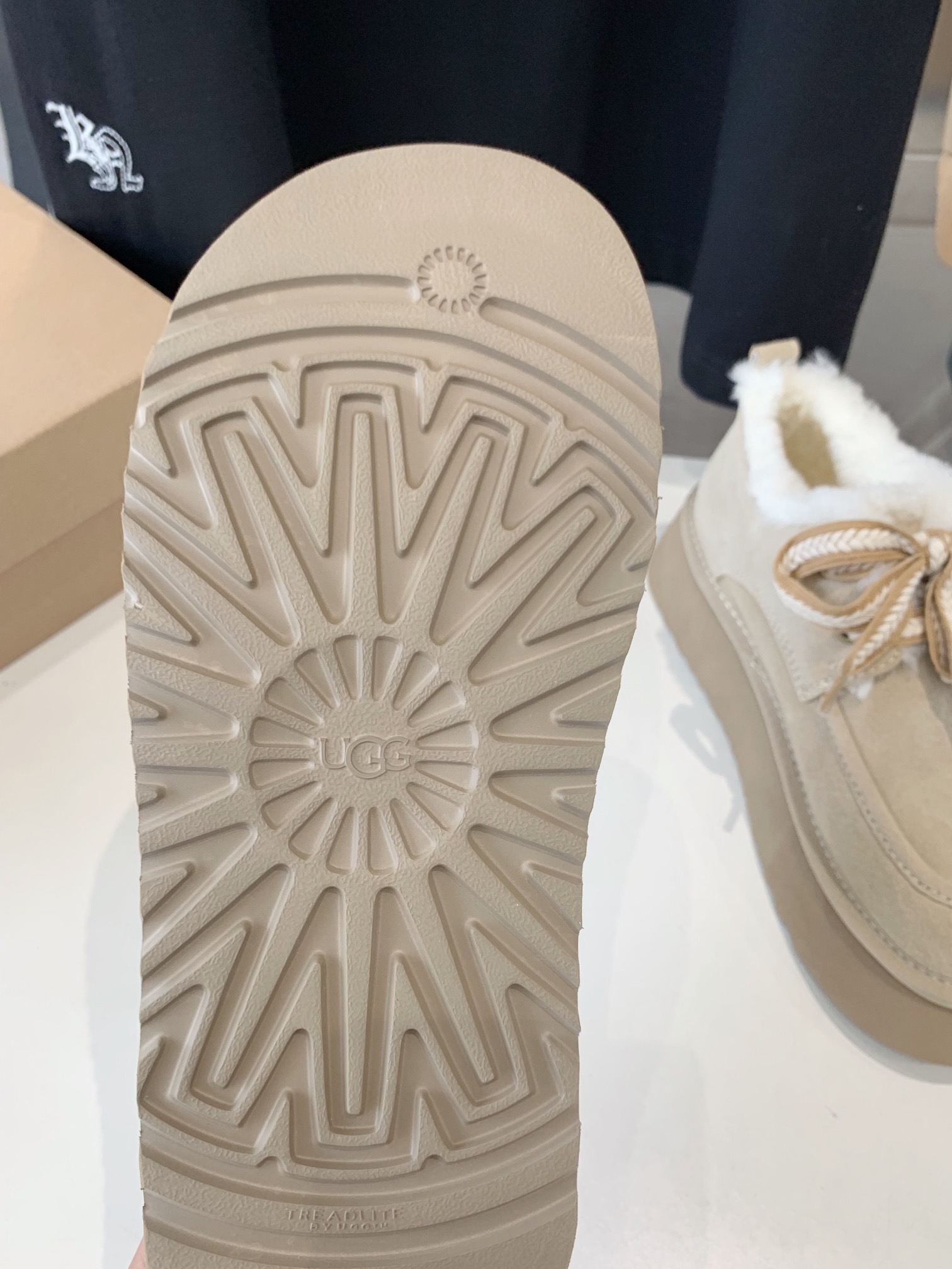 這款鞋子是AAAAA 1:1 質量(非常棒). 使用了和原版一模一樣的材料. 商標部分也保持了和UGG一樣. 圖片拍攝是實物鞋子拍攝, 您所收到的實物保證和我們圖片一模一樣.