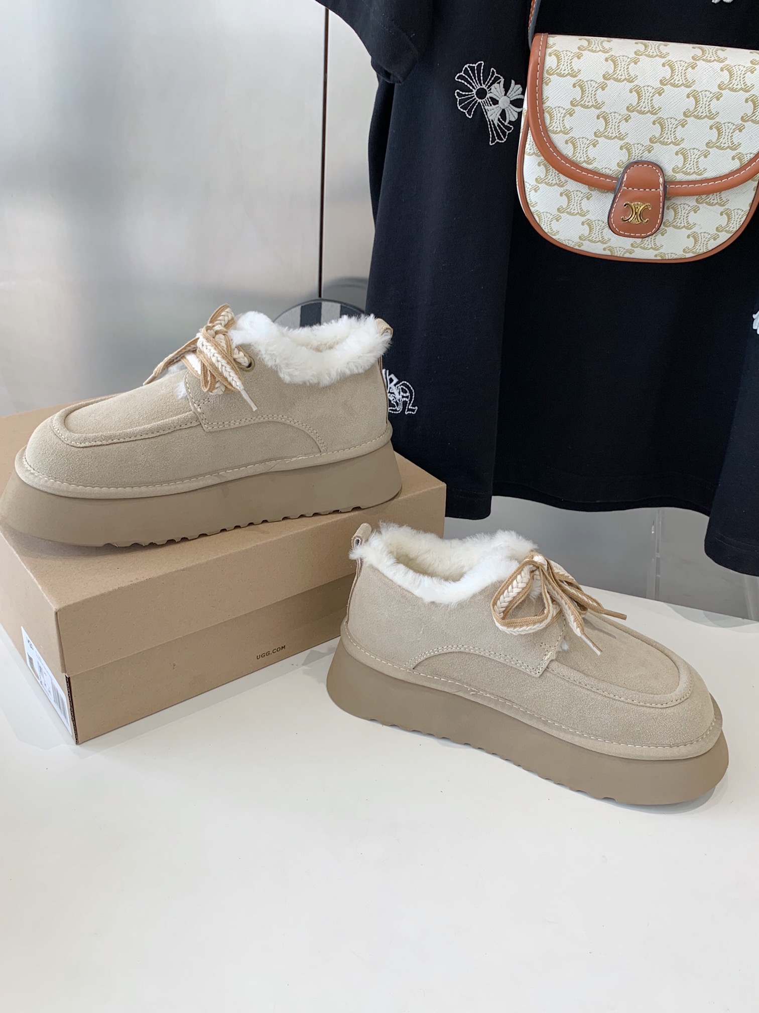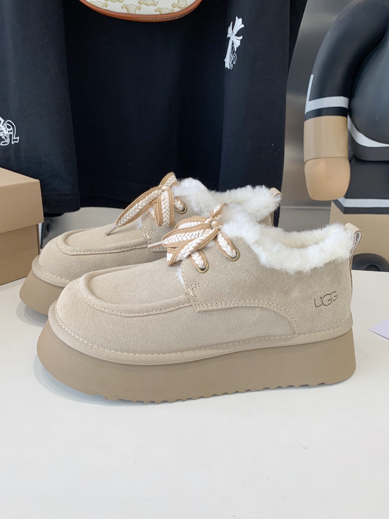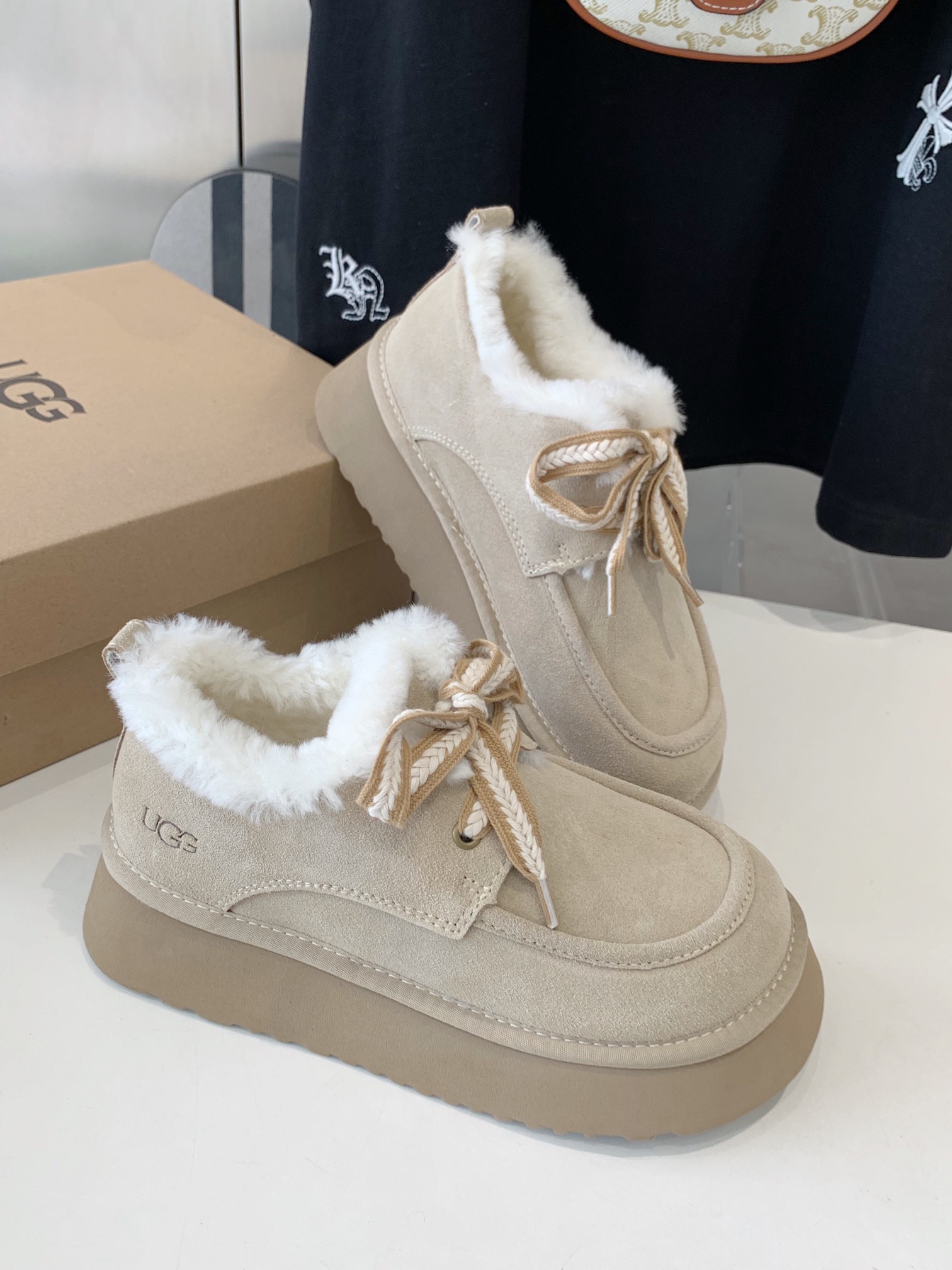 這款鞋子是AAAAA 1:1 質量(非常棒). 使用了和原版一模一樣的材料. 商標部分也保持了和UGG一樣. 圖片拍攝是實物鞋子拍攝, 您所收到的實物保證和我們圖片一模一樣.