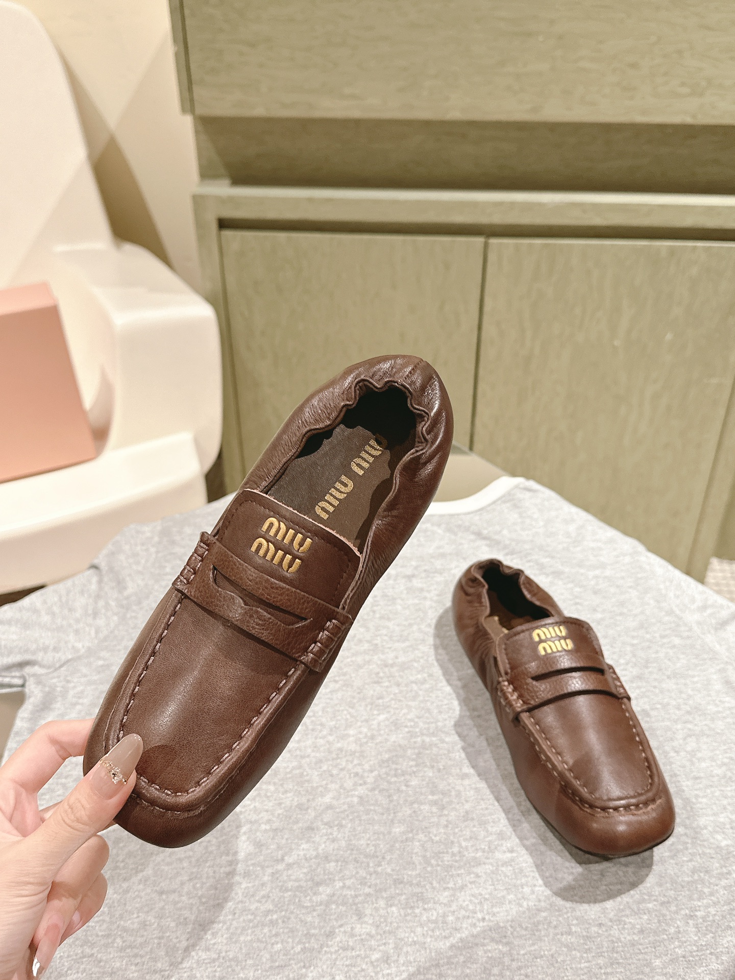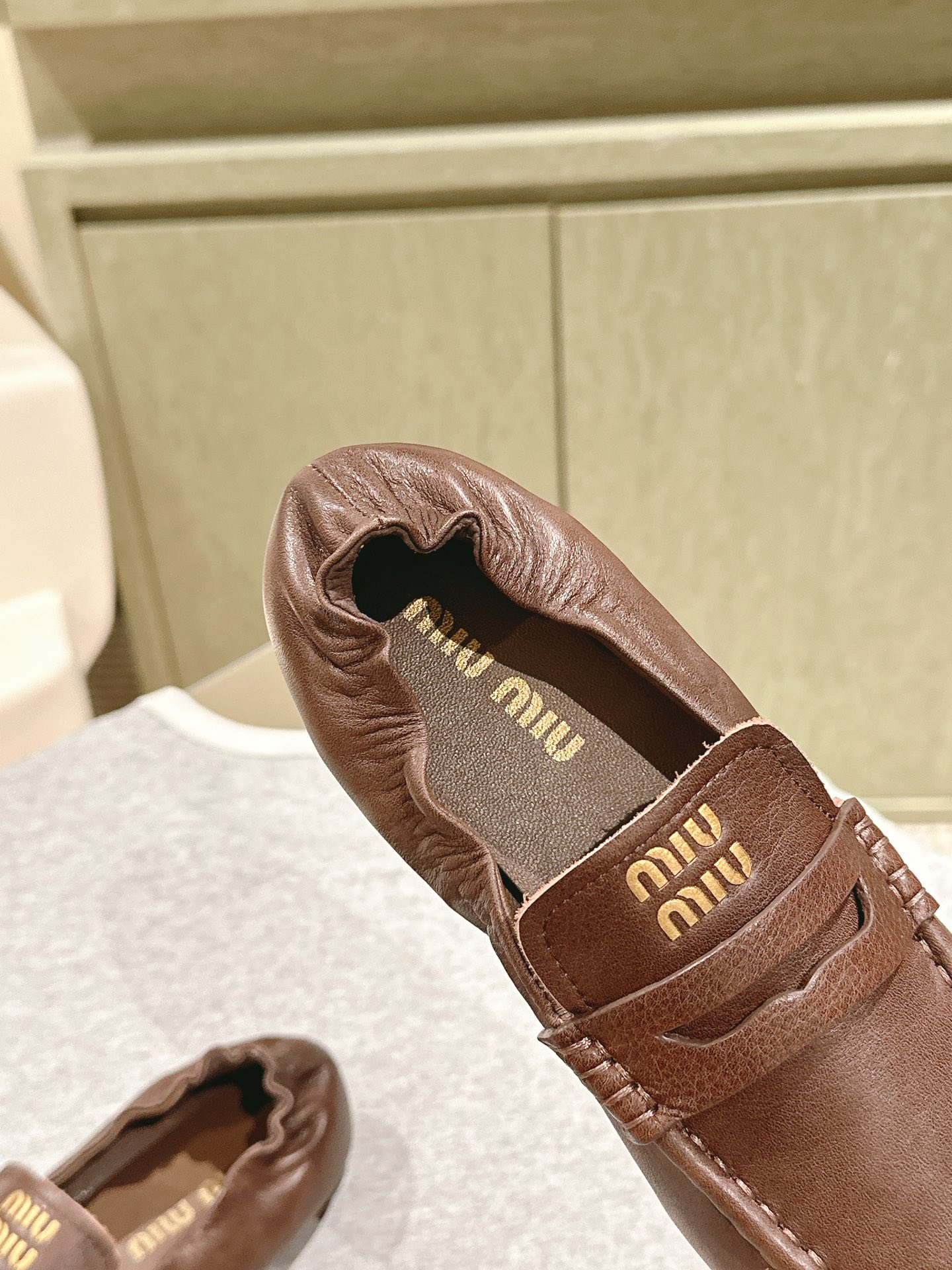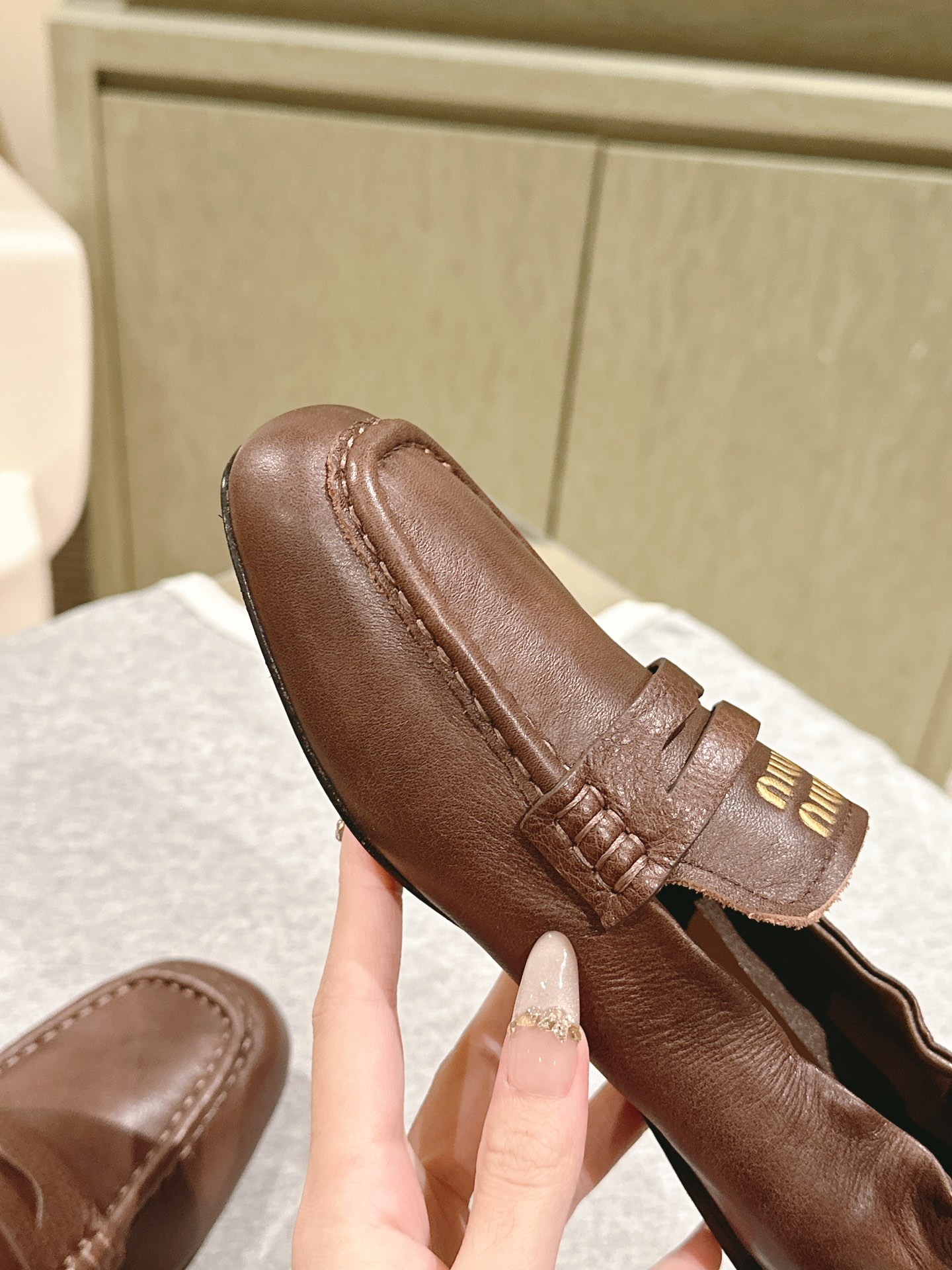 這款鞋子是AAAAA 1:1 質量(非常棒). 使用了和原版一模一樣的材料. 商標部分也保持了和繆繆/Miu Miu一樣. 圖片拍攝是實物鞋子拍攝, 您所收到的實物保證和我們圖片一模一樣.