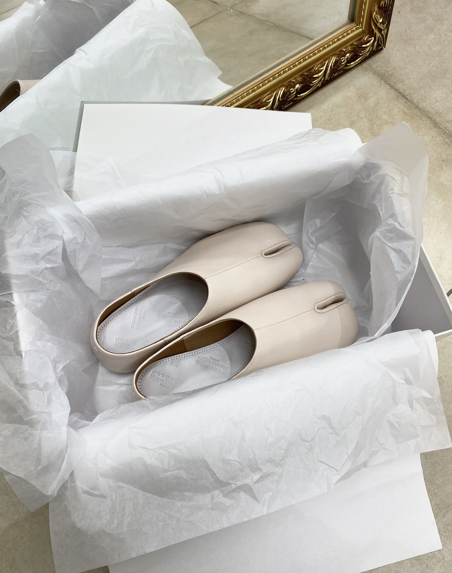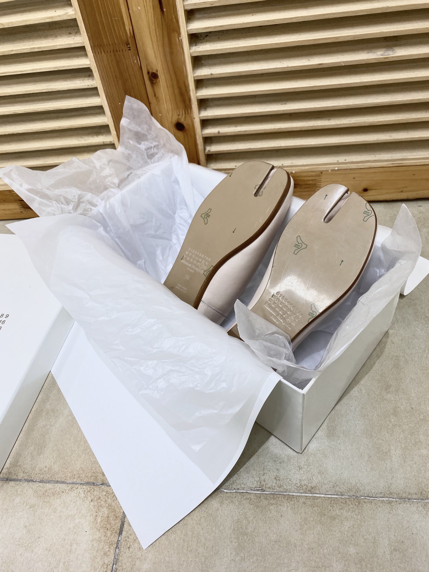 這款鞋子是AAAAA 1:1 質量(非常棒). 使用了和原版一模一樣的材料. 商標部分也保持了和Maison Margiela一樣. 圖片拍攝是實物鞋子拍攝, 您所收到的實物保證和我們圖片一模一樣.