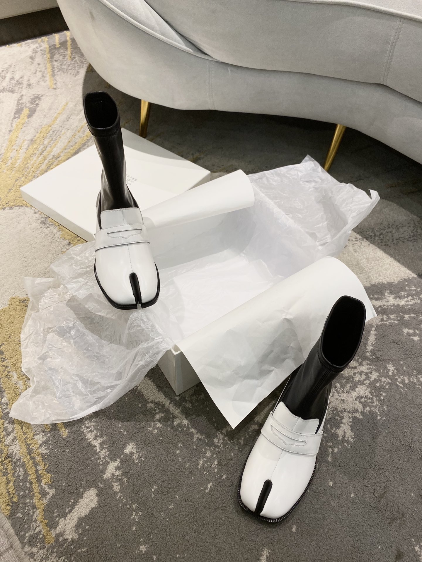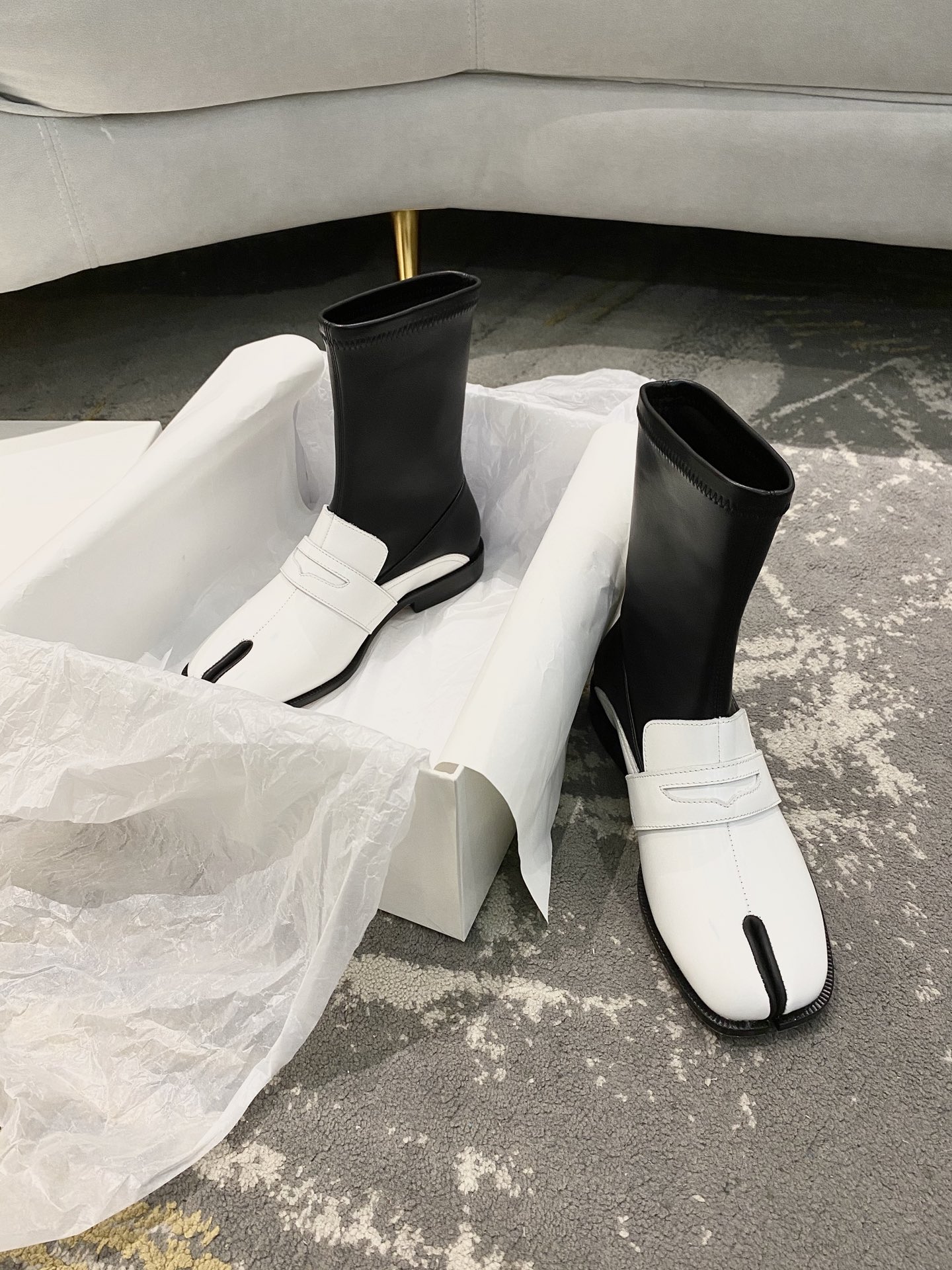 這款鞋子是AAAAA 1:1 質量(非常棒). 使用了和原版一模一樣的材料. 商標部分也保持了和Maison Margiela一樣. 圖片拍攝是實物鞋子拍攝, 您所收到的實物保證和我們圖片一模一樣.