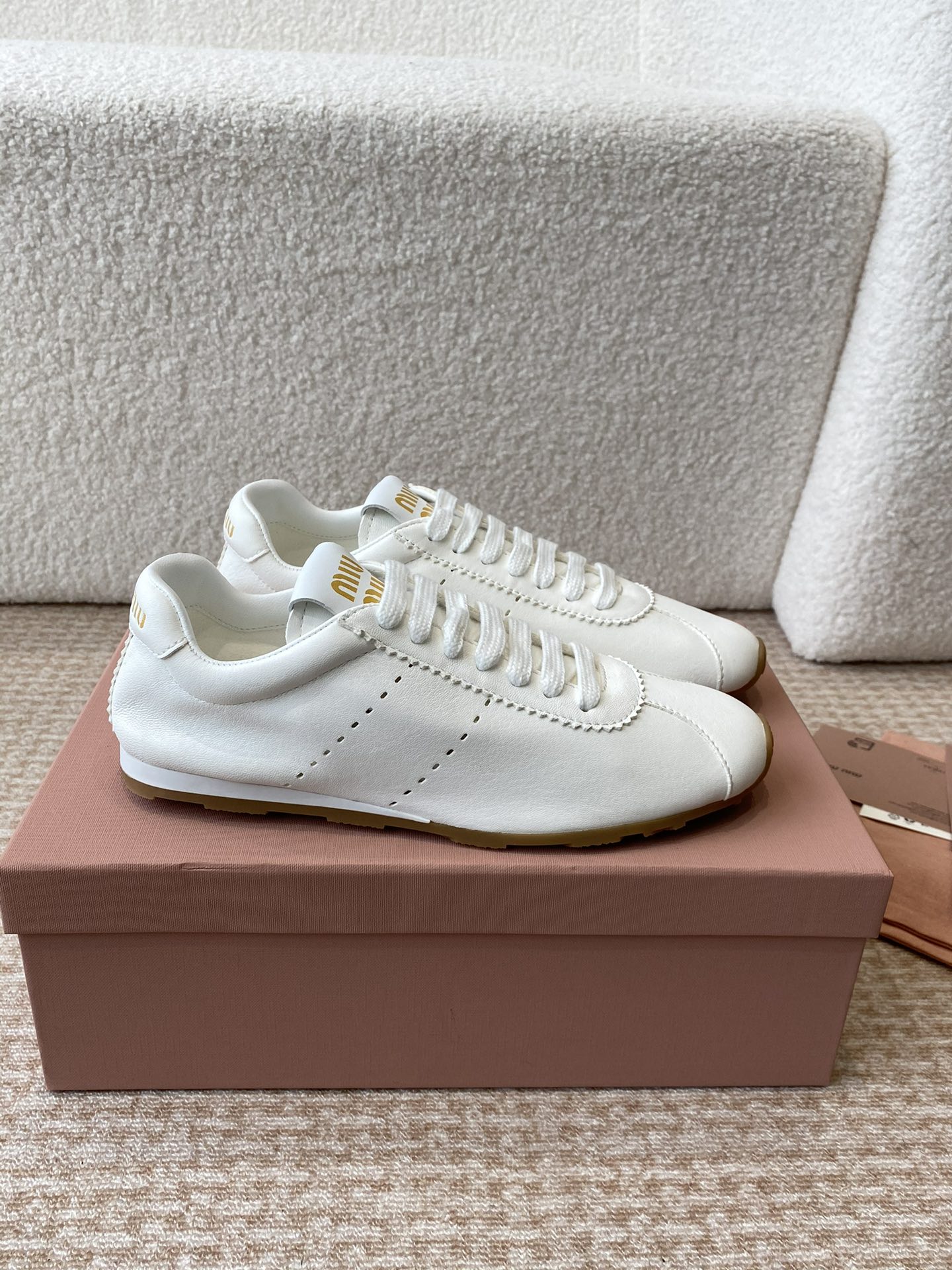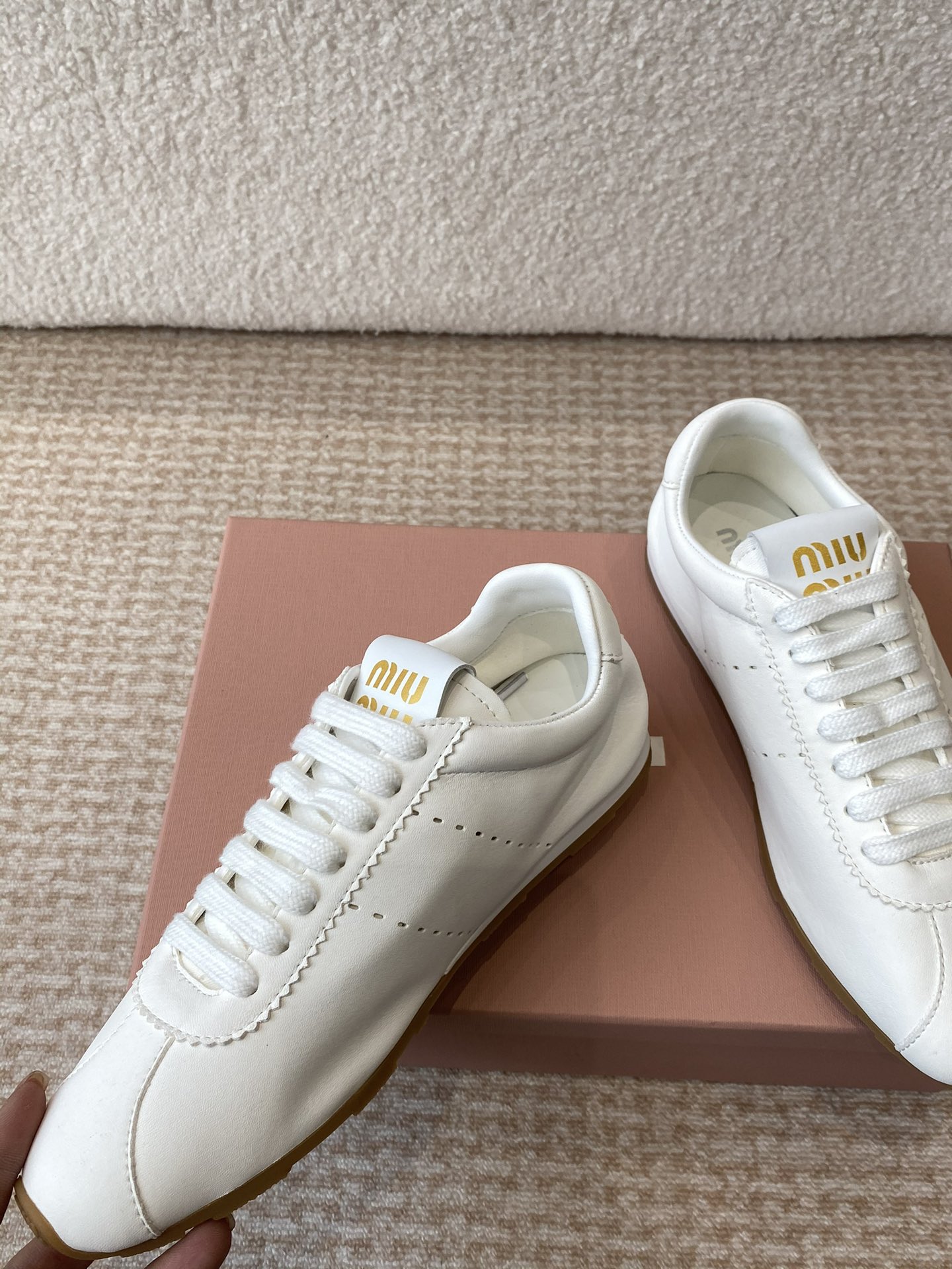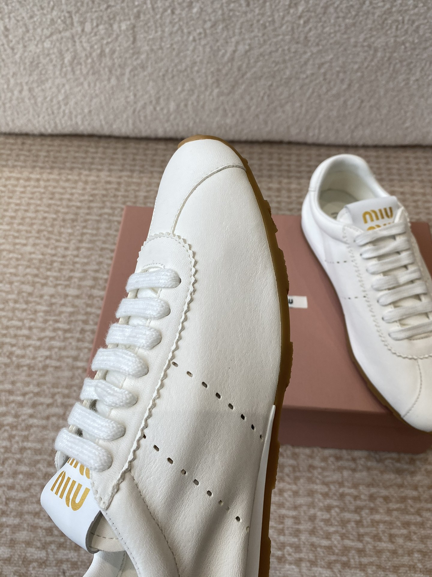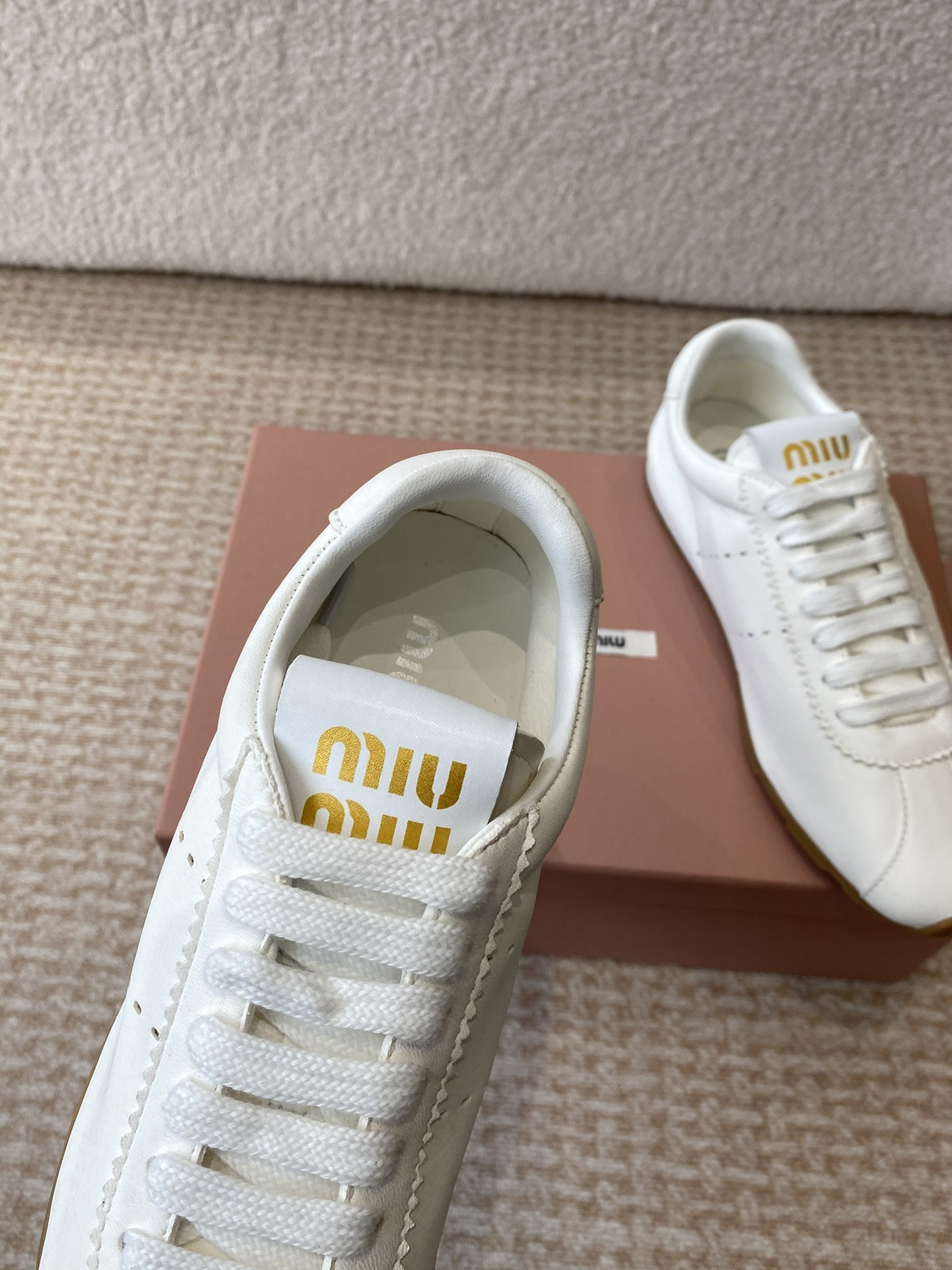 這款鞋子是AAAAA 1:1 質量(非常棒). 使用了和原版一模一樣的材料. 商標部分也保持了和繆繆/Miu Miu一樣. 圖片拍攝是實物鞋子拍攝, 您所收到的實物保證和我們圖片一模一樣.