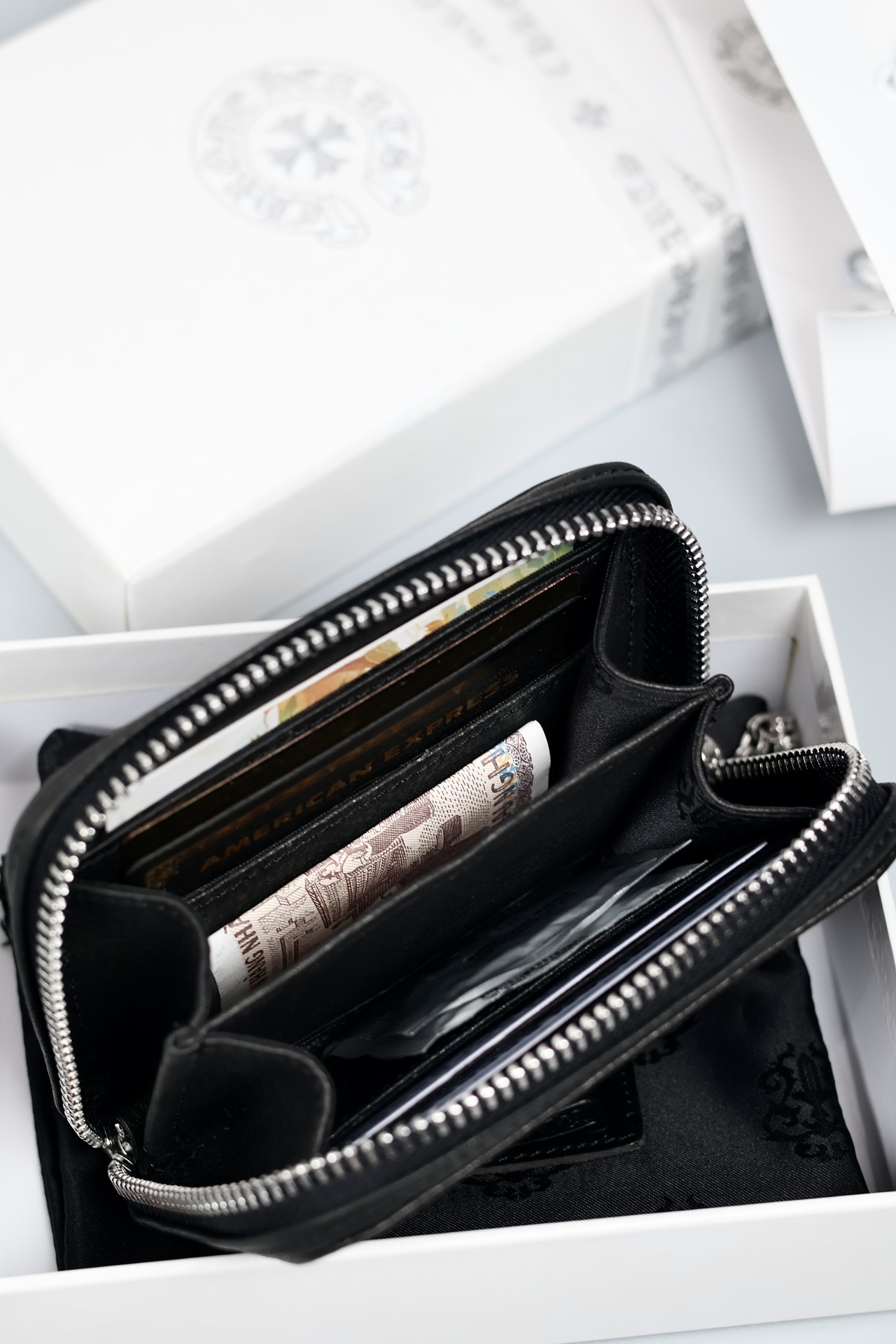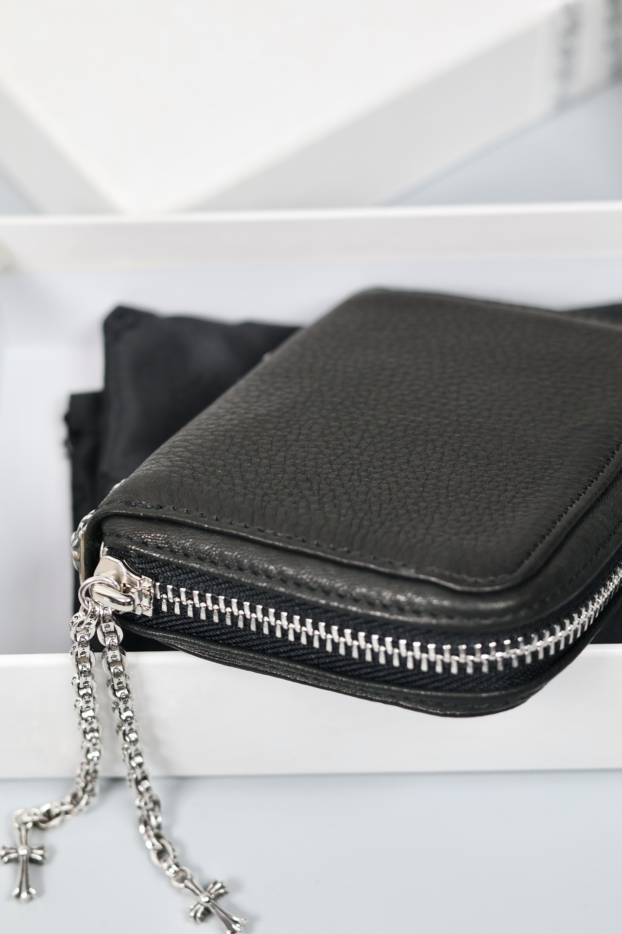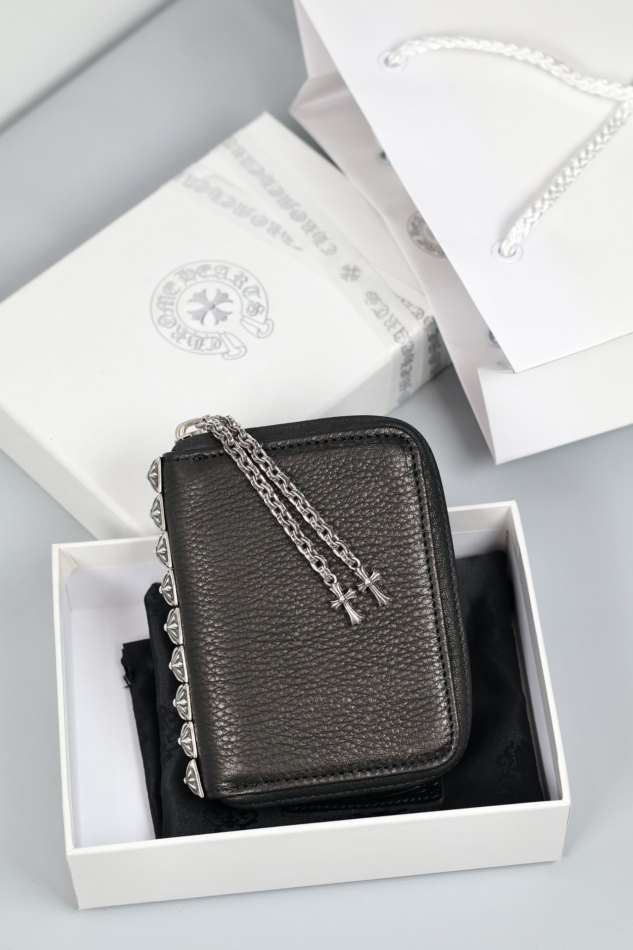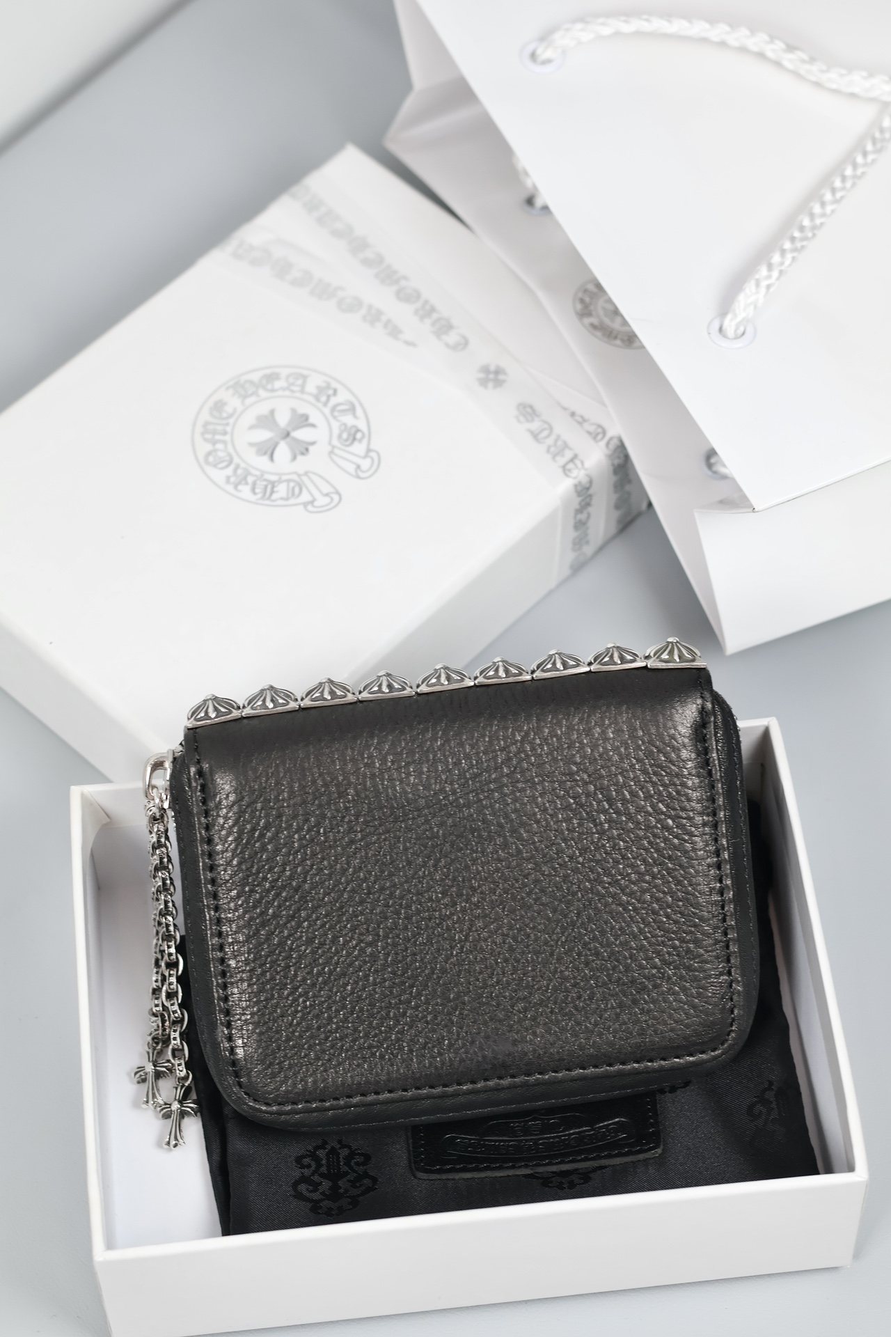 這款包包是AAAAA 1:1 質量(非常棒). 使用了和原版一模一樣的材料. 商標部分也保持了和鉻心/Chrome Hearts一樣. 圖片拍攝是實物包包拍攝, 您所收到的實物保證和我們圖片一模一樣.
