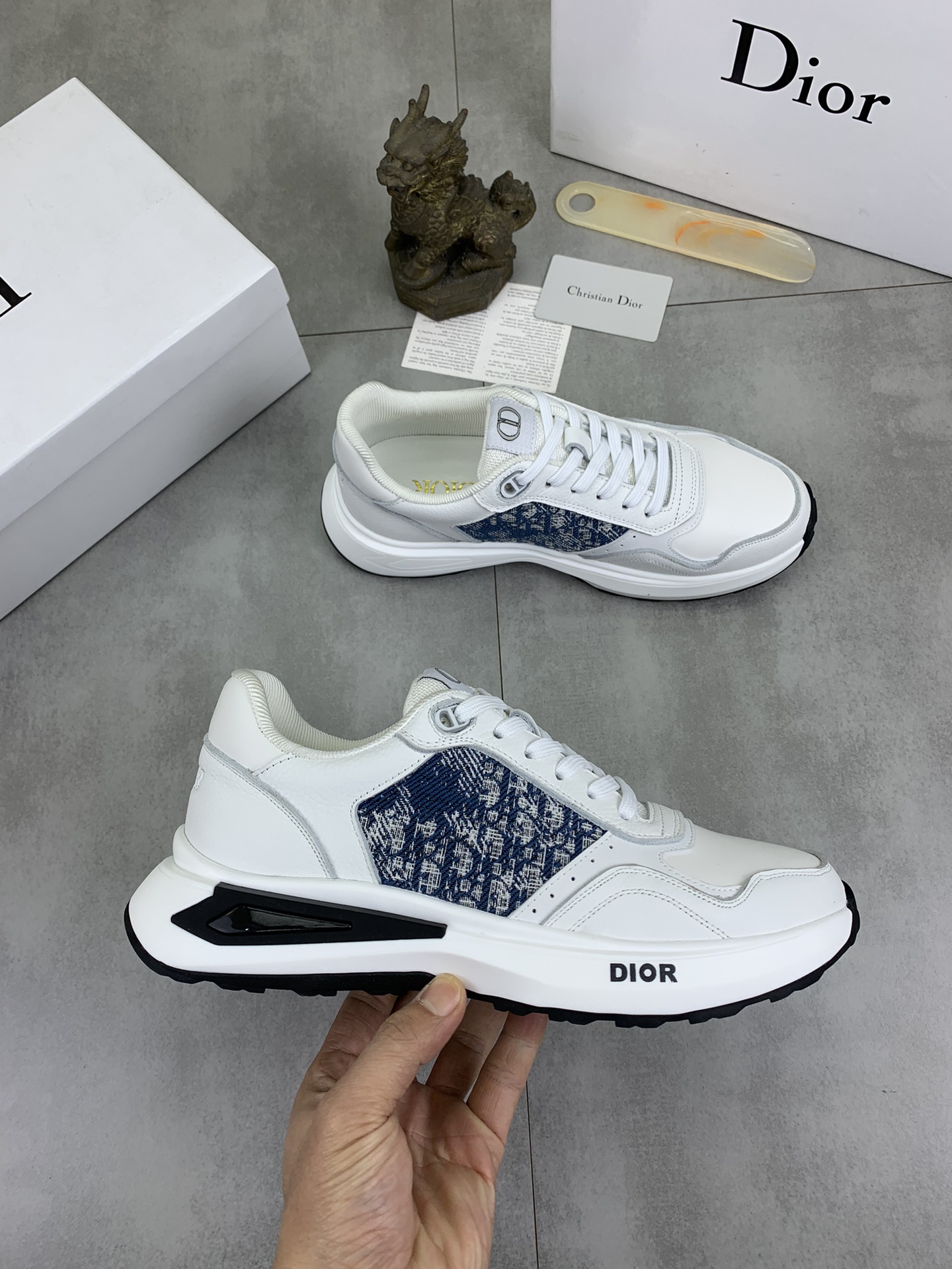 這款鞋子是AAAAA 1:1 質量(非常棒). 使用了和原版一模一樣的材料. 商標部分也保持了和迪奧/Dior一樣. 圖片拍攝是實物鞋子拍攝, 您所收到的實物保證和我們圖片一模一樣.