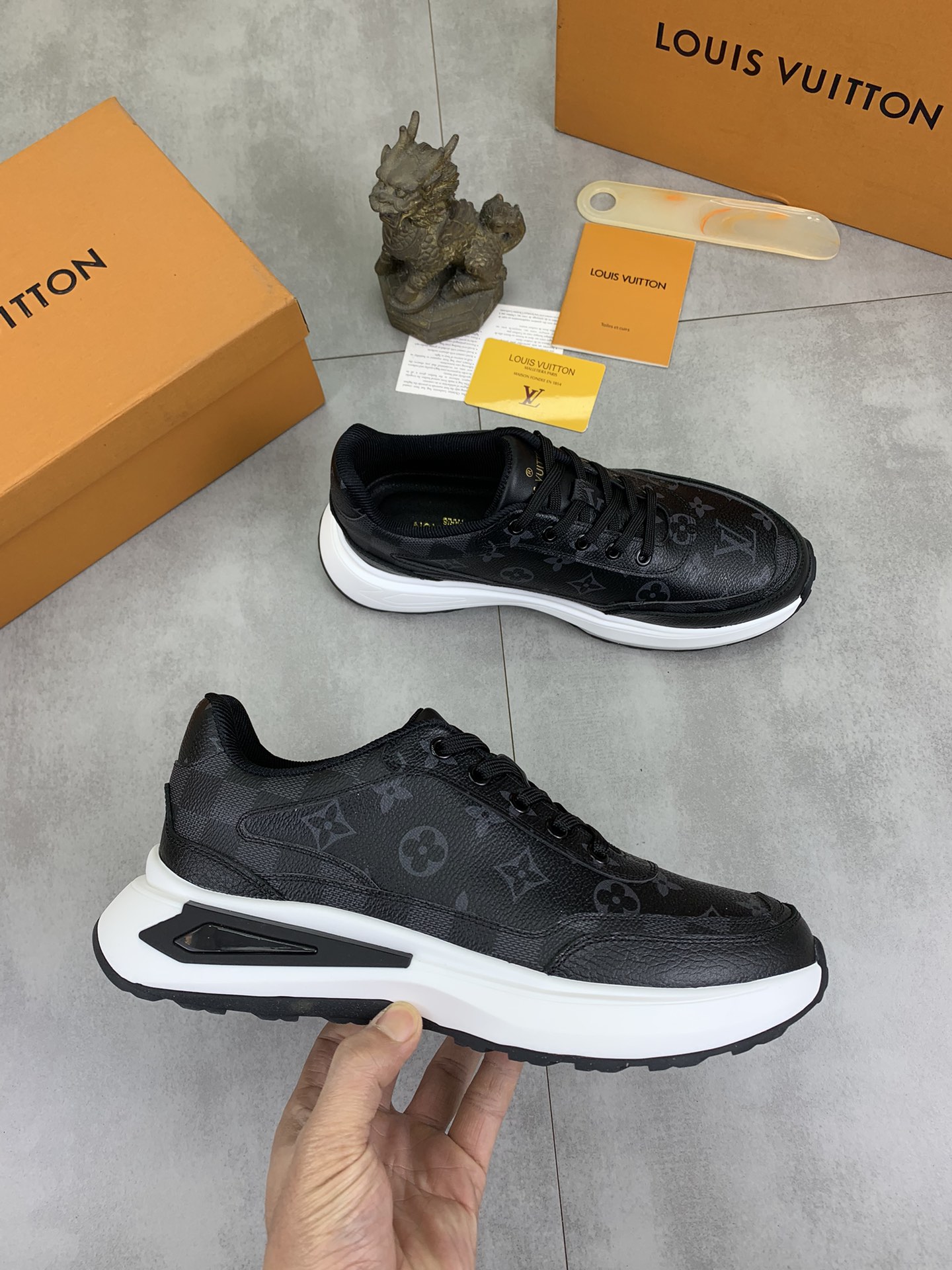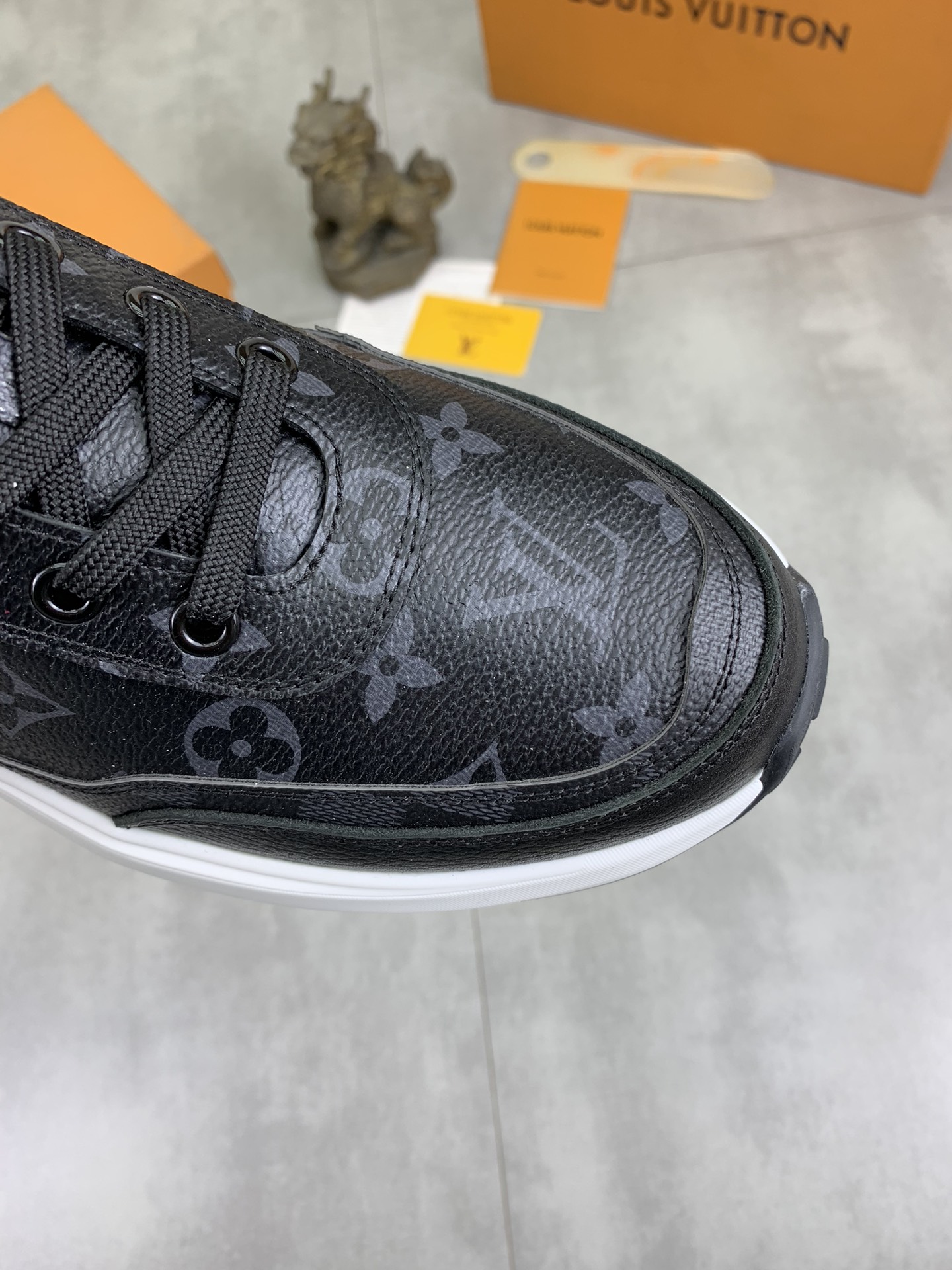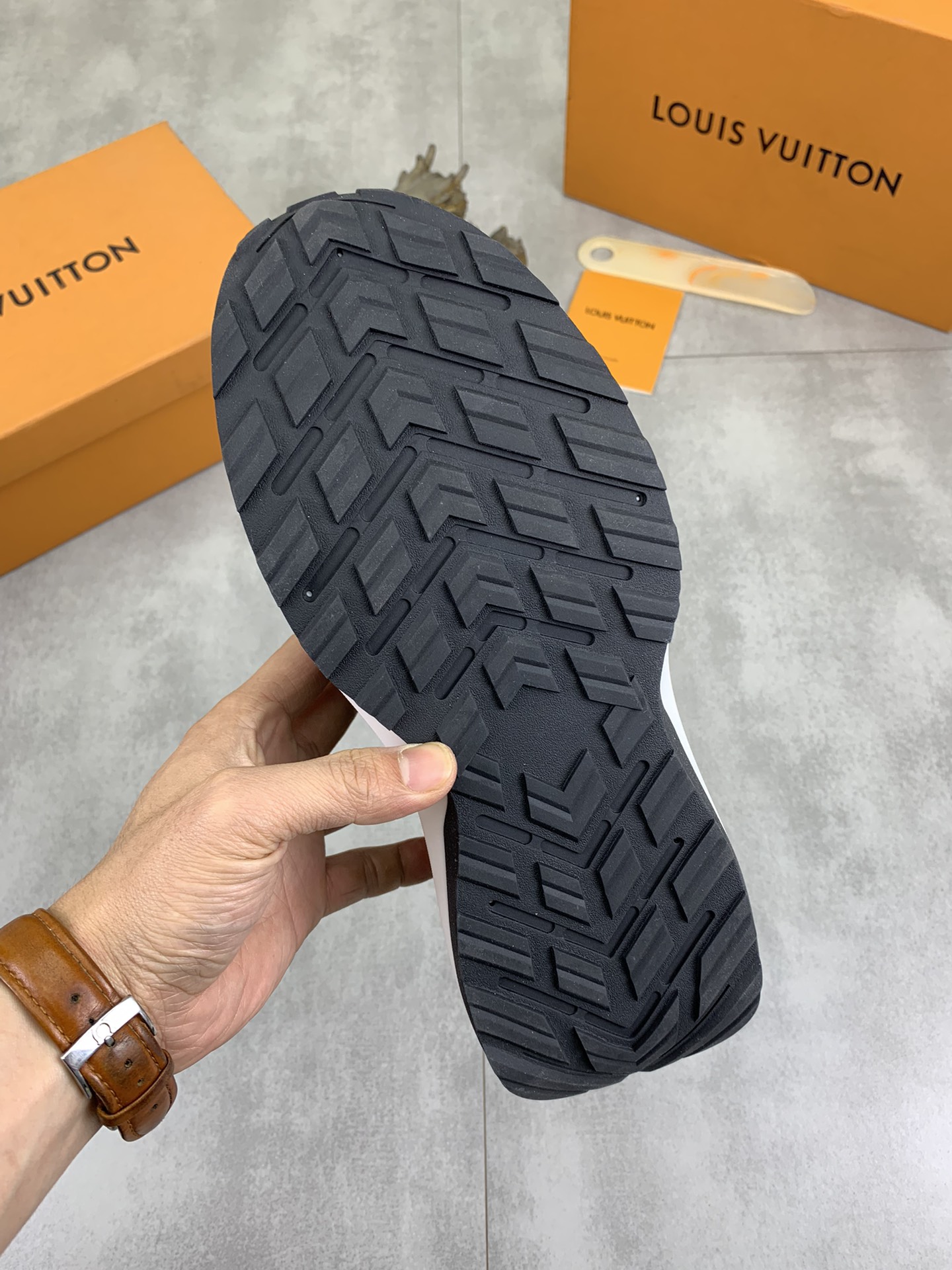 這款鞋子是AAAAA 1:1 質量(非常棒). 使用了和原版一模一樣的材料. 商標部分也保持了和路易威登/Louis Vuitton一樣. 圖片拍攝是實物鞋子拍攝, 您所收到的實物保證和我們圖片一模一樣.