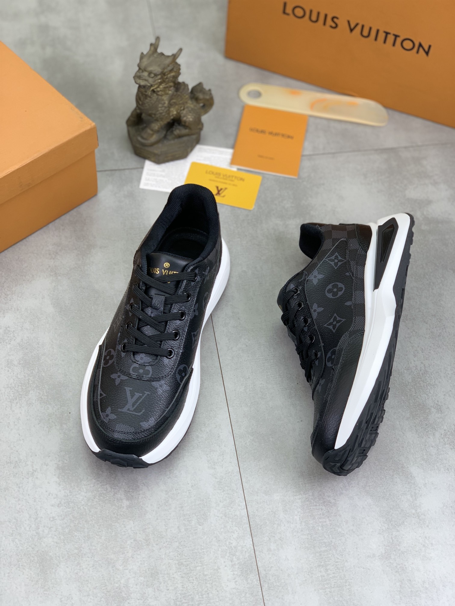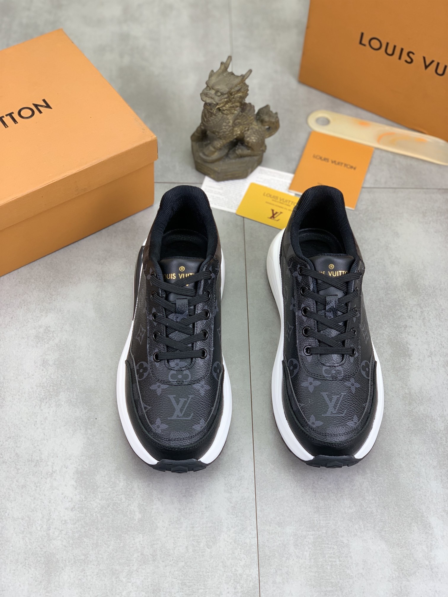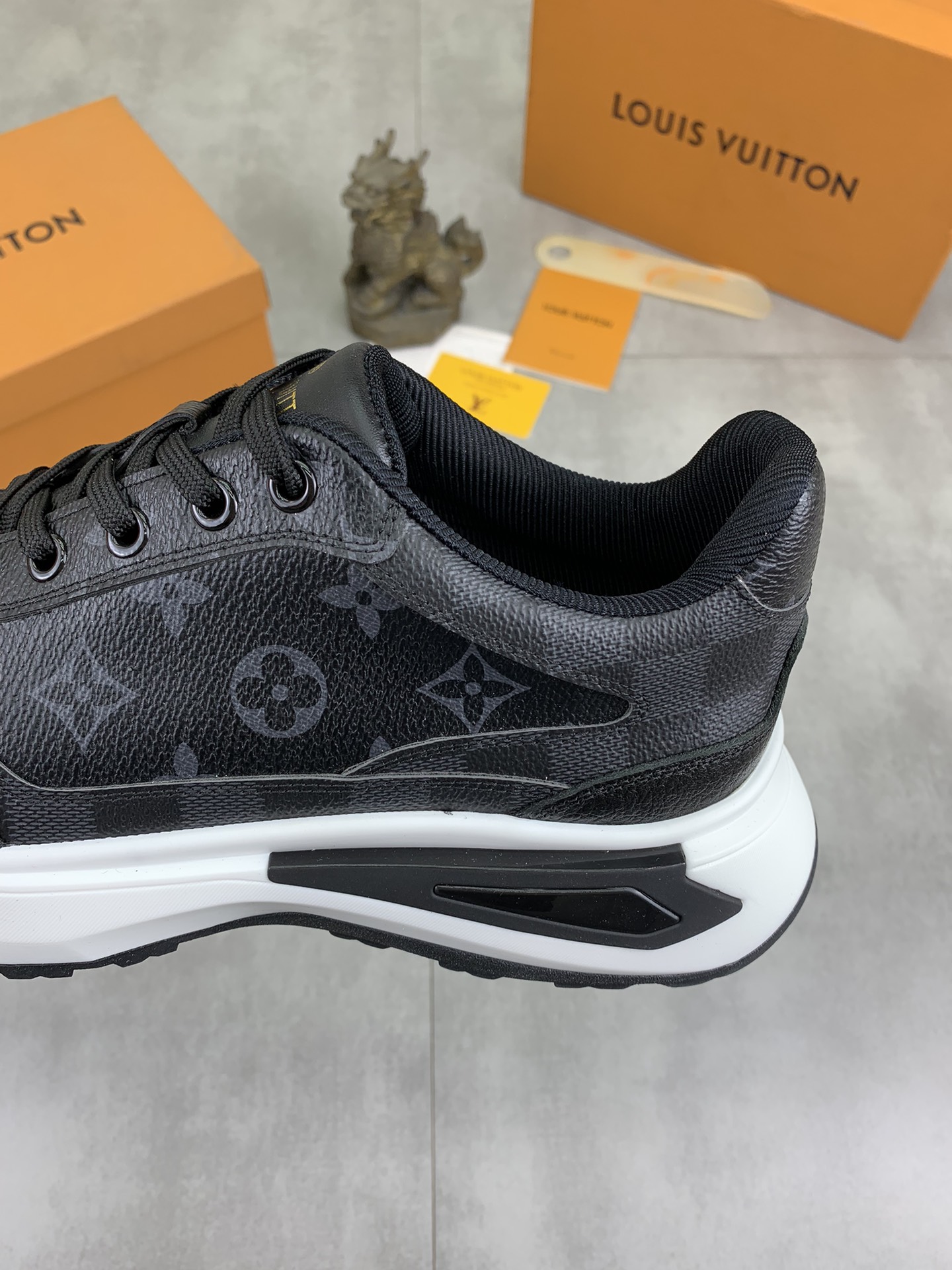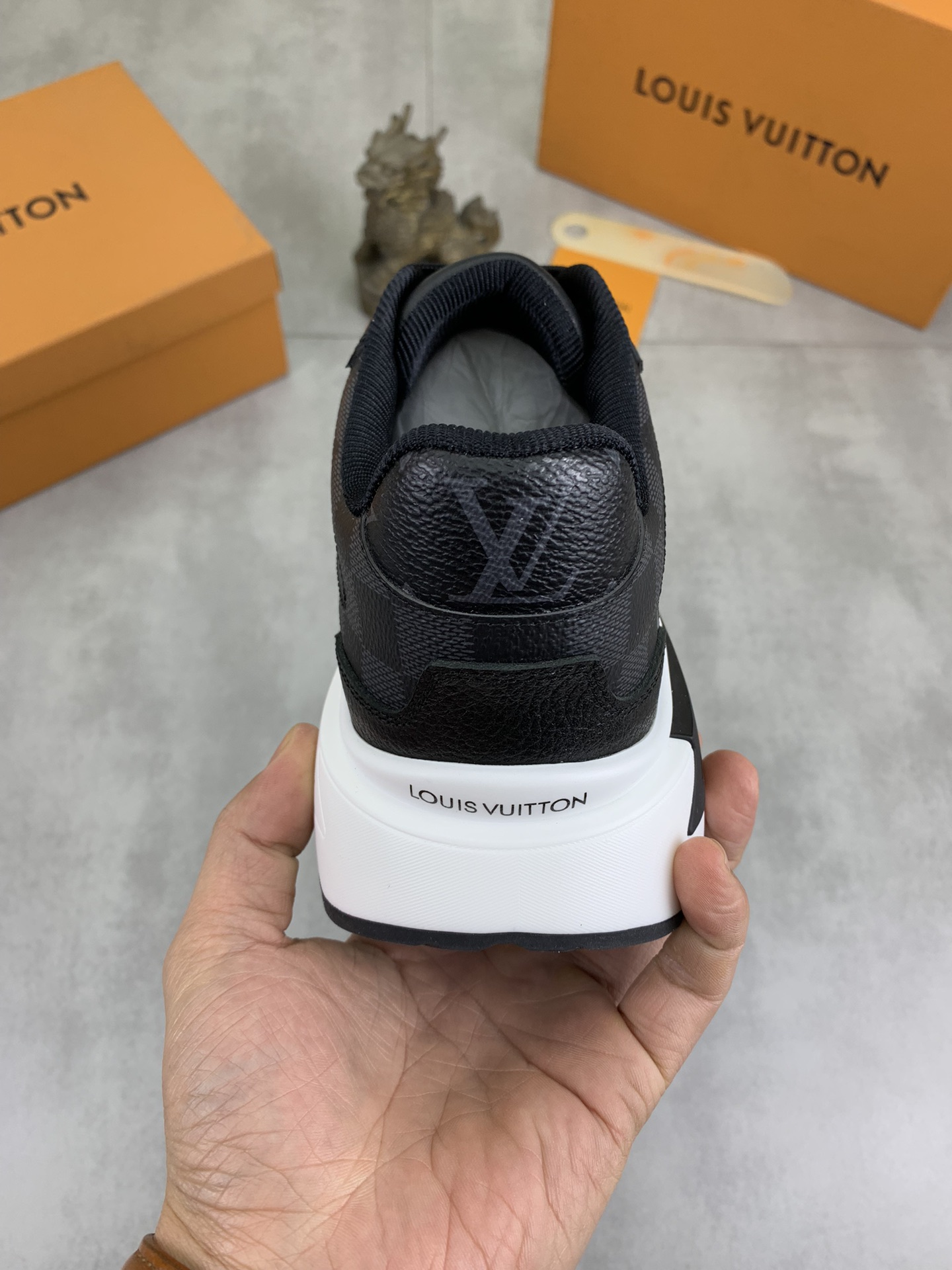 這款鞋子是AAAAA 1:1 質量(非常棒). 使用了和原版一模一樣的材料. 商標部分也保持了和路易威登/Louis Vuitton一樣. 圖片拍攝是實物鞋子拍攝, 您所收到的實物保證和我們圖片一模一樣.
