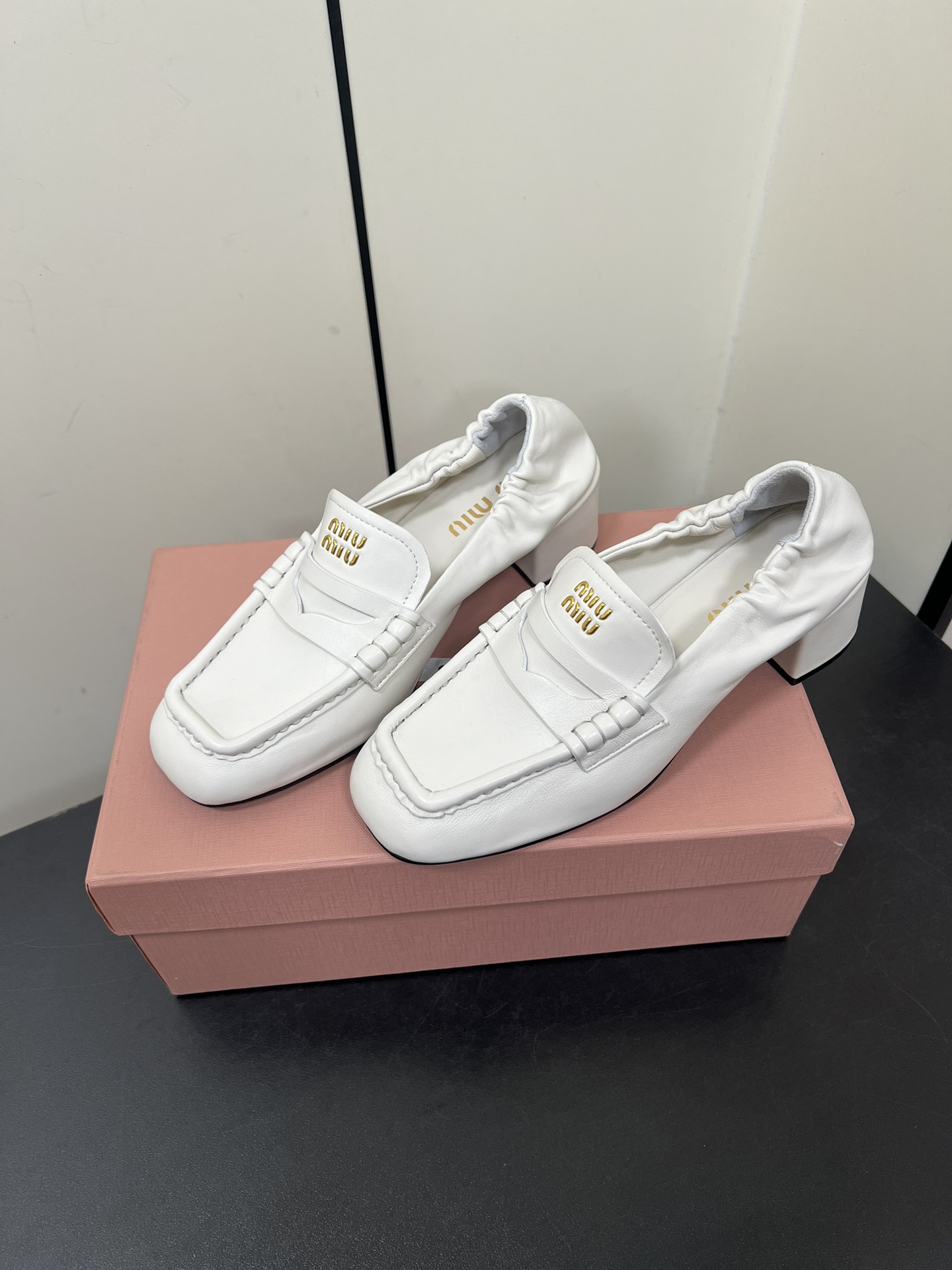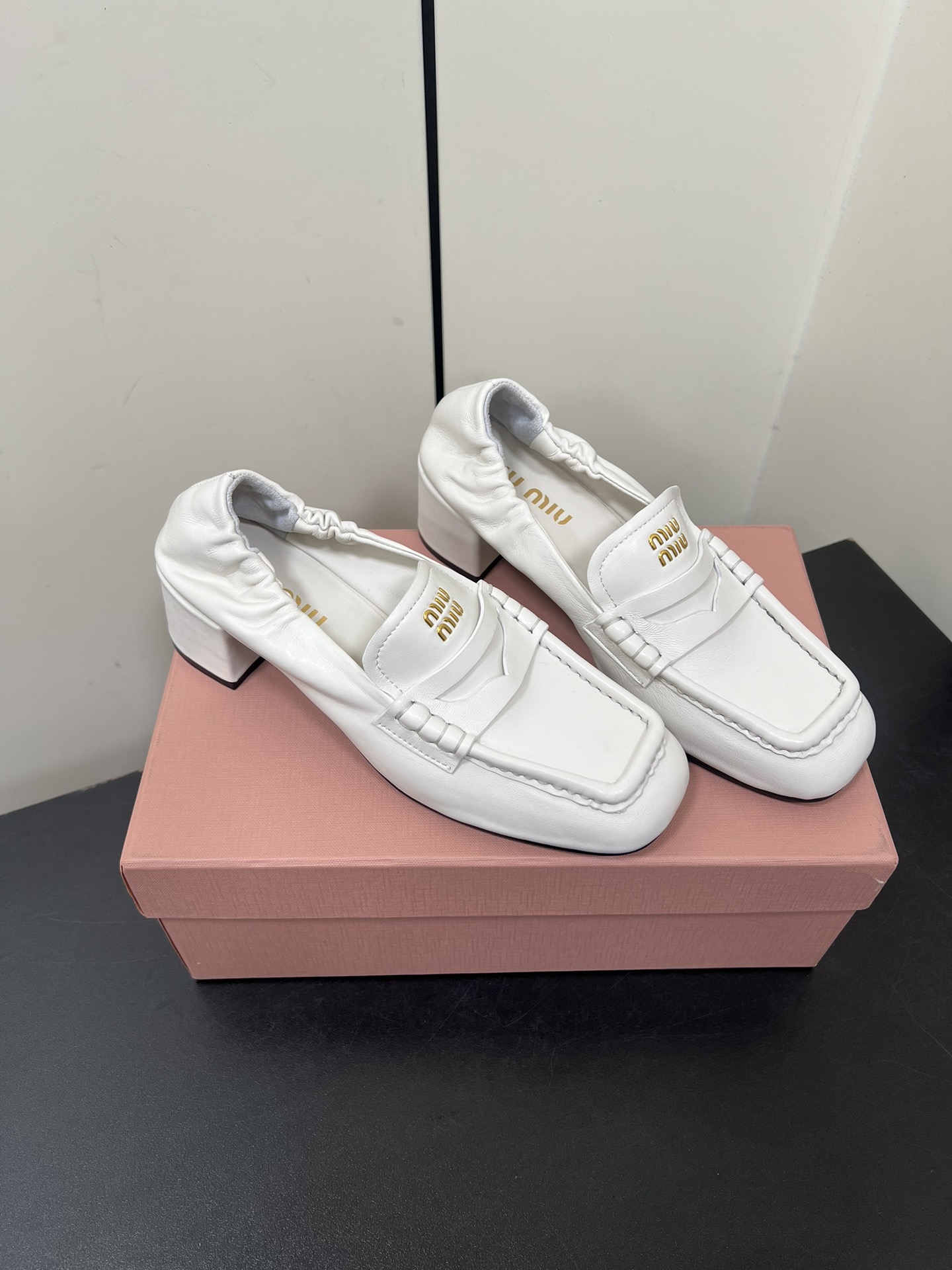 這款鞋子是AAAAA 1:1 質量(非常棒). 使用了和原版一模一樣的材料. 商標部分也保持了和繆繆/Miu Miu一樣. 圖片拍攝是實物鞋子拍攝, 您所收到的實物保證和我們圖片一模一樣.