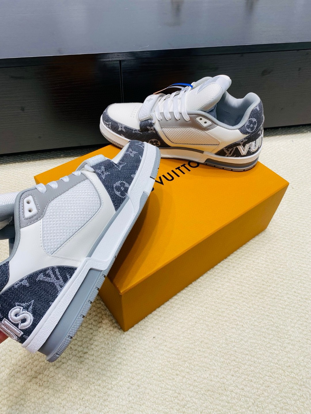 這款鞋子是AAAAA 1:1 質量(非常棒). 使用了和原版一模一樣的材料. 商標部分也保持了和路易威登/Louis Vuitton一樣. 圖片拍攝是實物鞋子拍攝, 您所收到的實物保證和我們圖片一模一樣.