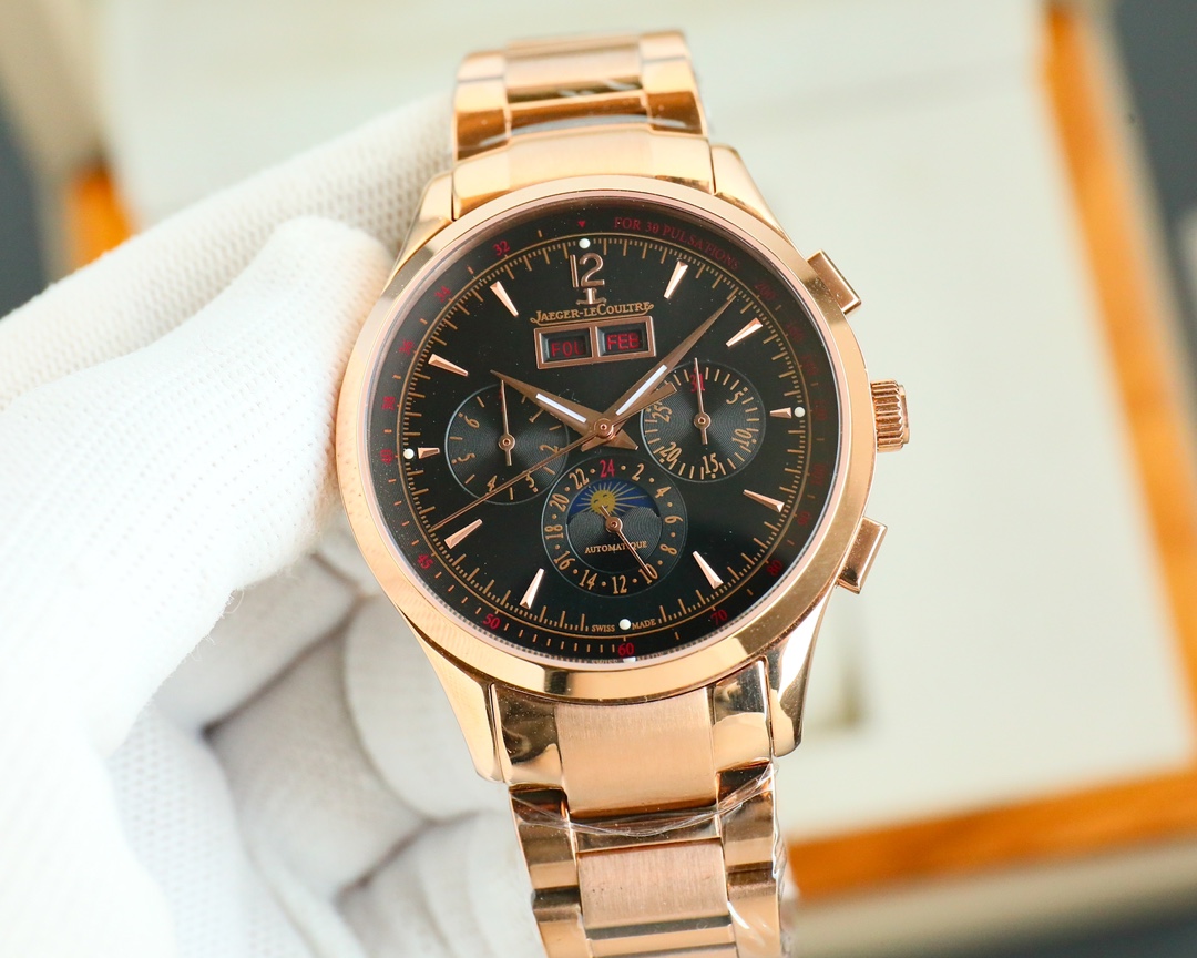 這款手錶是AAAAA 1:1 質量(非常棒). 使用了和原版一模一樣的材料. 商標部分也保持了和Jaeger Lecoultre一樣. 圖片拍攝是實物手錶拍攝, 您所收到的實物保證和我們圖片一模一樣.