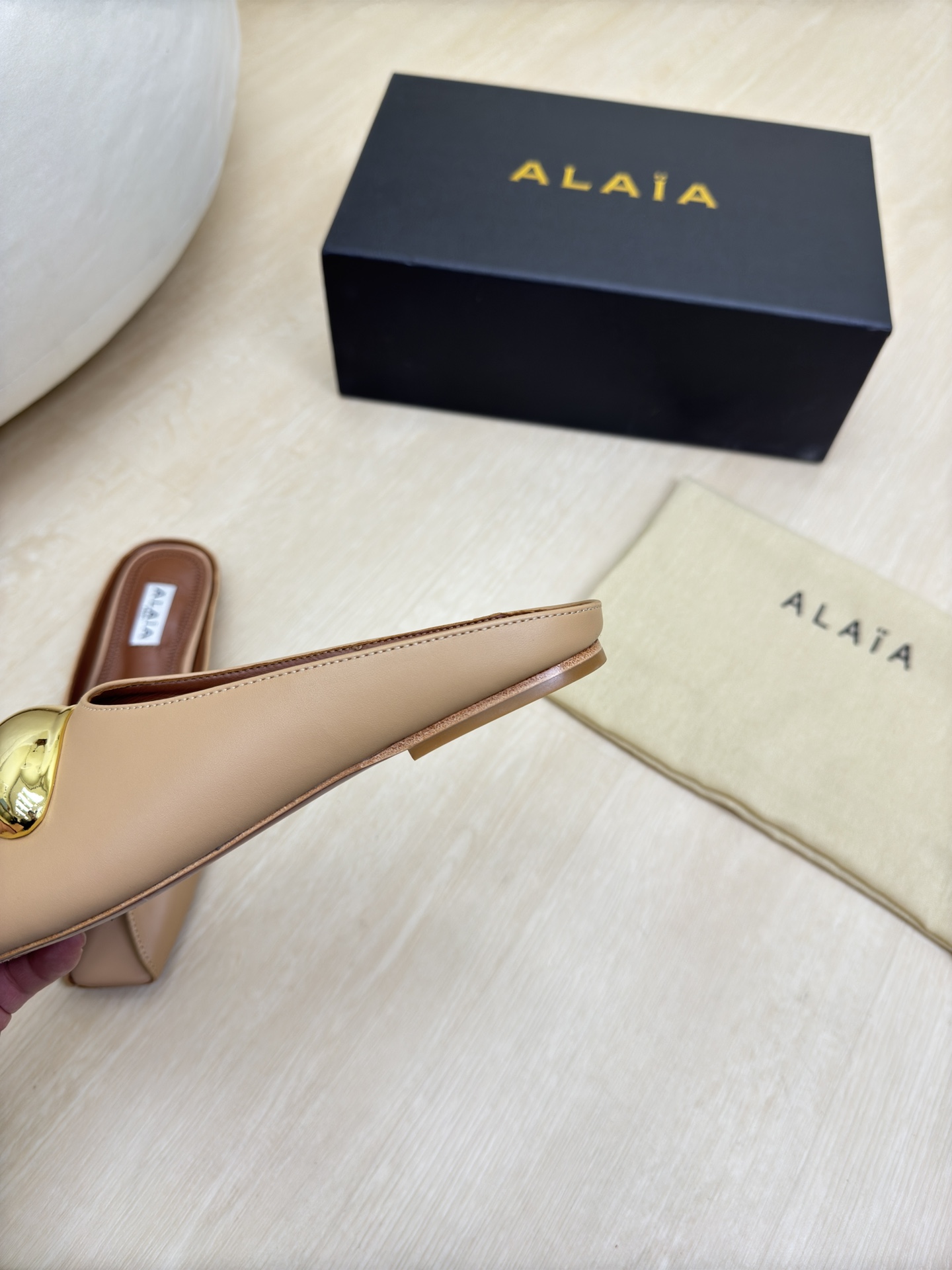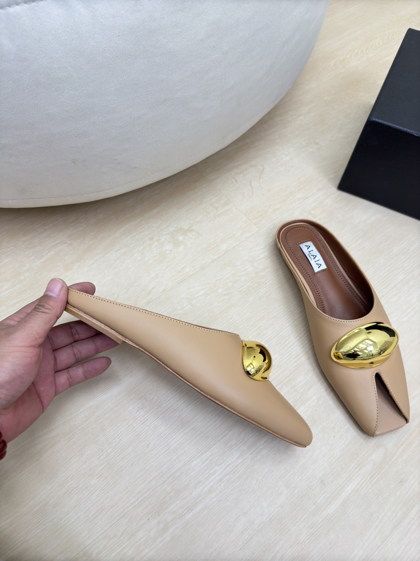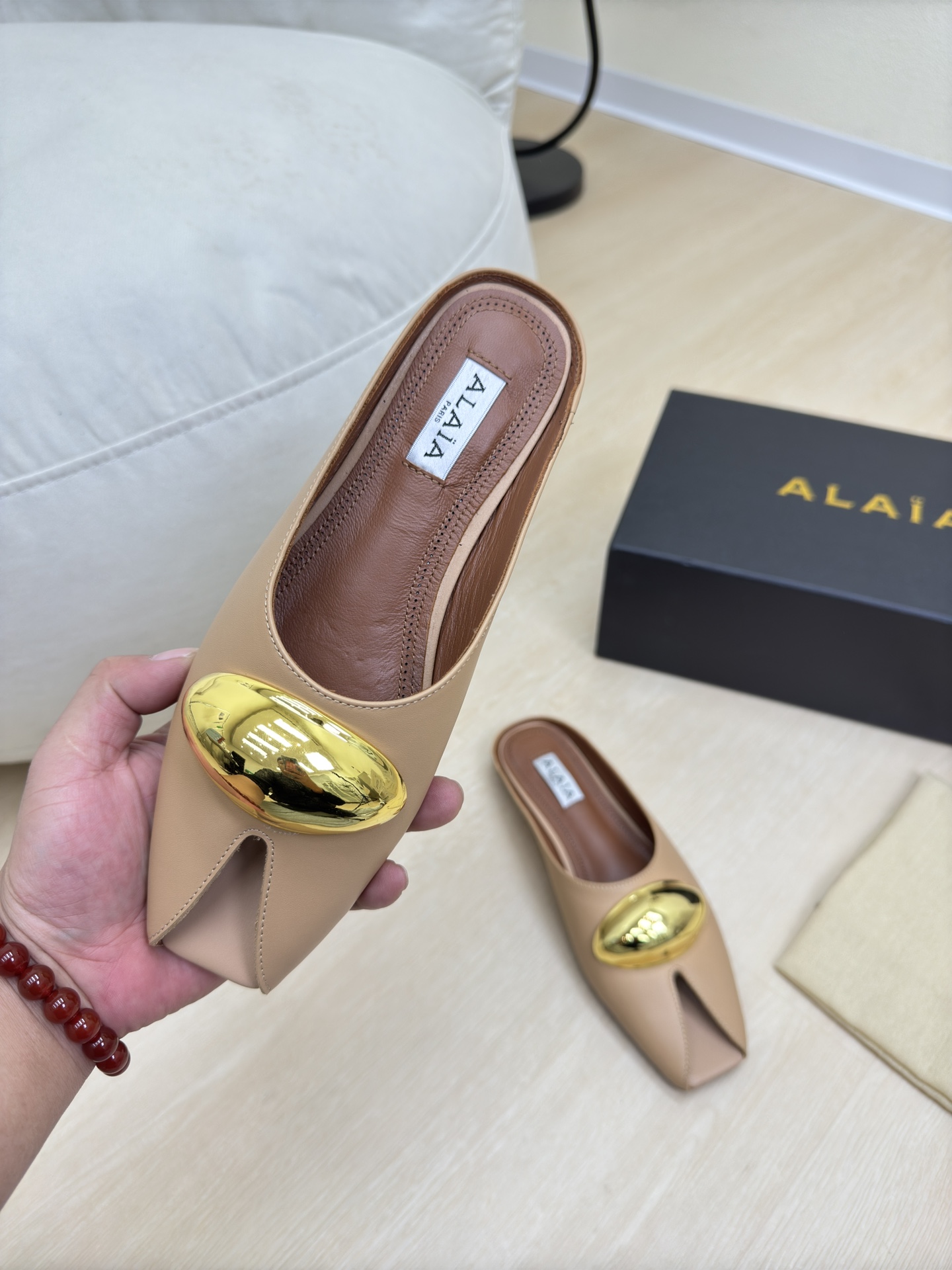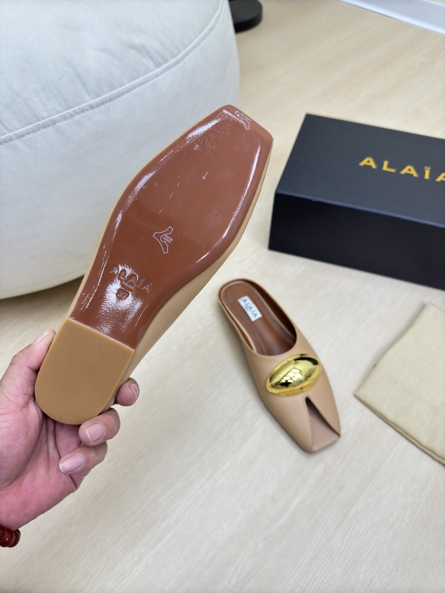 這款鞋子是AAAAA 1:1 質量(非常棒). 使用了和原版一模一樣的材料. 商標部分也保持了和Alaia一樣. 圖片拍攝是實物鞋子拍攝, 您所收到的實物保證和我們圖片一模一樣.