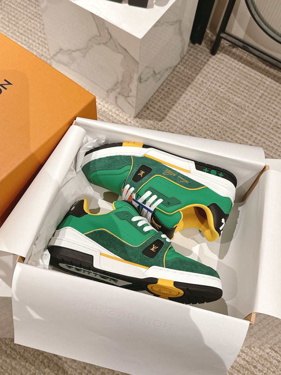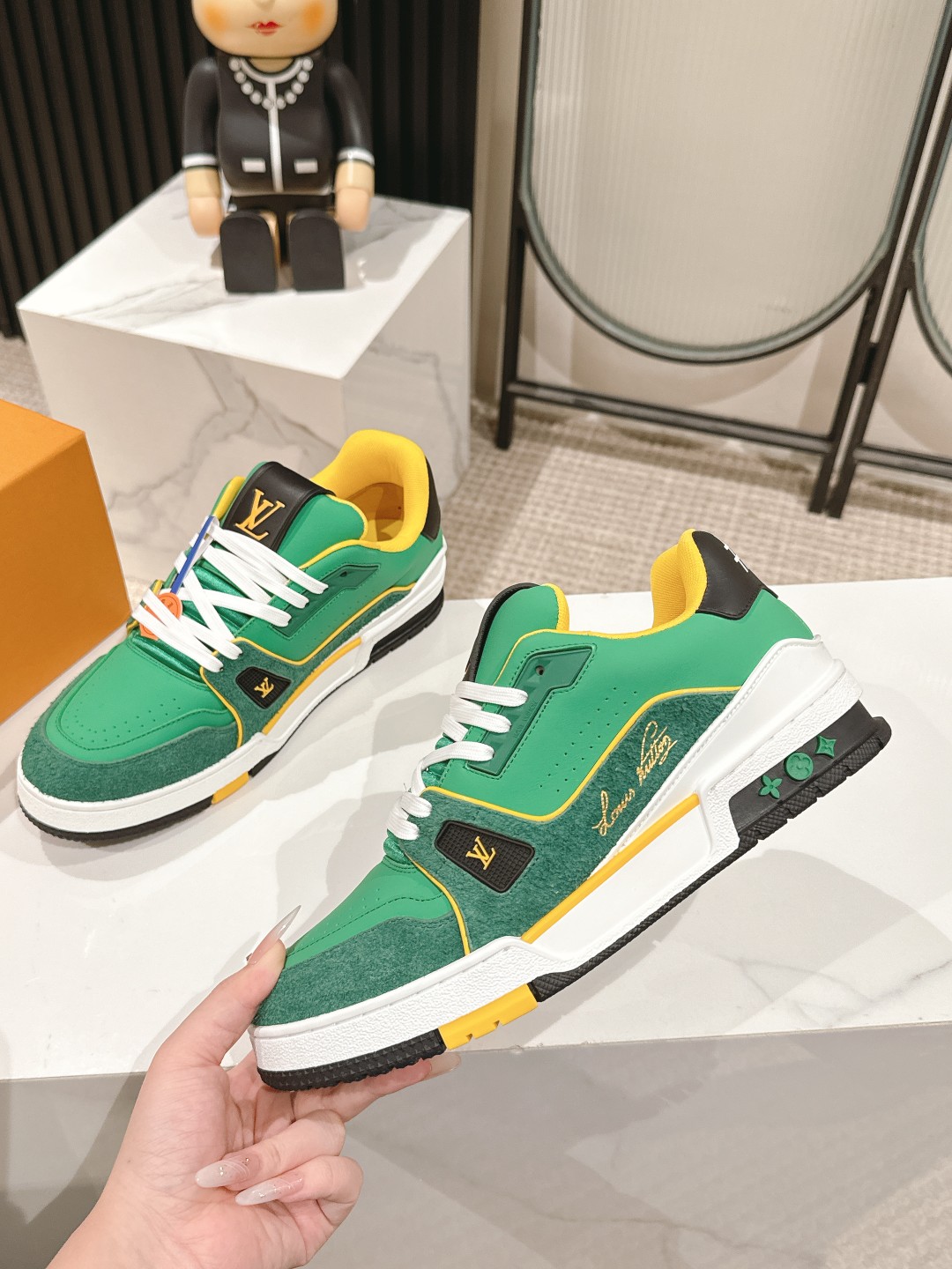 這款鞋子是AAAAA 1:1 質量(非常棒). 使用了和原版一模一樣的材料. 商標部分也保持了和路易威登/Louis Vuitton一樣. 圖片拍攝是實物鞋子拍攝, 您所收到的實物保證和我們圖片一模一樣.
