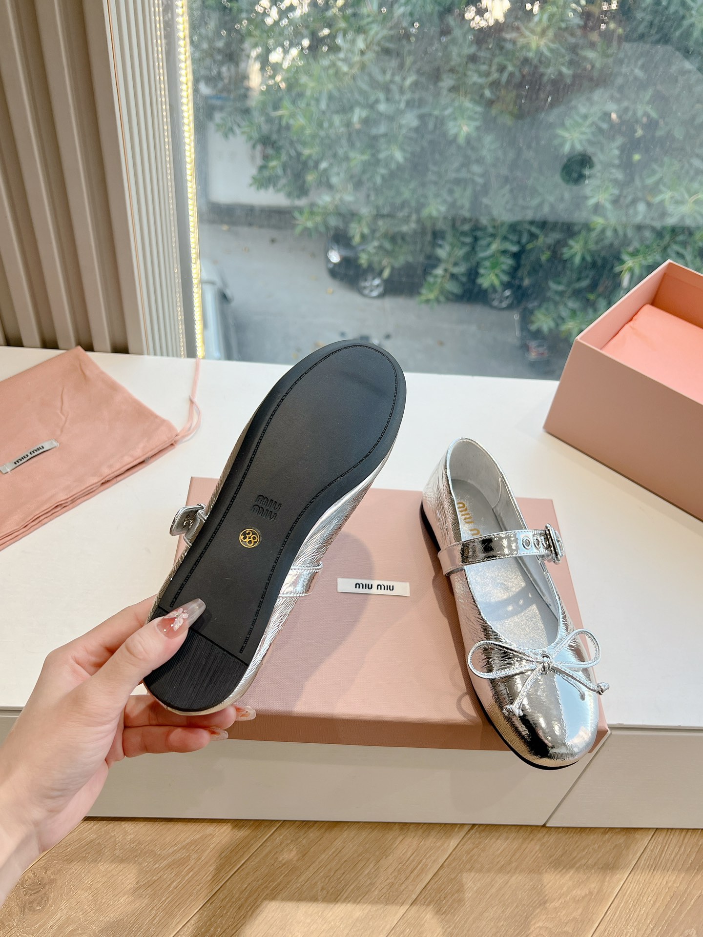 這款鞋子是AAAAA 1:1 質量(非常棒). 使用了和原版一模一樣的材料. 商標部分也保持了和繆繆/Miu Miu一樣. 圖片拍攝是實物鞋子拍攝, 您所收到的實物保證和我們圖片一模一樣.