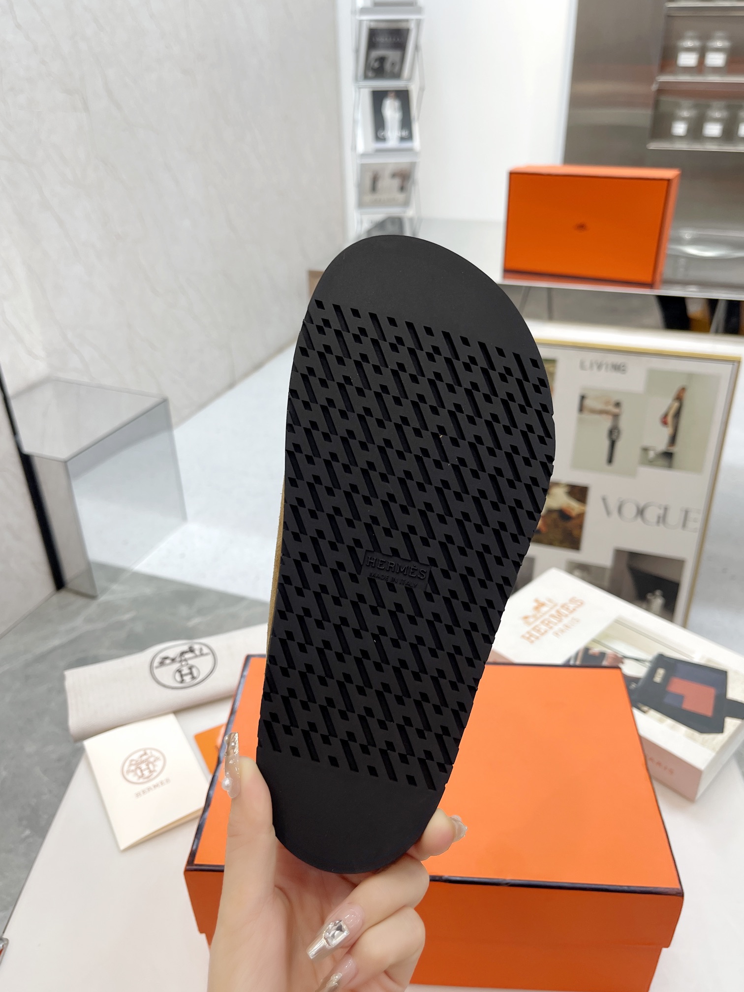 這款鞋子是AAAAA 1:1 質量(非常棒). 使用了和原版一模一樣的材料. 商標部分也保持了和愛馬仕/Hermes一樣. 圖片拍攝是實物鞋子拍攝, 您所收到的實物保證和我們圖片一模一樣.