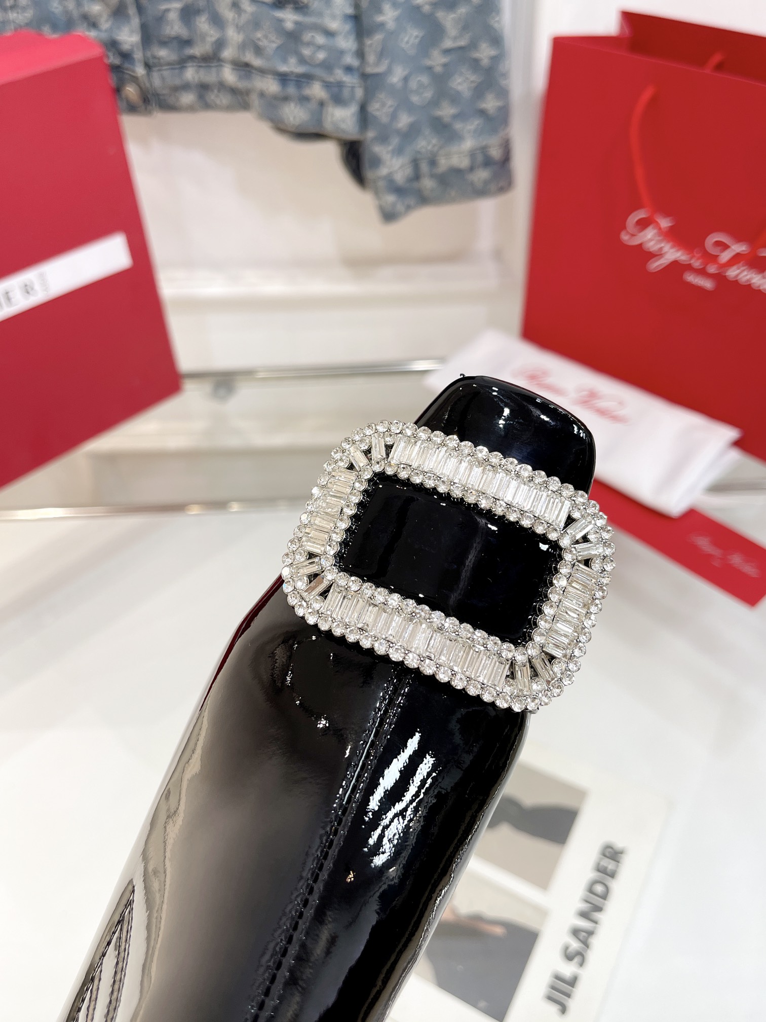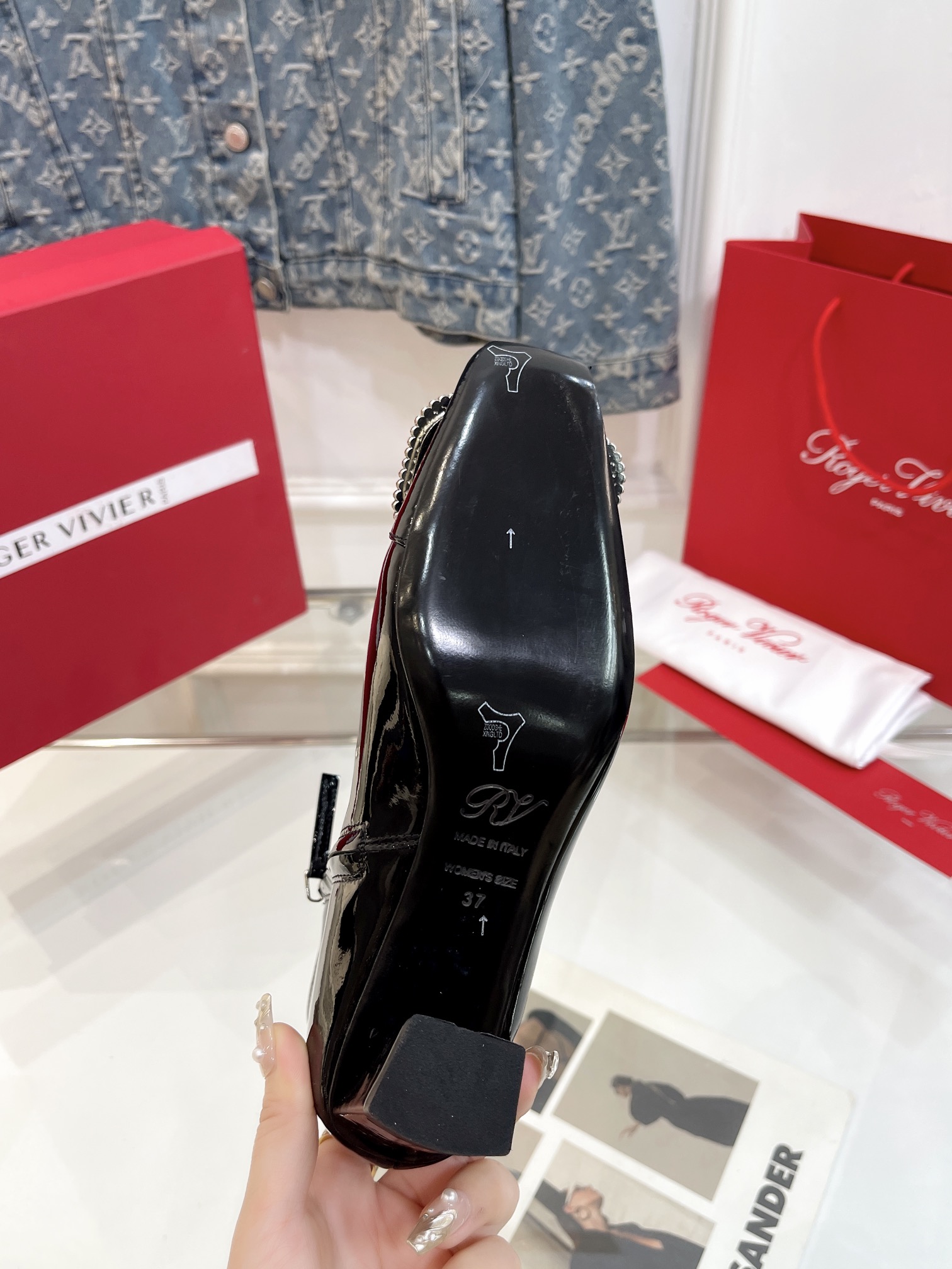 這款鞋子是AAAAA 1:1 質量(非常棒). 使用了和原版一模一樣的材料. 商標部分也保持了和羅傑維維耶/Roger Vivier一樣. 圖片拍攝是實物鞋子拍攝, 您所收到的實物保證和我們圖片一模一樣.