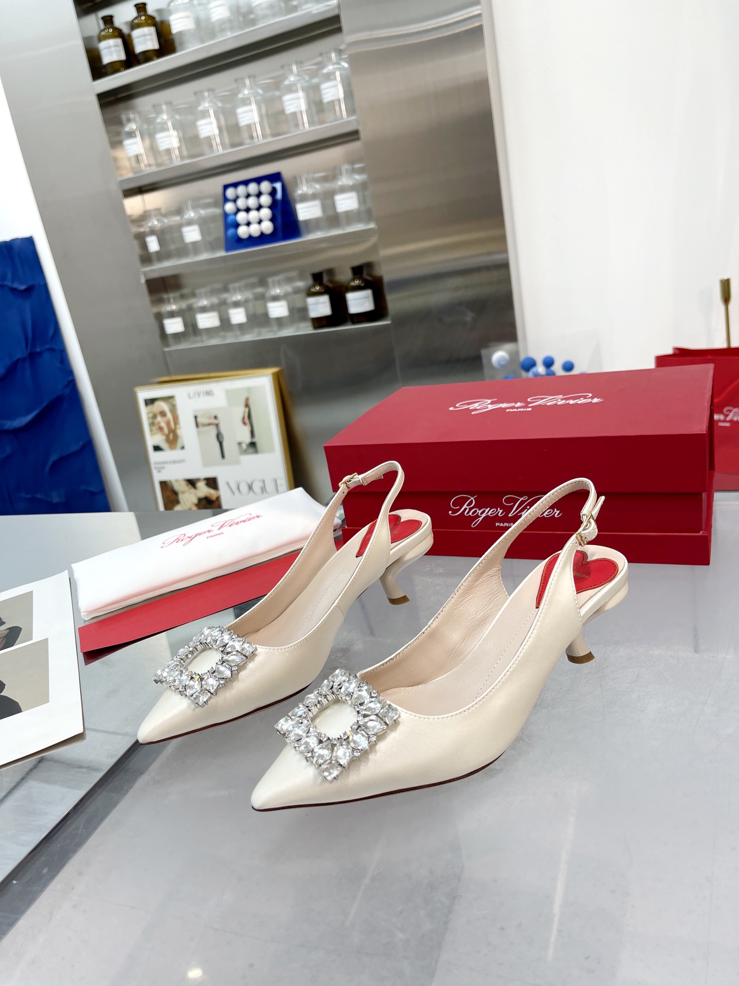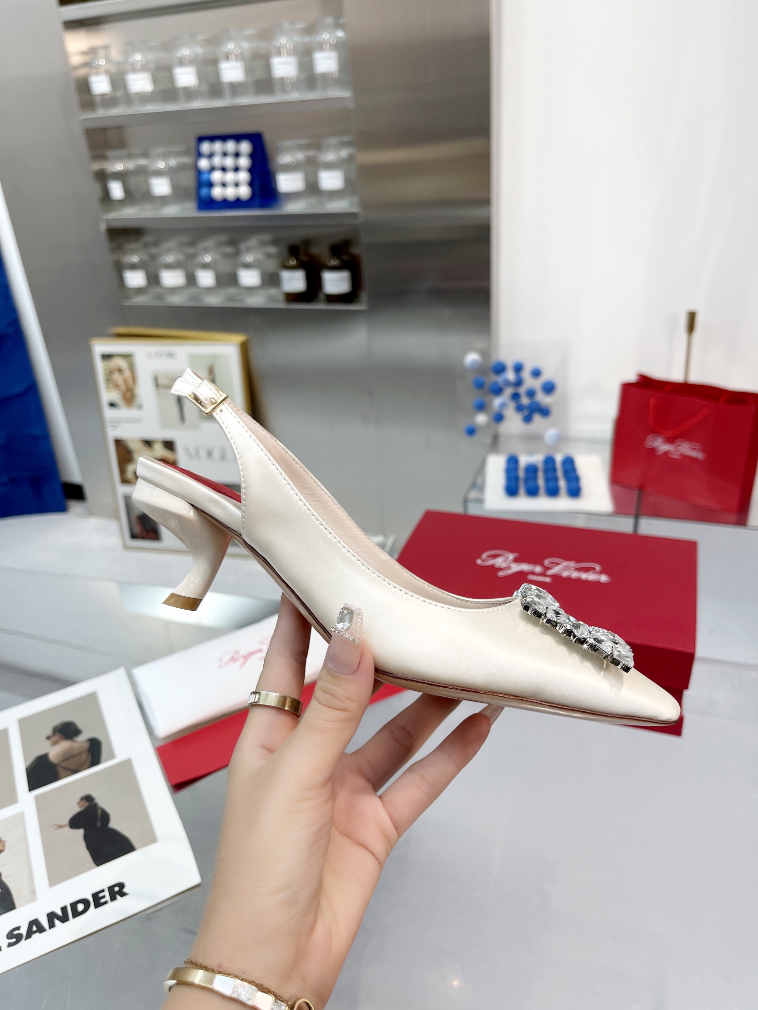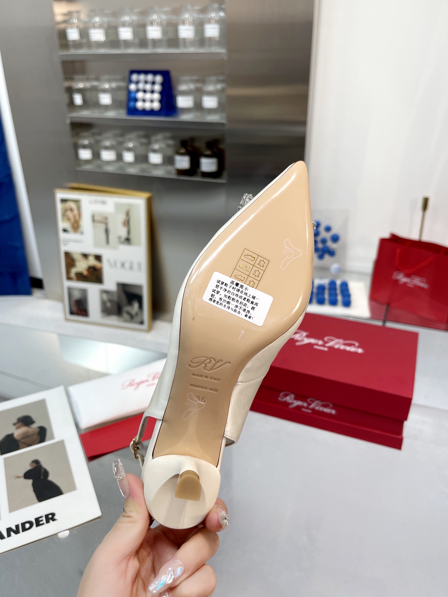 這款鞋子是AAAAA 1:1 質量(非常棒). 使用了和原版一模一樣的材料. 商標部分也保持了和羅傑維維耶/Roger Vivier一樣. 圖片拍攝是實物鞋子拍攝, 您所收到的實物保證和我們圖片一模一樣.