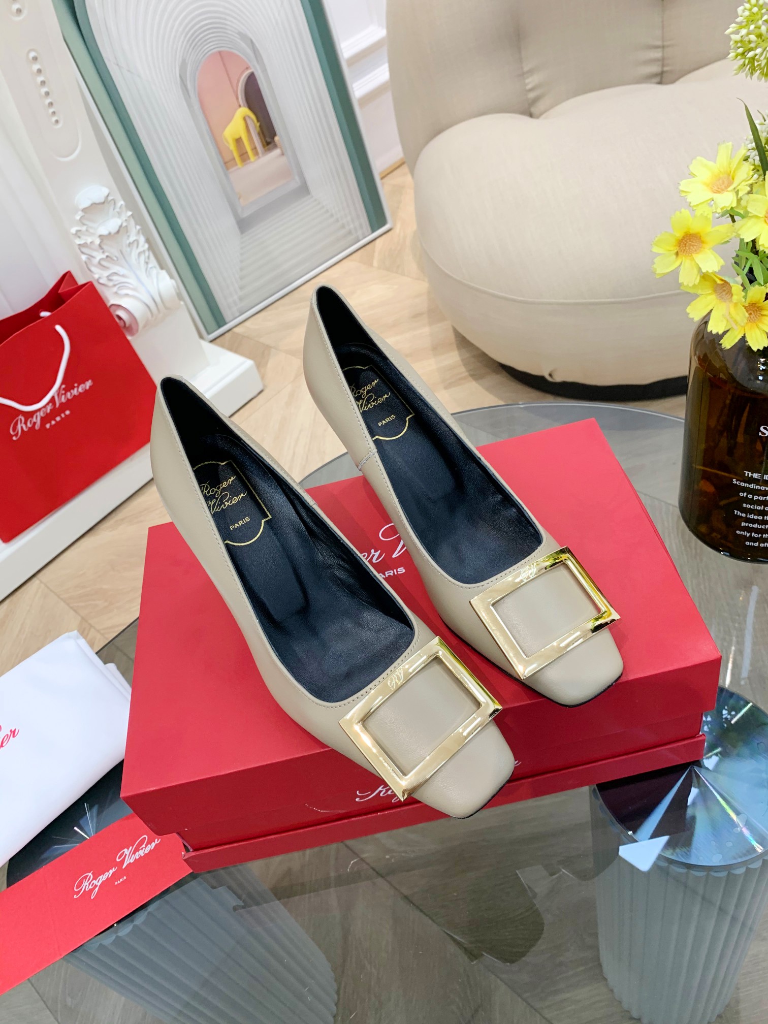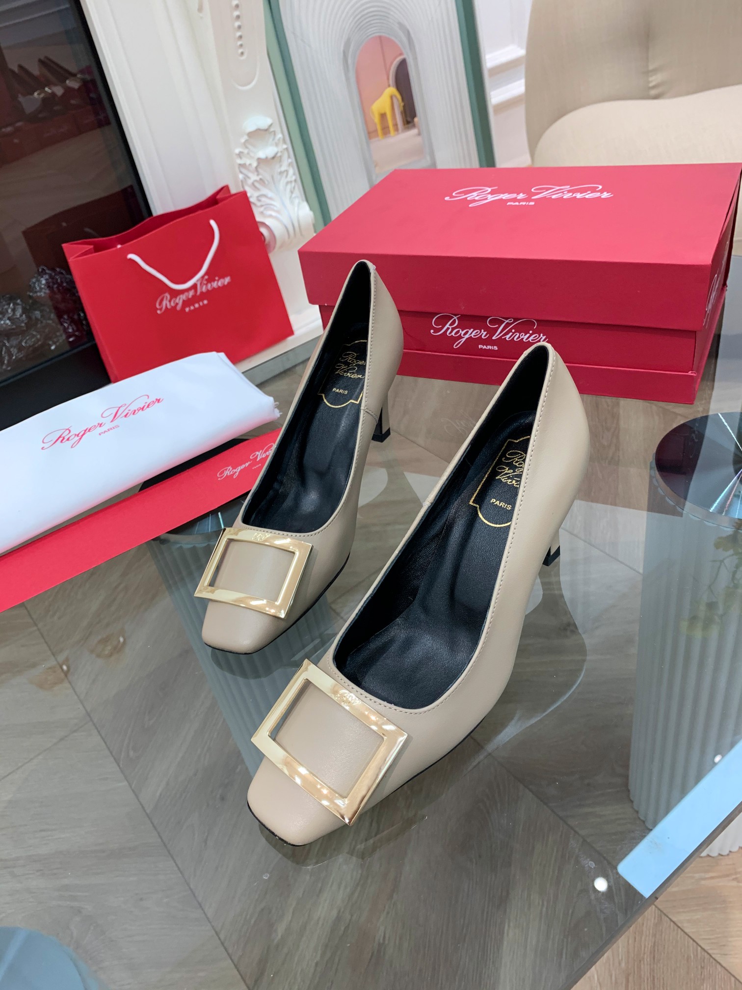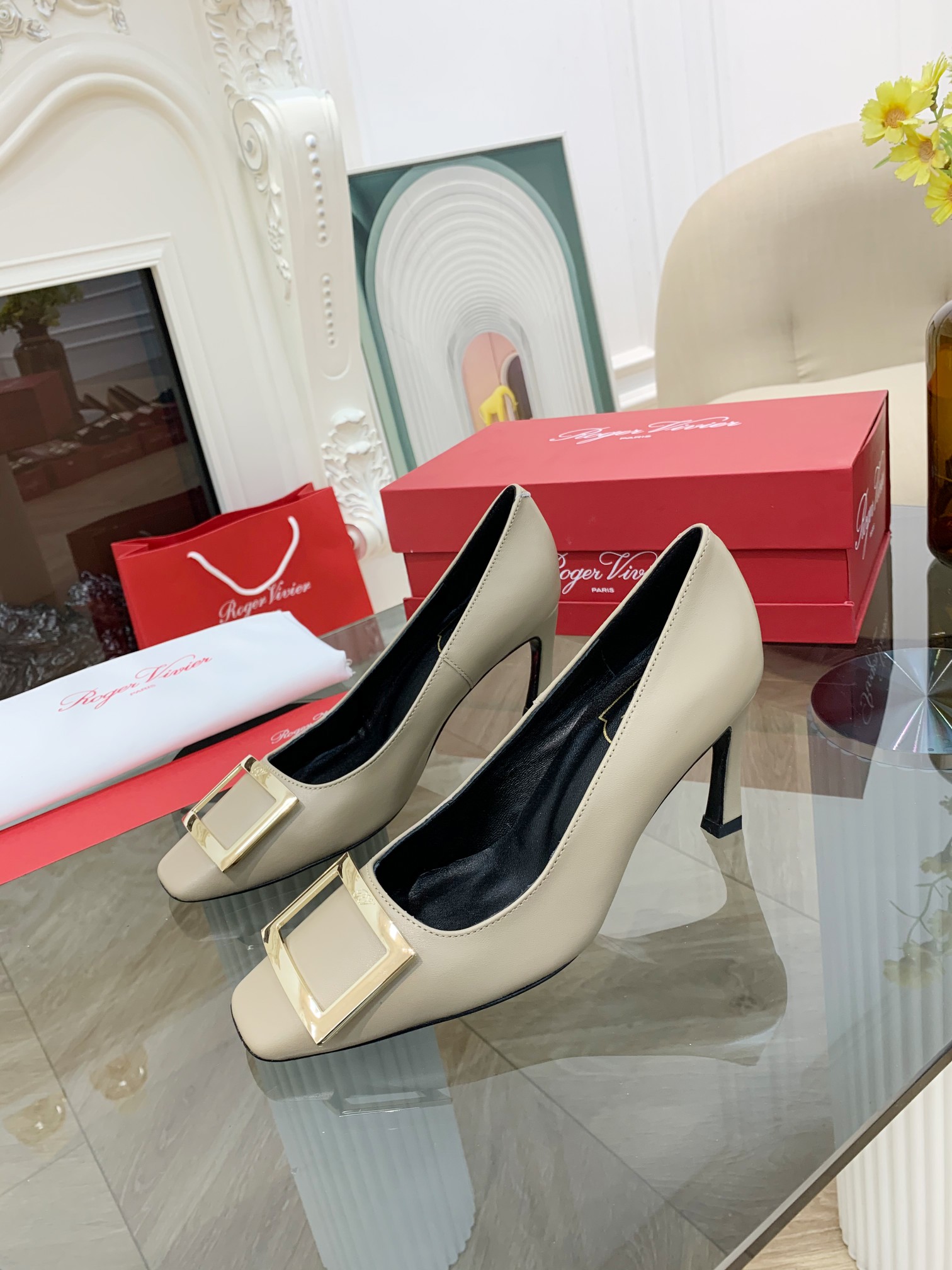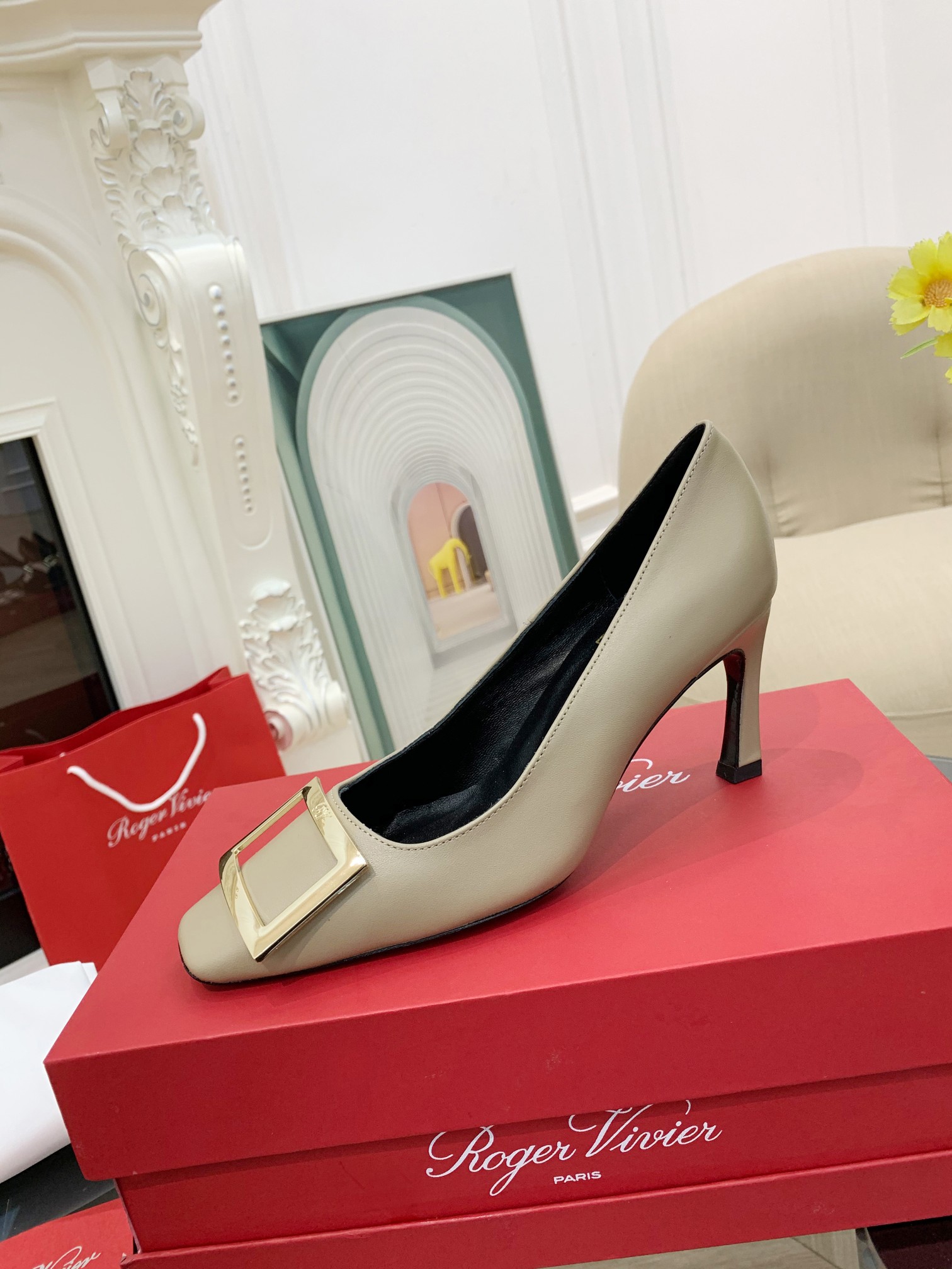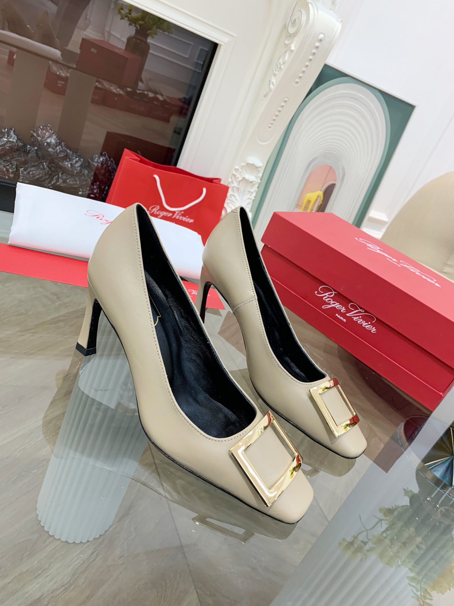 這款鞋子是AAAAA 1:1 質量(非常棒). 使用了和原版一模一樣的材料. 商標部分也保持了和羅傑維維耶/Roger Vivier一樣. 圖片拍攝是實物鞋子拍攝, 您所收到的實物保證和我們圖片一模一樣.