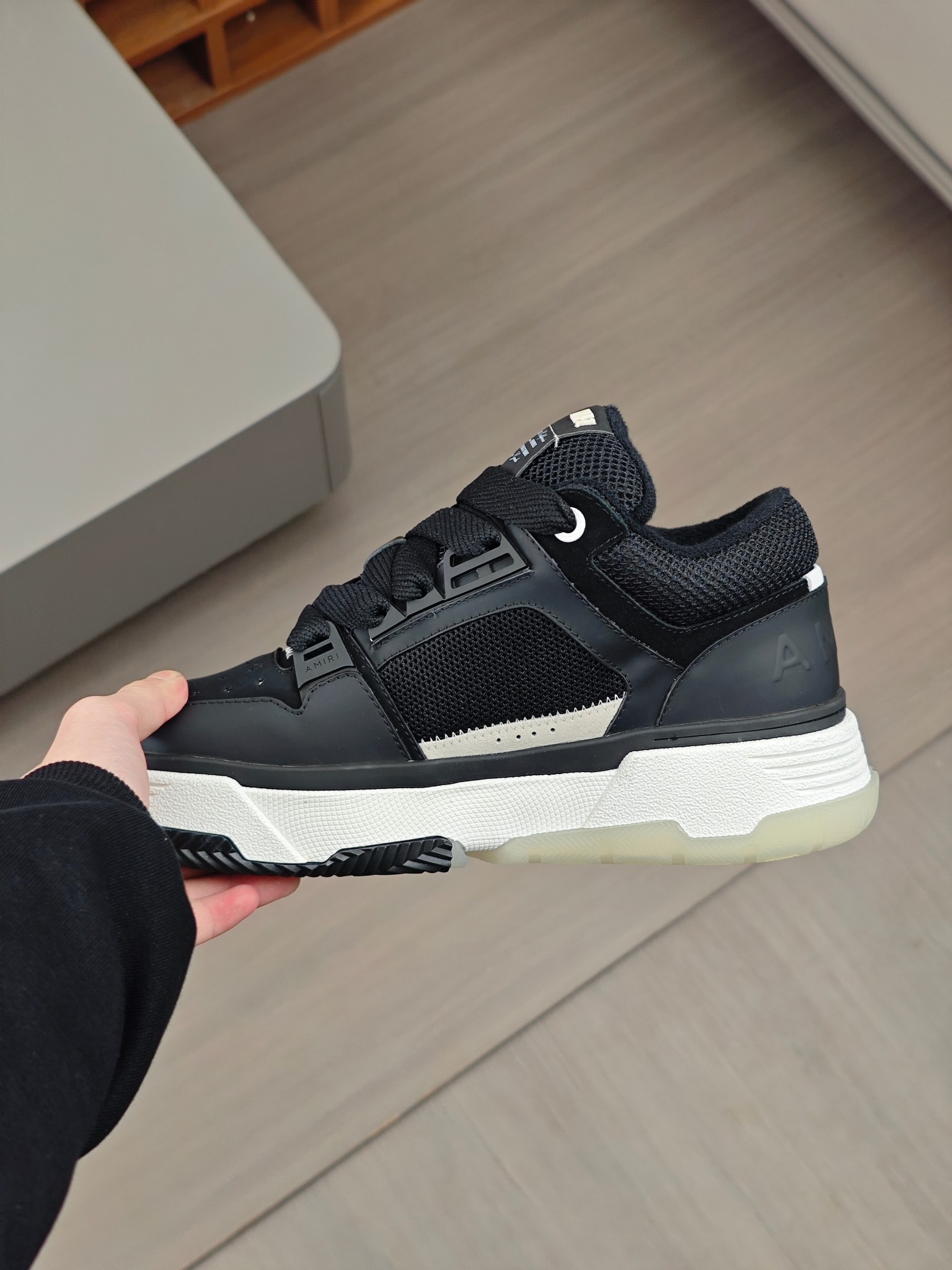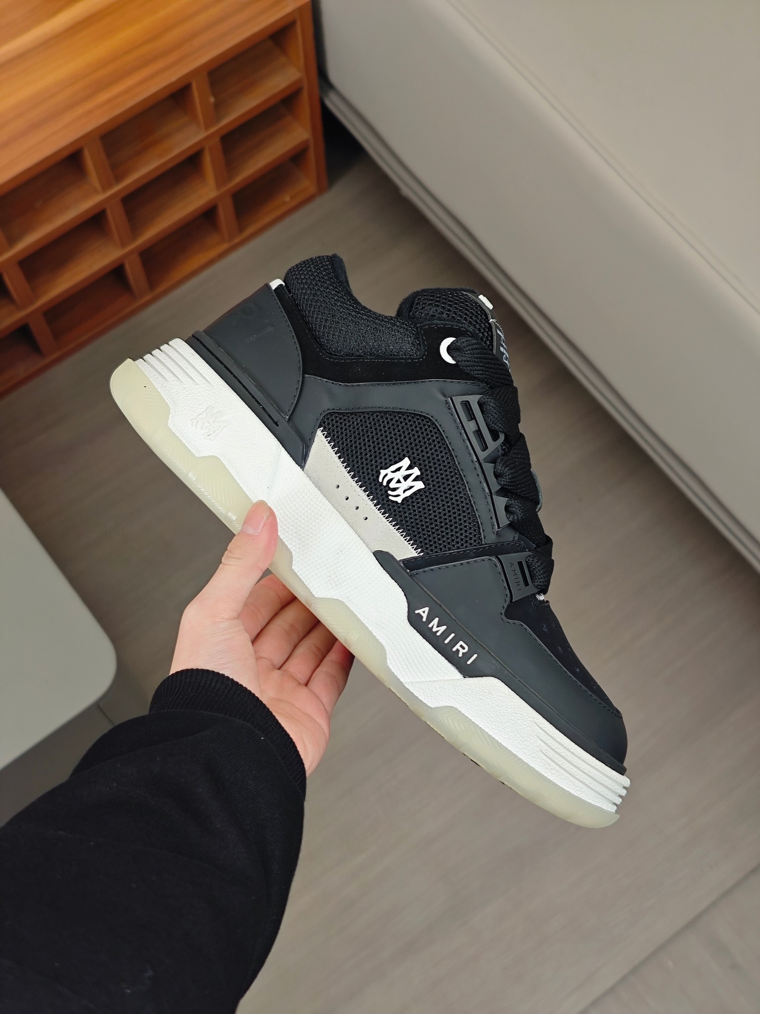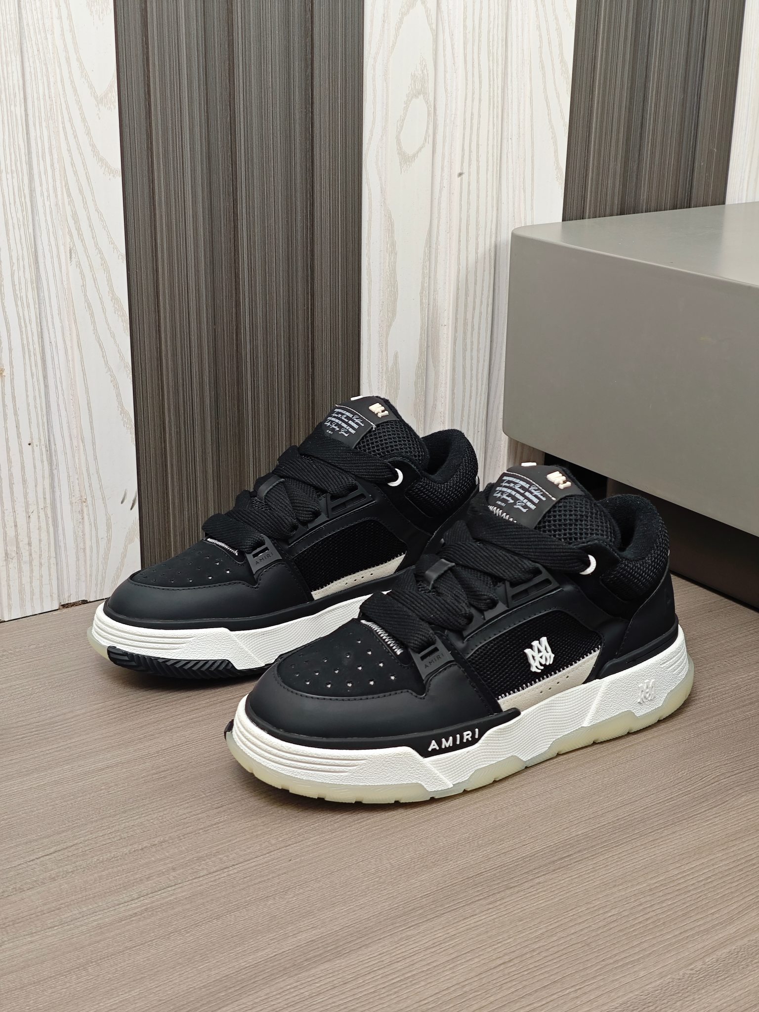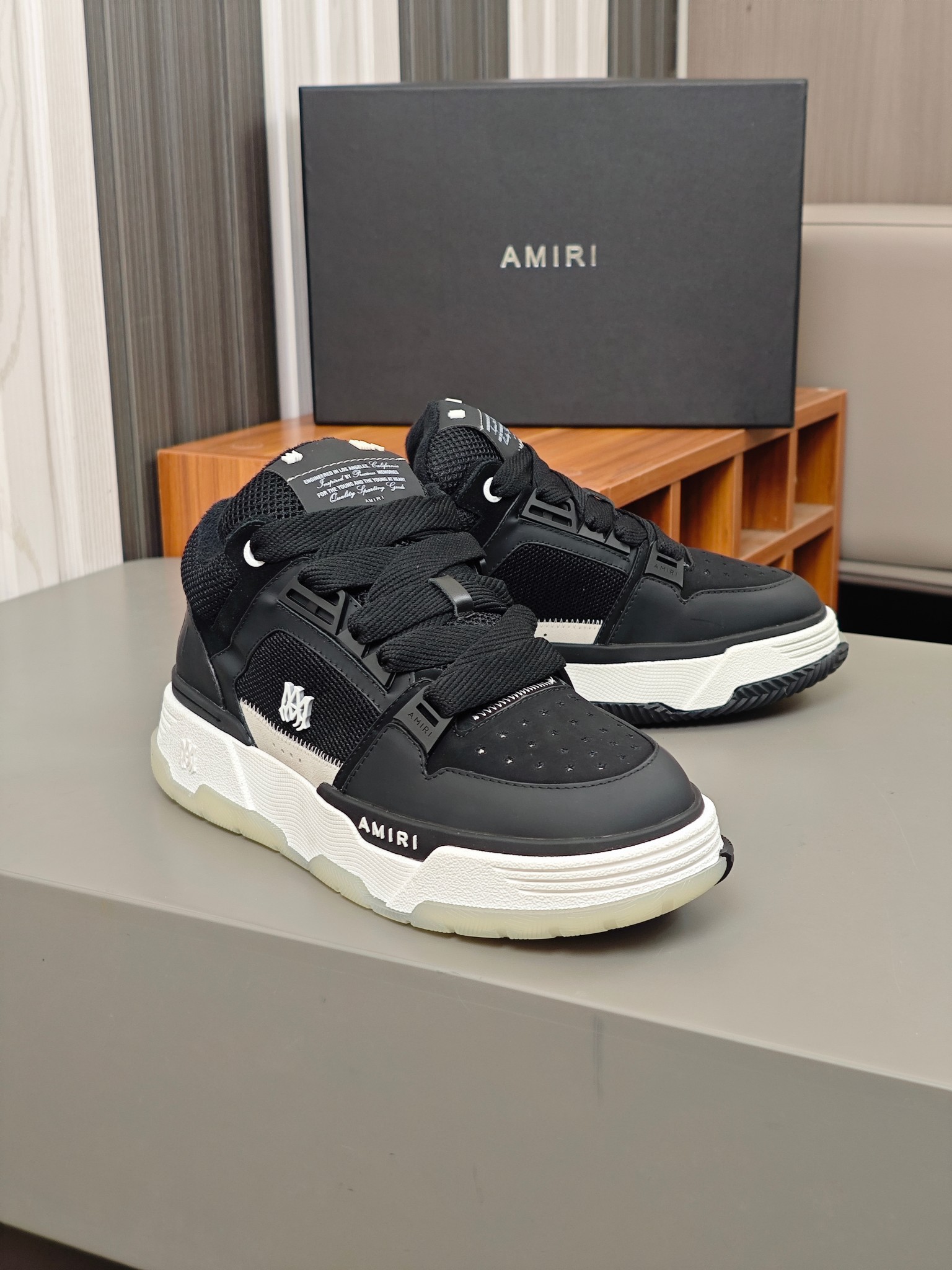 這款鞋子是AAAAA 1:1 質量(非常棒). 使用了和原版一模一樣的材料. 商標部分也保持了和AMIRI一樣. 圖片拍攝是實物鞋子拍攝, 您所收到的實物保證和我們圖片一模一樣.