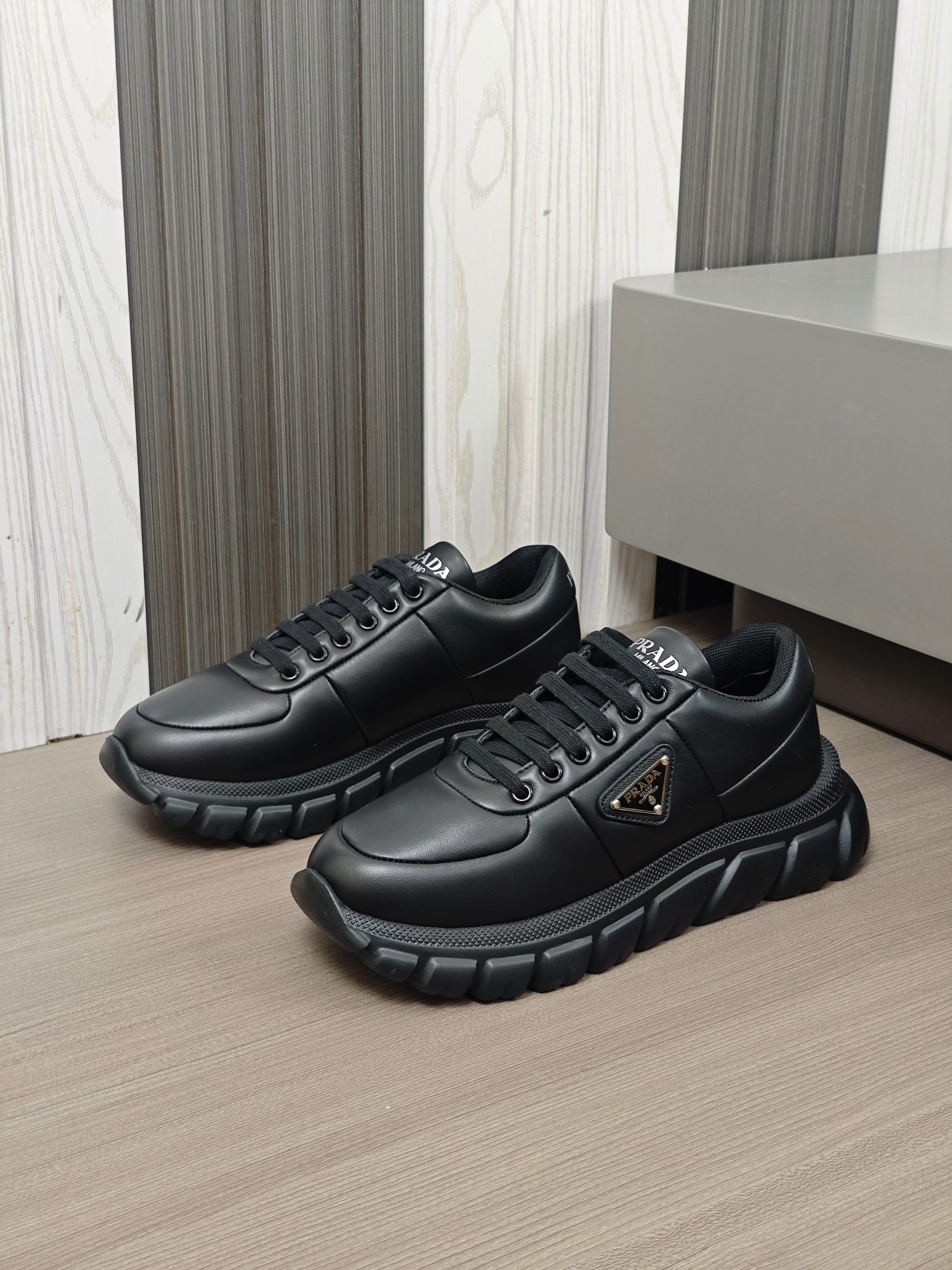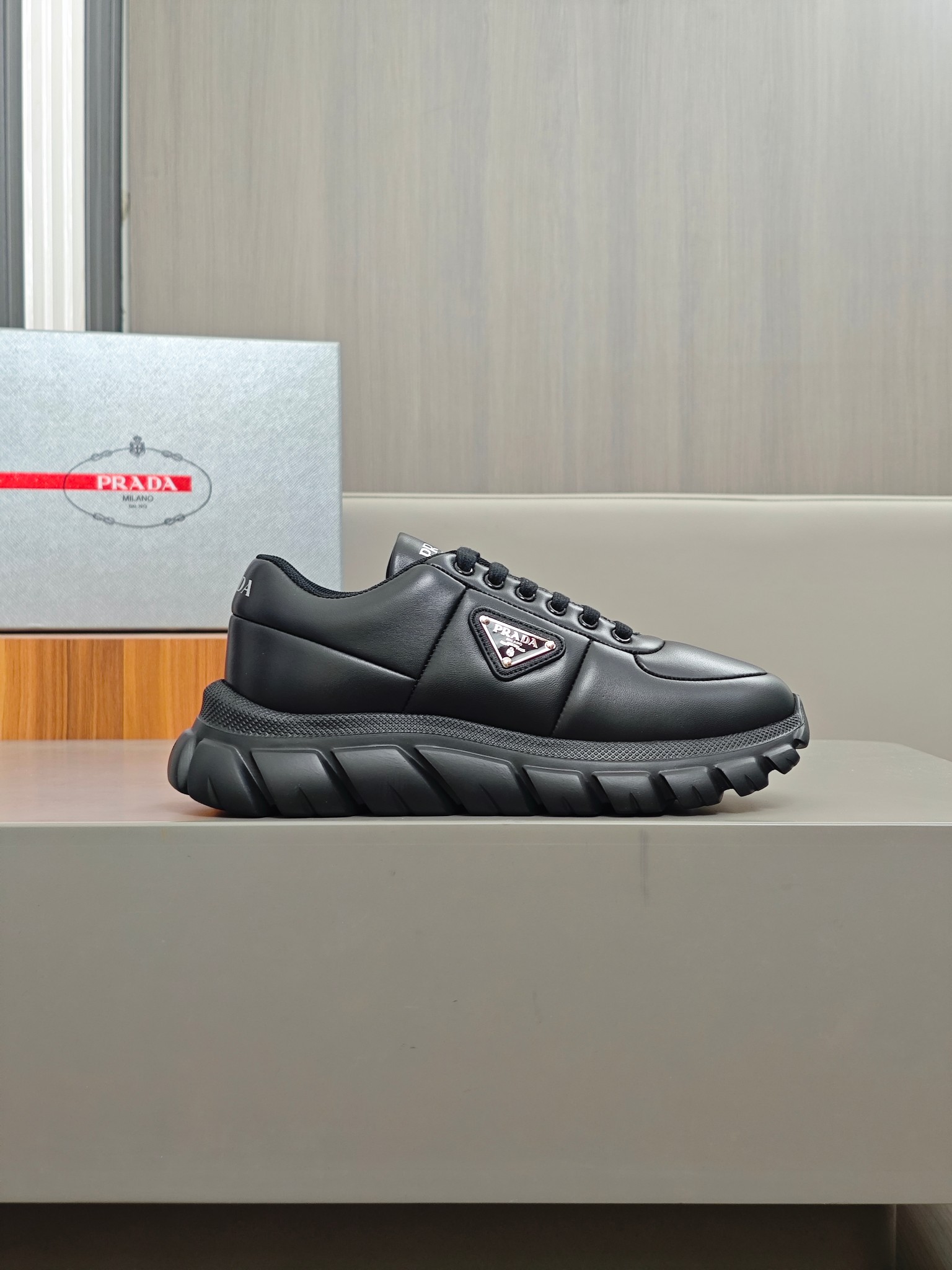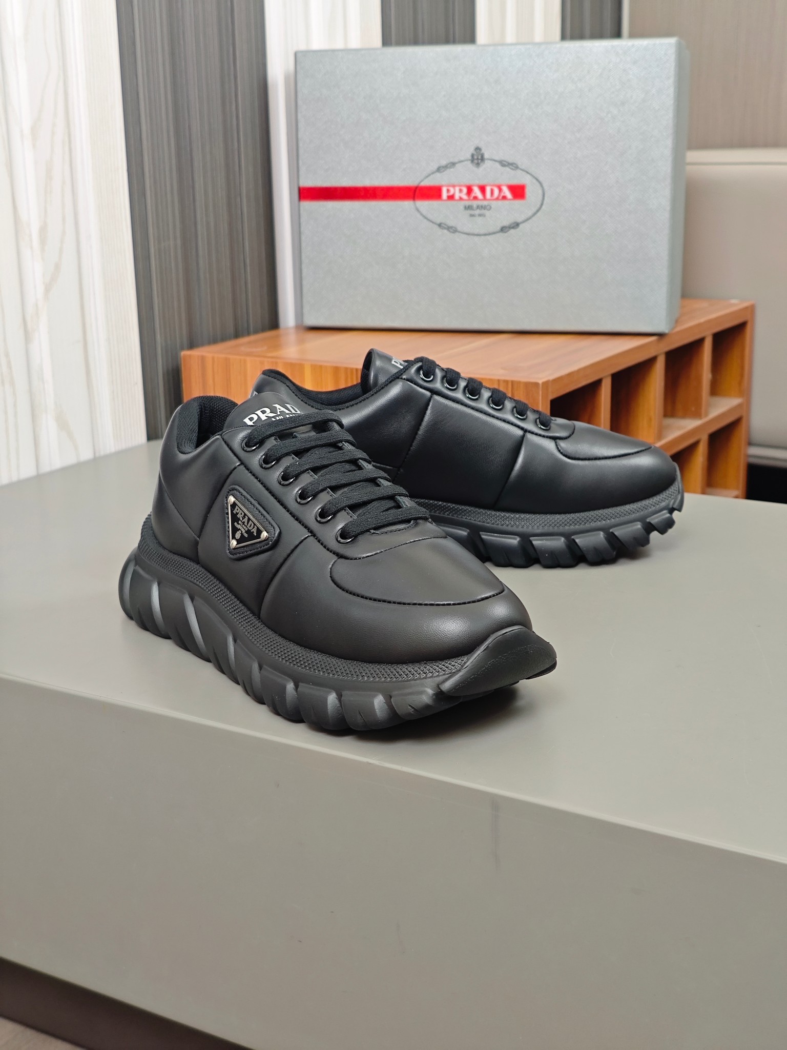 這款鞋子是AAAAA 1:1 質量(非常棒). 使用了和原版一模一樣的材料. 商標部分也保持了和普拉達/Prada一樣. 圖片拍攝是實物鞋子拍攝, 您所收到的實物保證和我們圖片一模一樣.