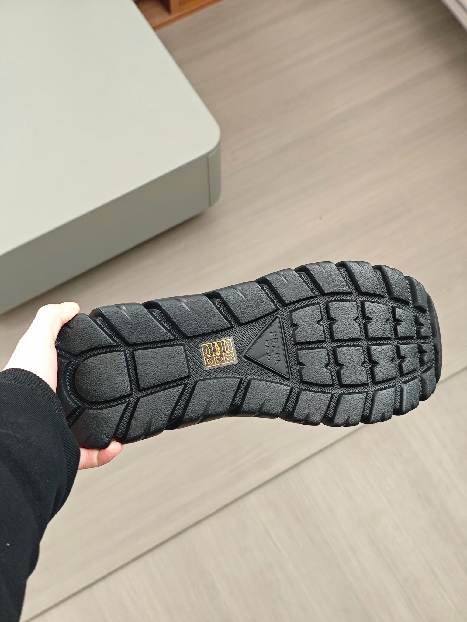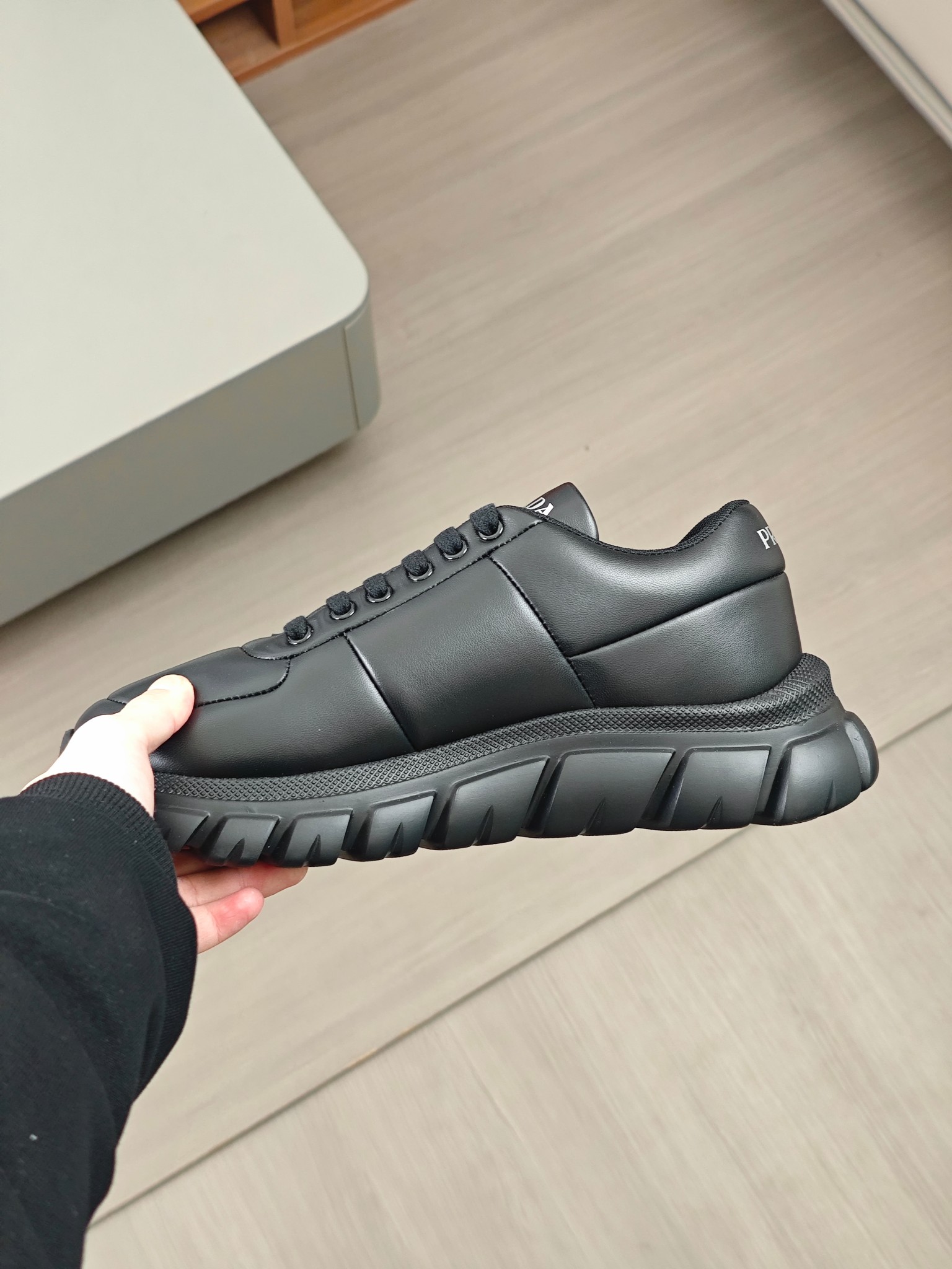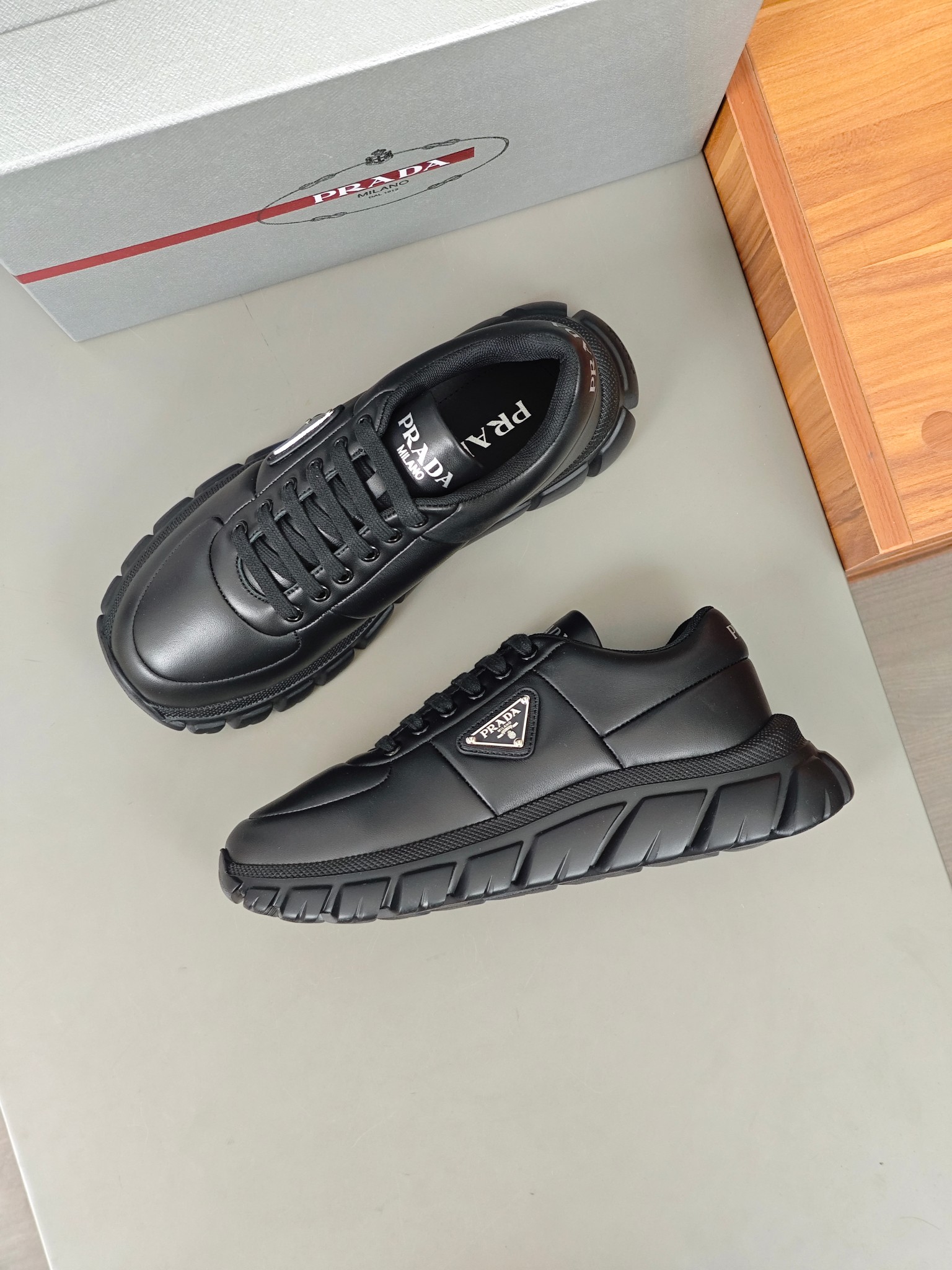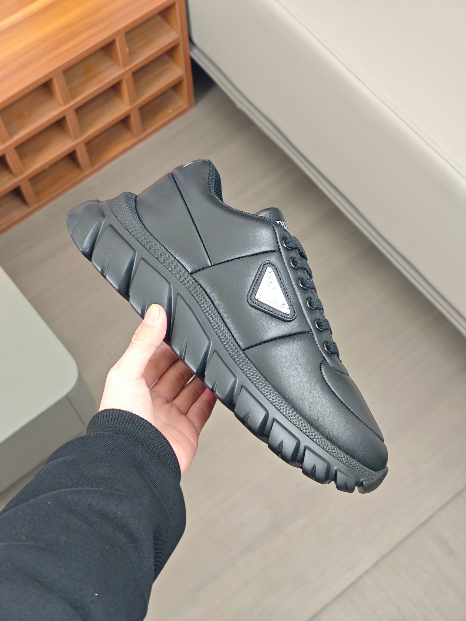 這款鞋子是AAAAA 1:1 質量(非常棒). 使用了和原版一模一樣的材料. 商標部分也保持了和普拉達/Prada一樣. 圖片拍攝是實物鞋子拍攝, 您所收到的實物保證和我們圖片一模一樣.
