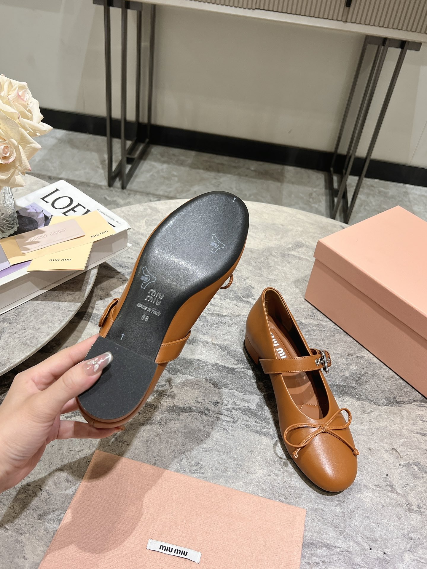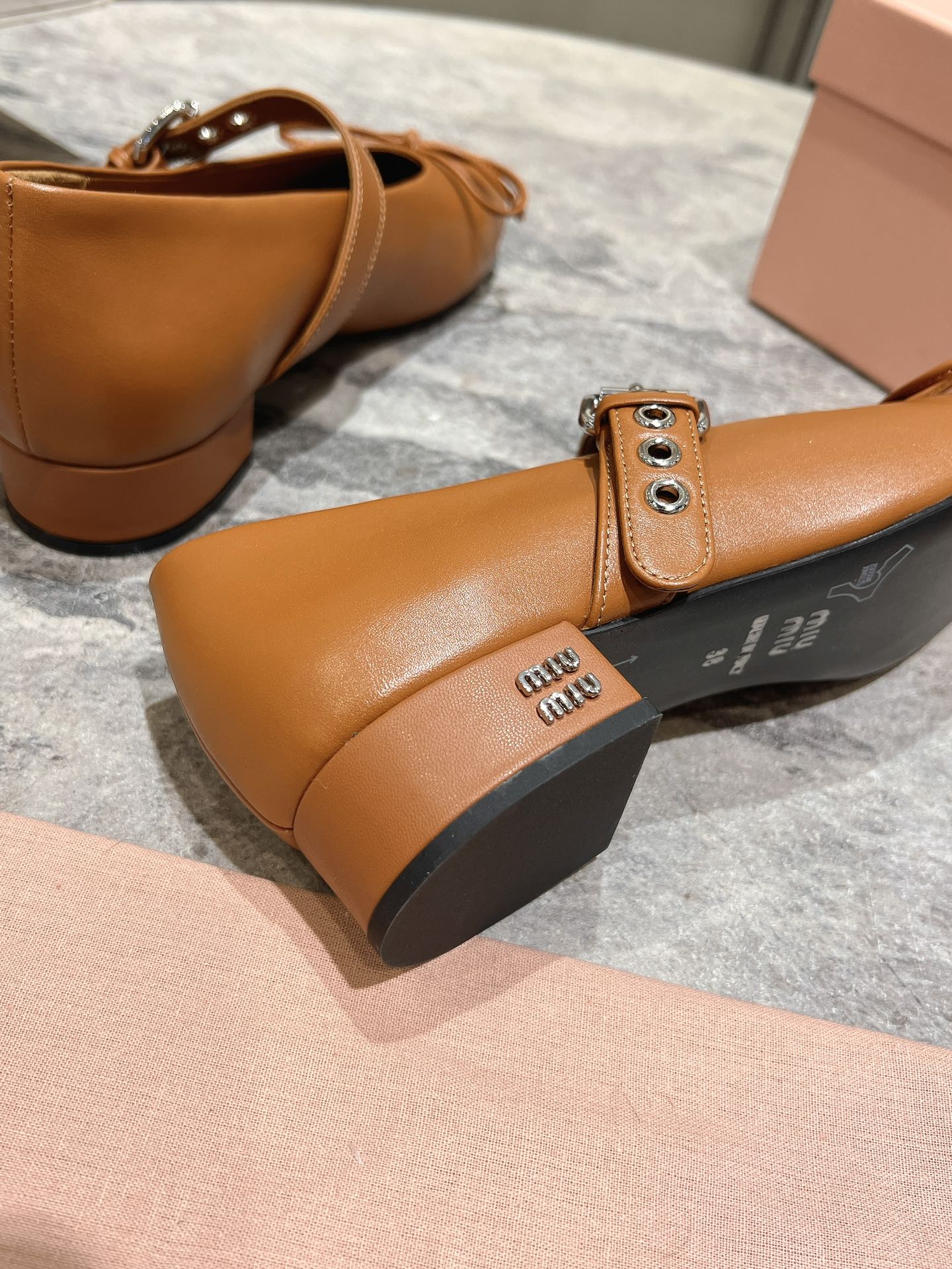 這款鞋子是AAAAA 1:1 質量(非常棒). 使用了和原版一模一樣的材料. 商標部分也保持了和繆繆/Miu Miu一樣. 圖片拍攝是實物鞋子拍攝, 您所收到的實物保證和我們圖片一模一樣.