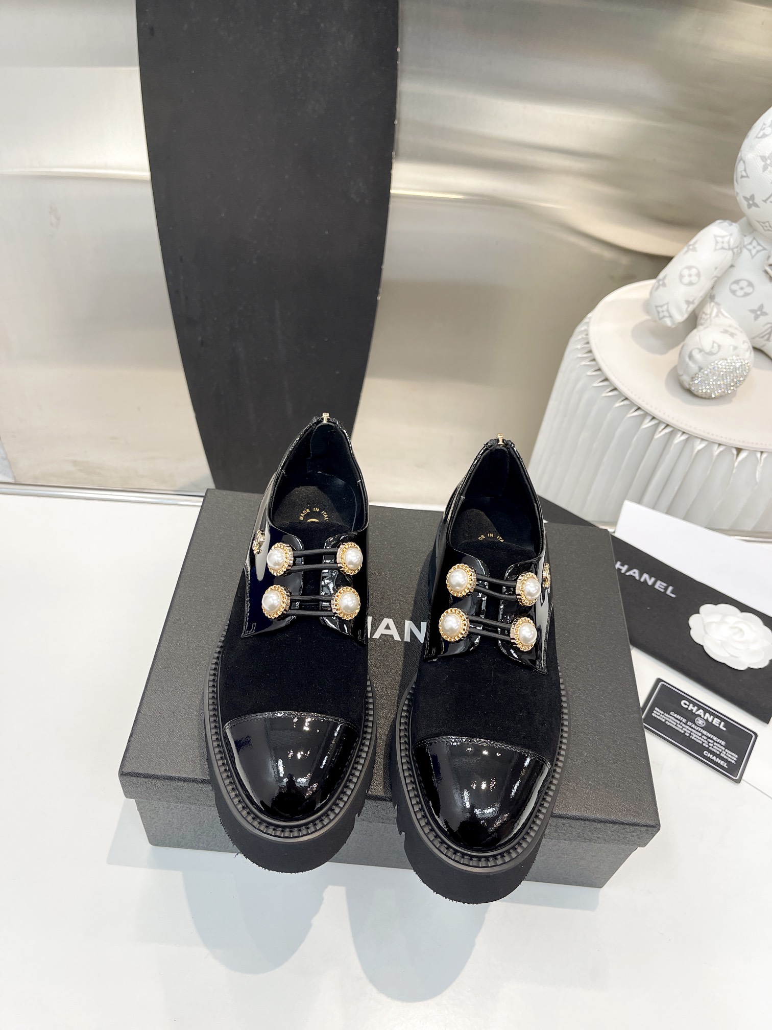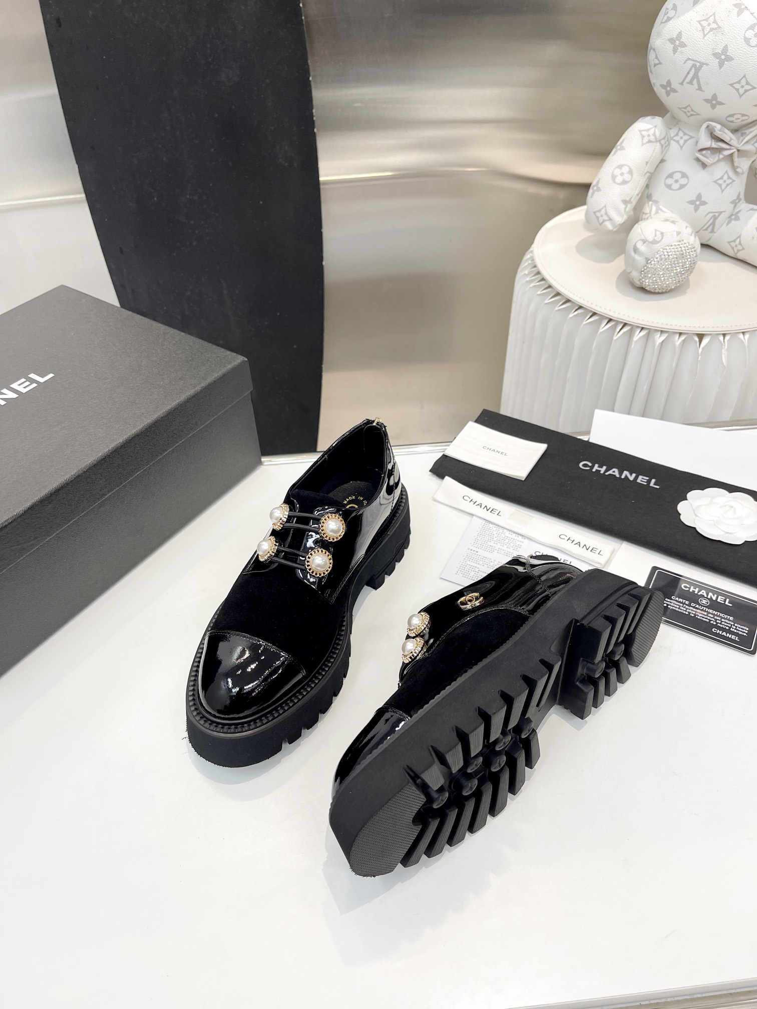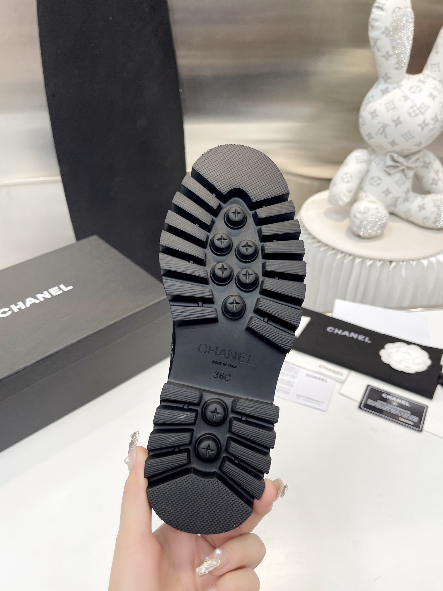 這款鞋子是AAAAA 1:1 質量(非常棒). 使用了和原版一模一樣的材料. 商標部分也保持了和香奈兒/Chanel一樣. 圖片拍攝是實物鞋子拍攝, 您所收到的實物保證和我們圖片一模一樣.